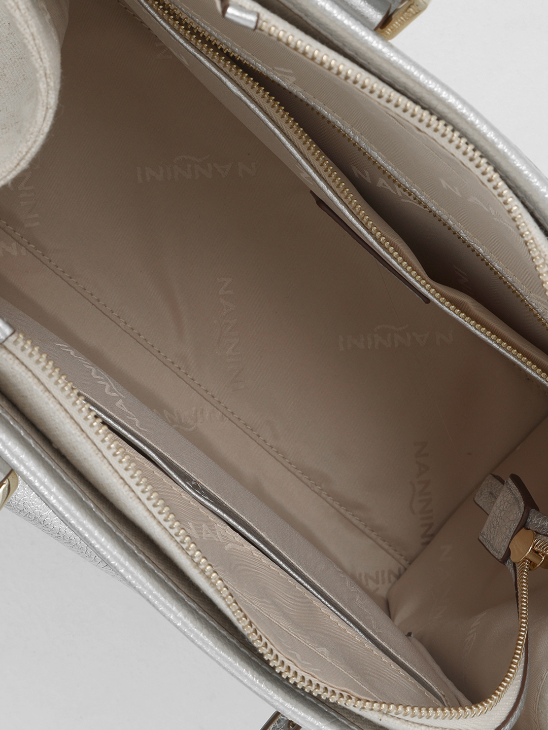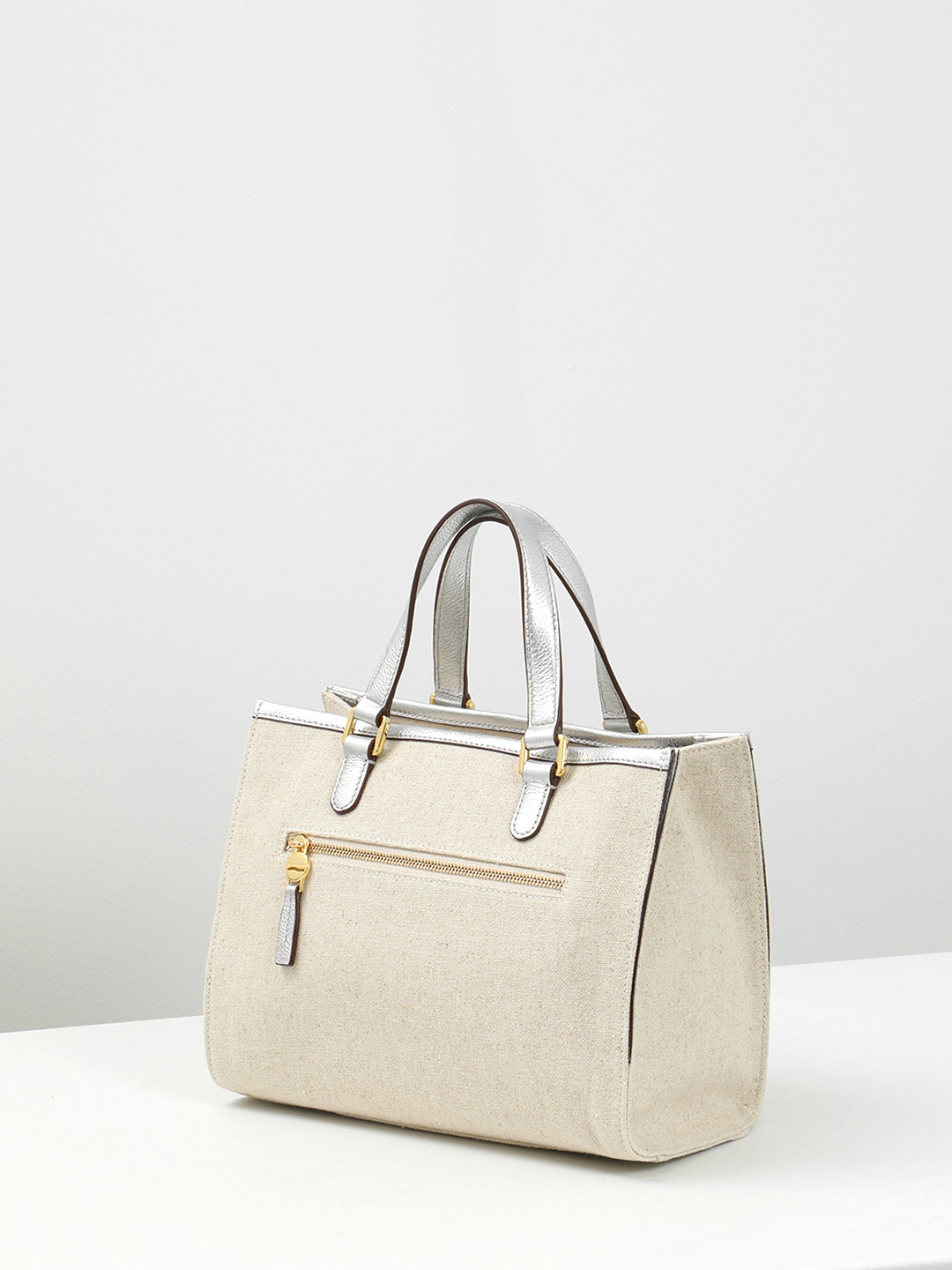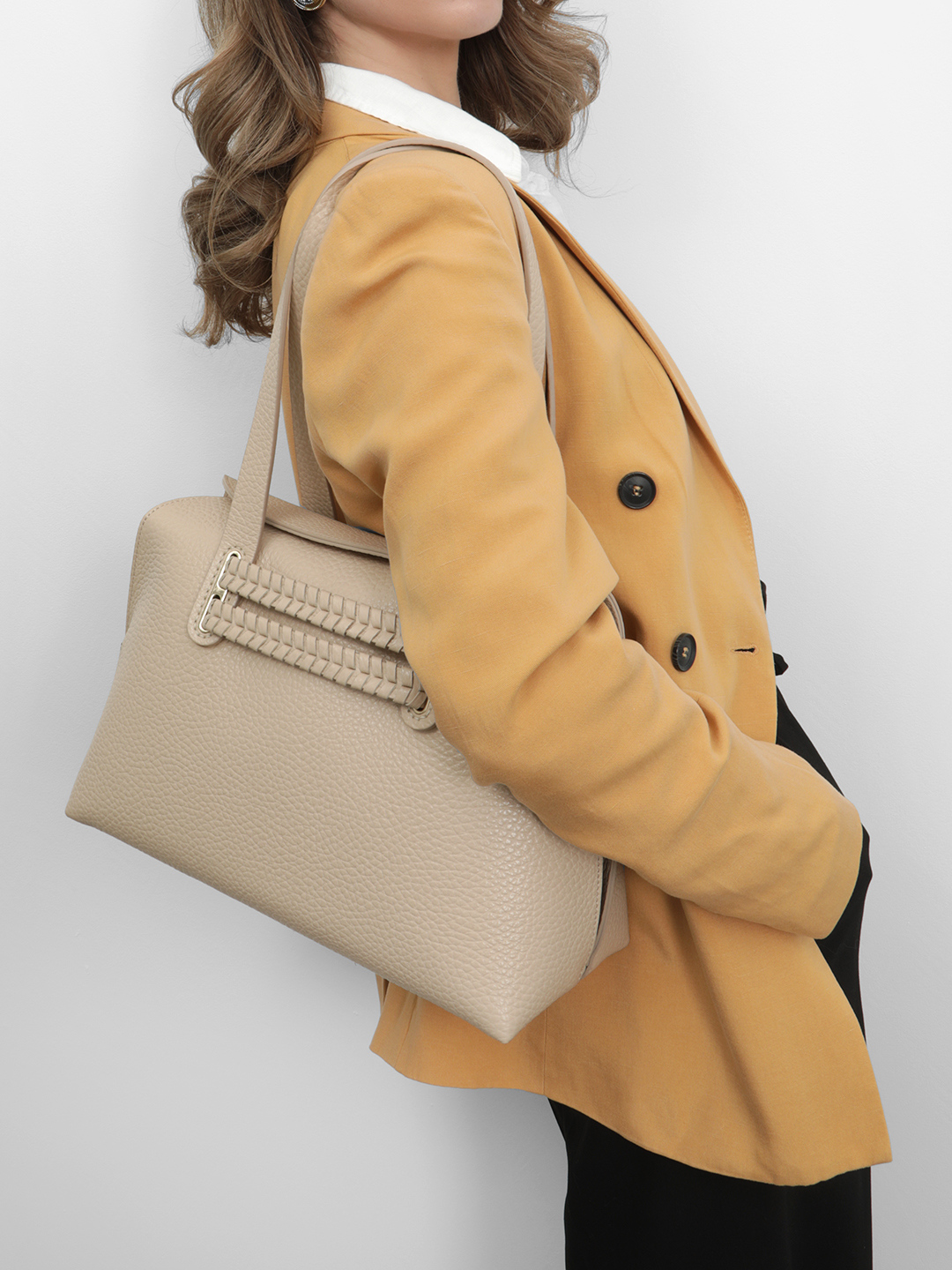 Сумка-тоут с золотистой поворотной фурнитурой от Loristella оттенка тауп