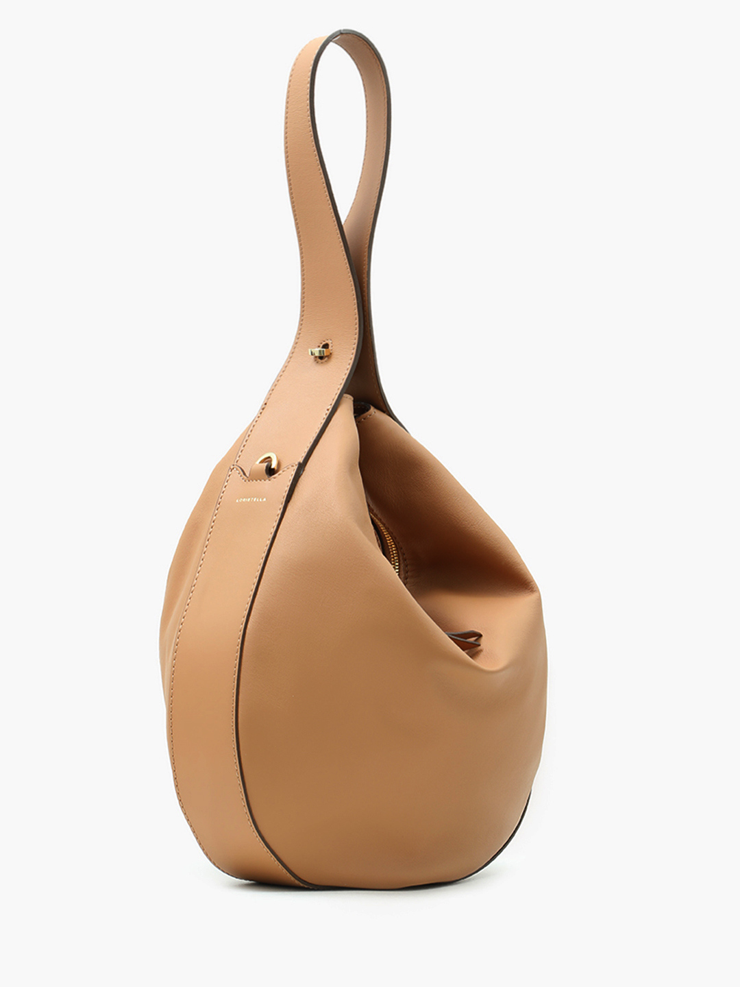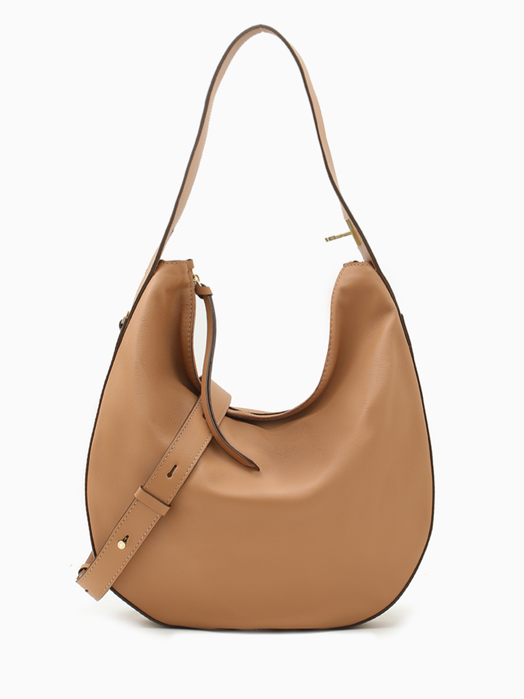 Сумка-хобо с поворотной фурнитурой на ремне от Loristella в ореховом оттенке