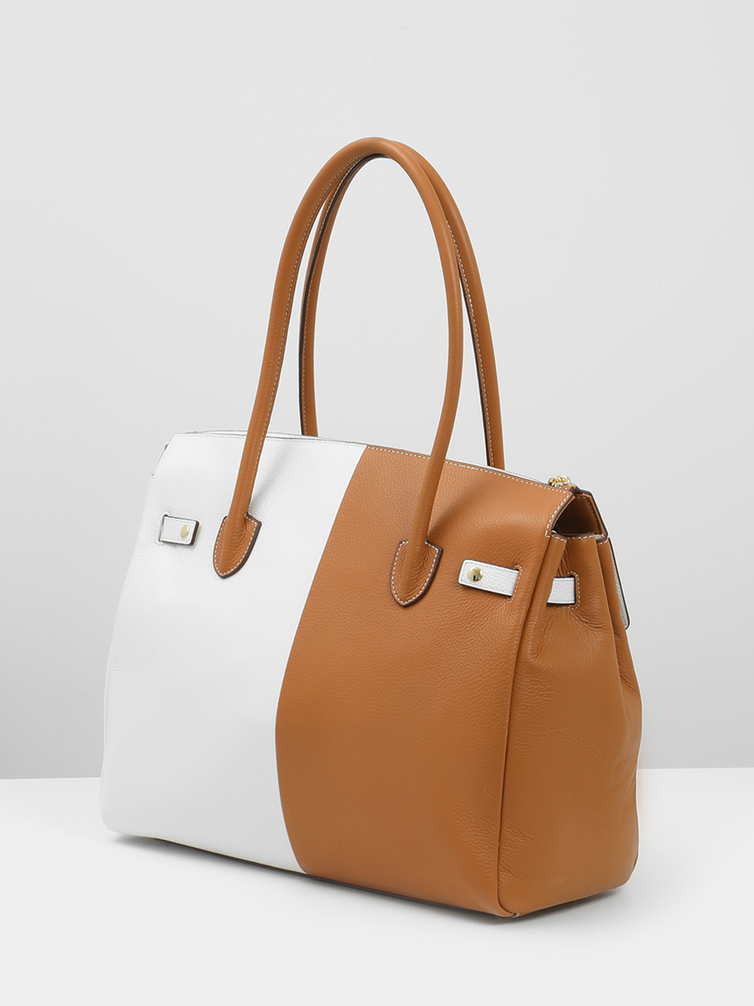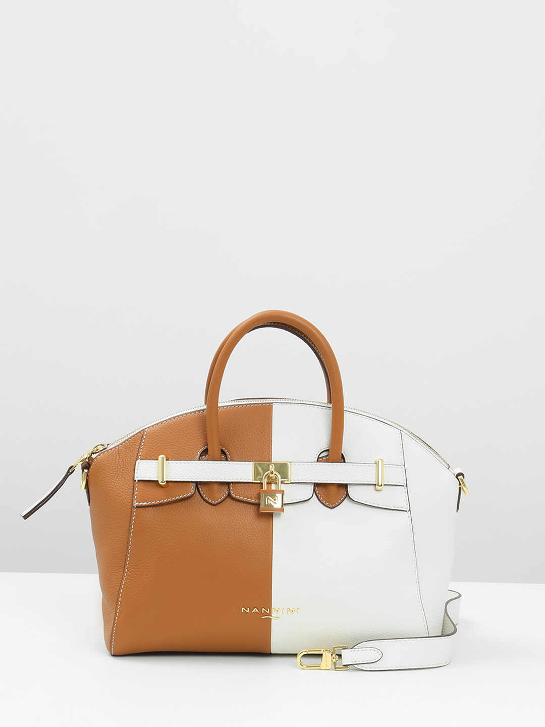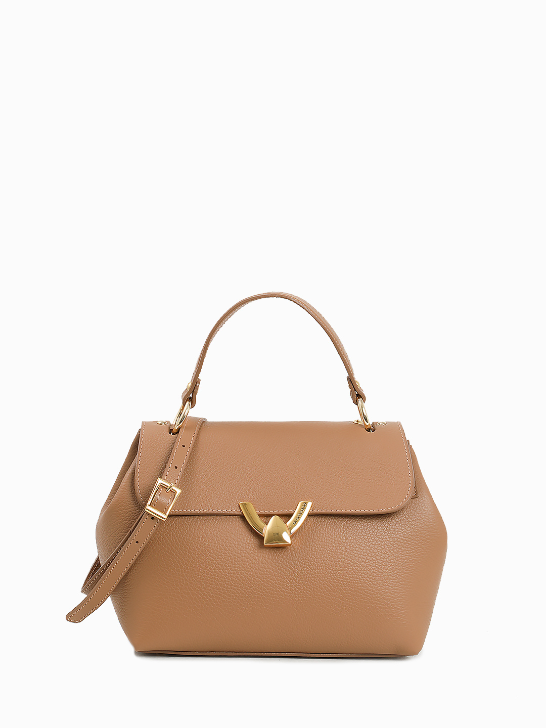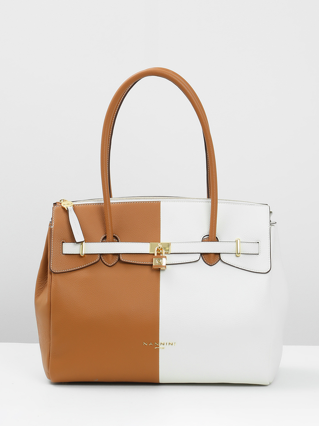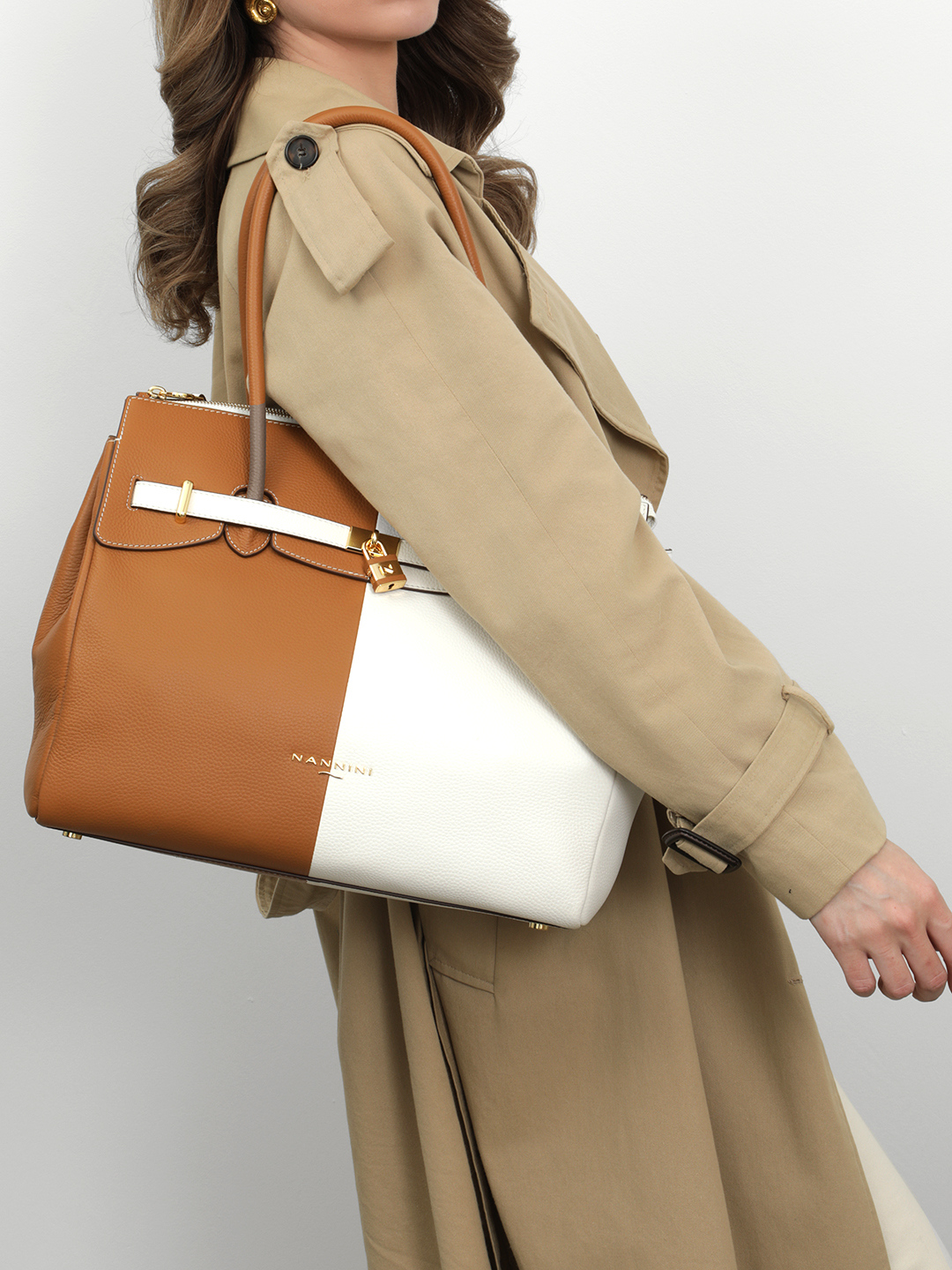 Сумка-тоут с золотистой поворотной фурнитурой от Loristella орехового оттенка