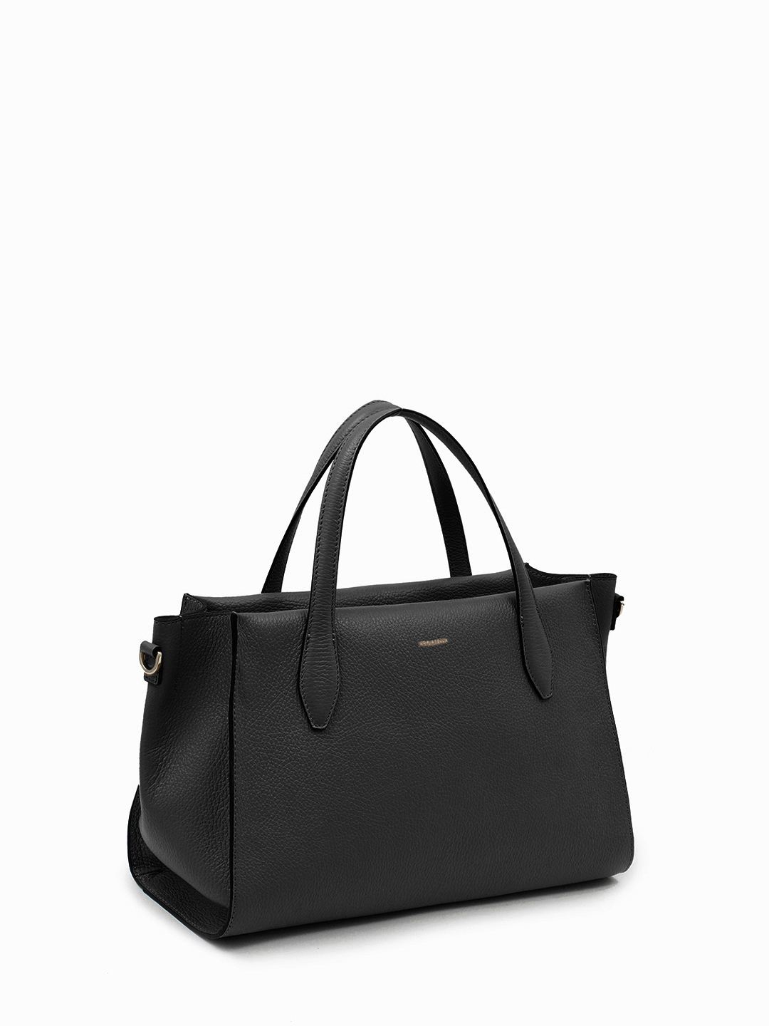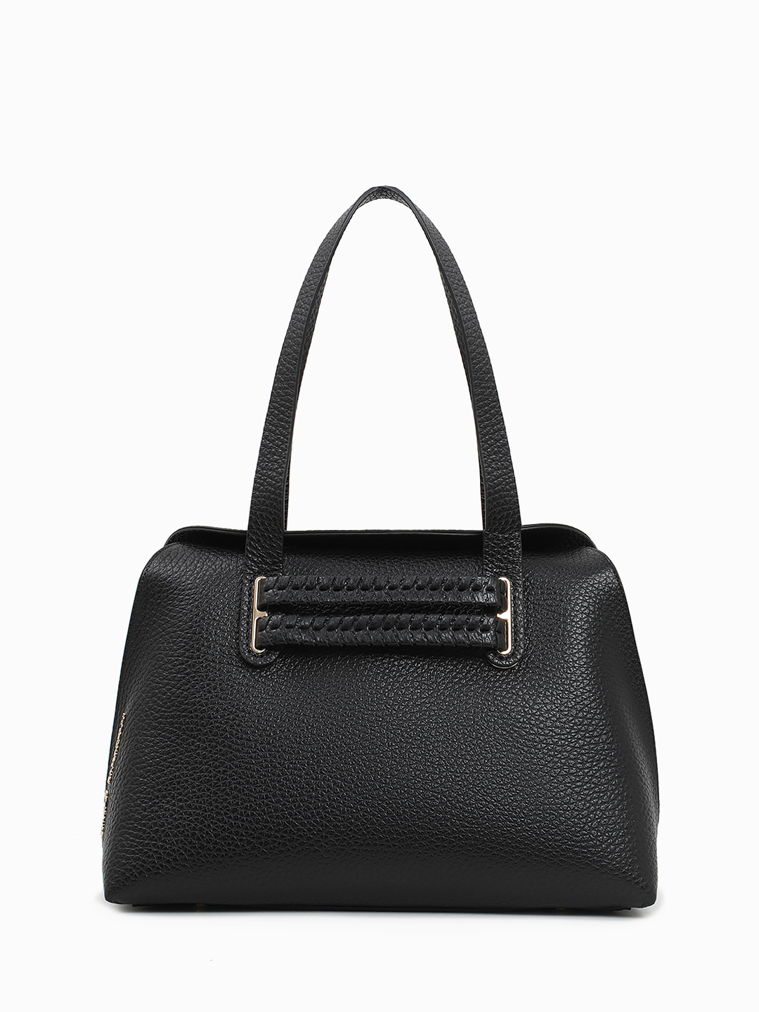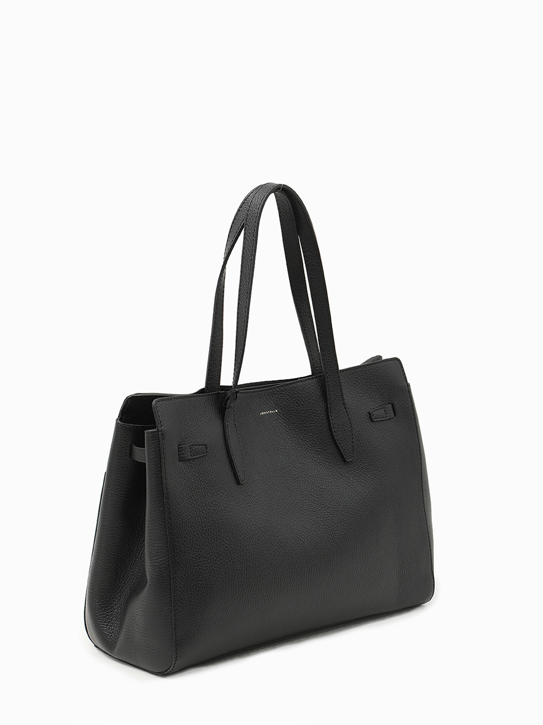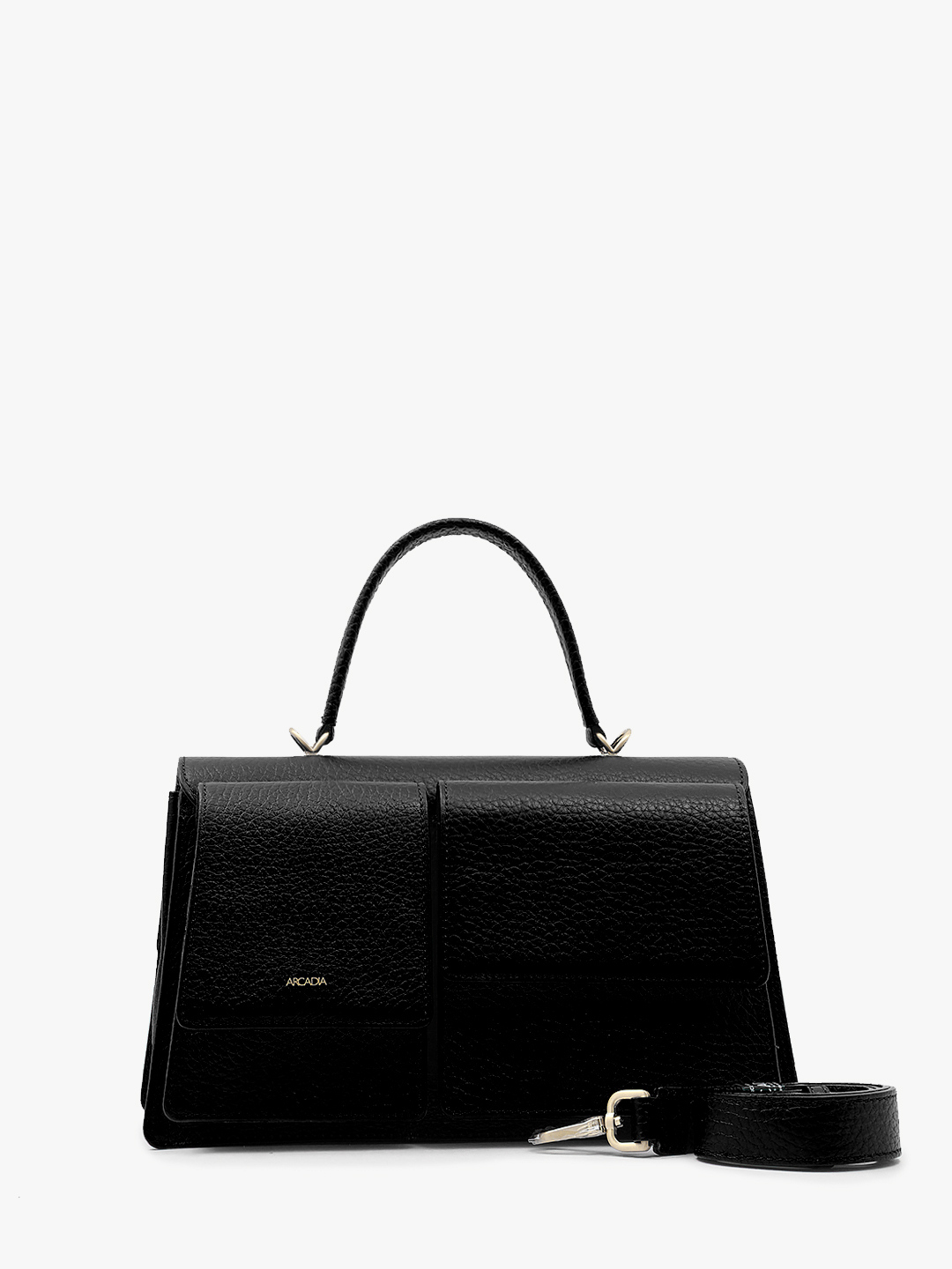 Сумка-портфель с цилиндрическим замком от ARCADIA из крупнозернистой кожи чёрного цвета