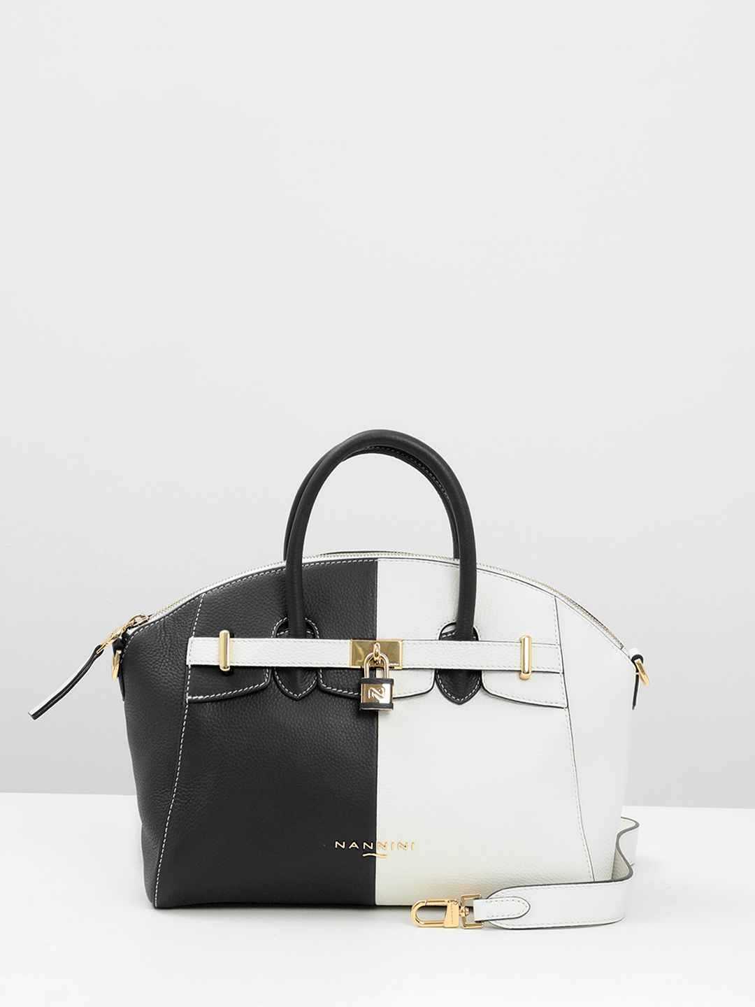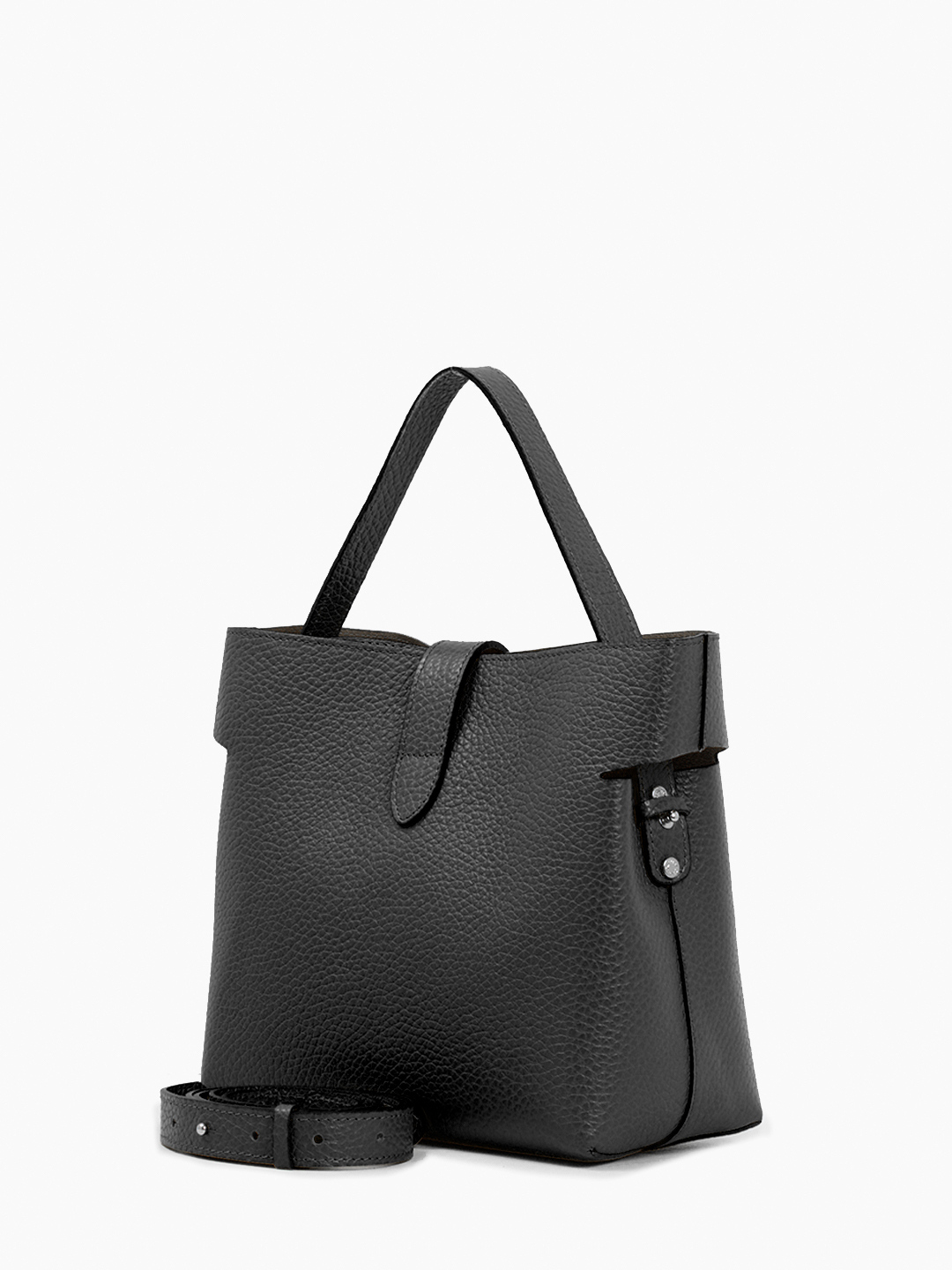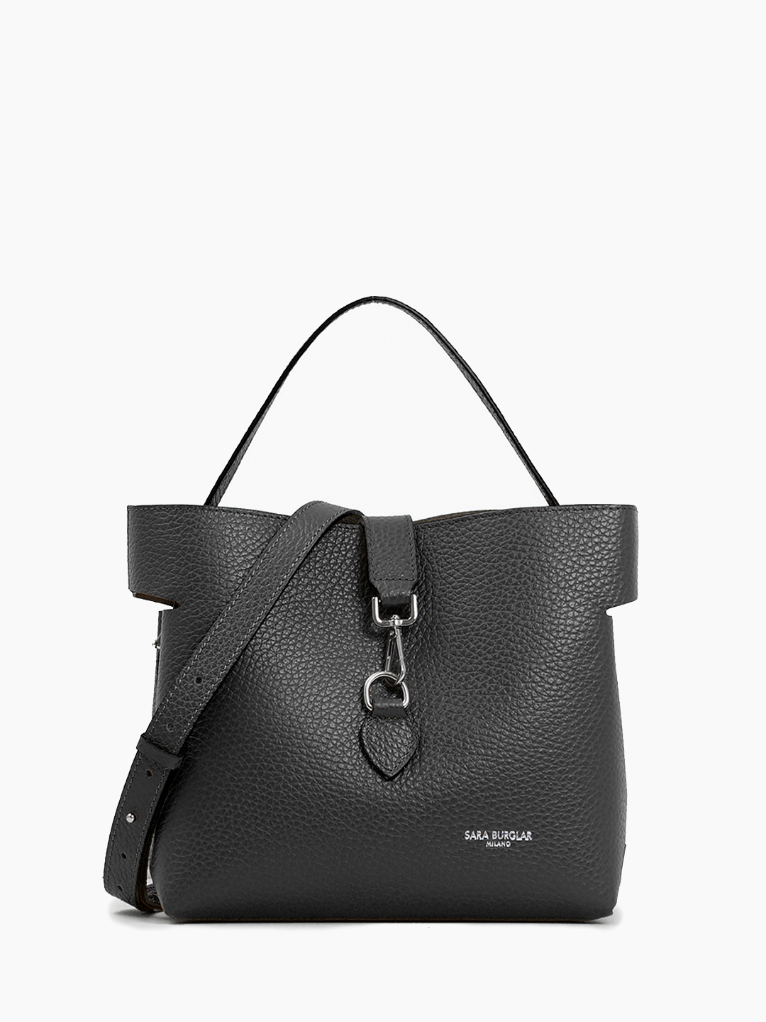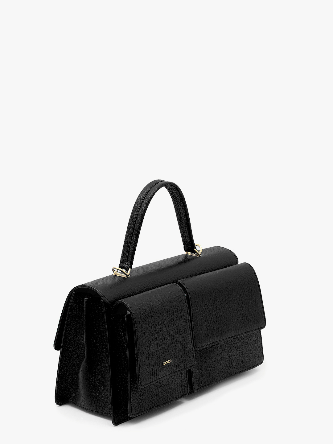 Сумка-портфель с цилиндрическим замком от ARCADIA из крупнозернистой кожи чёрного цвета