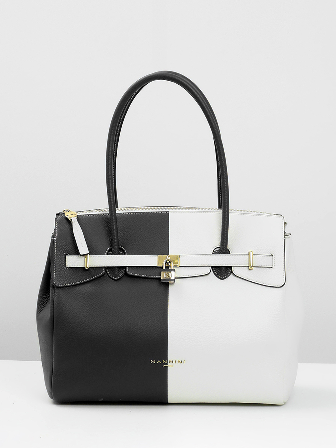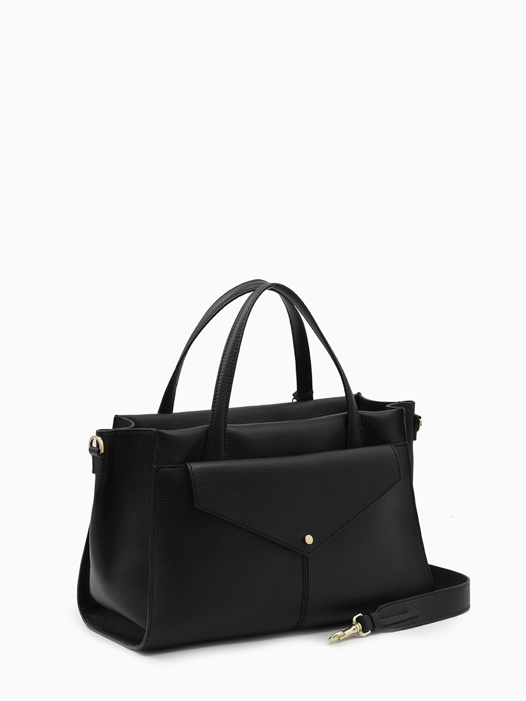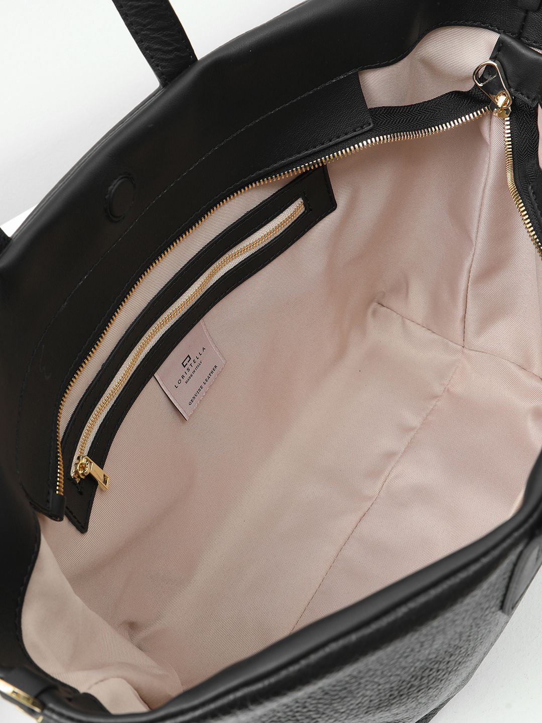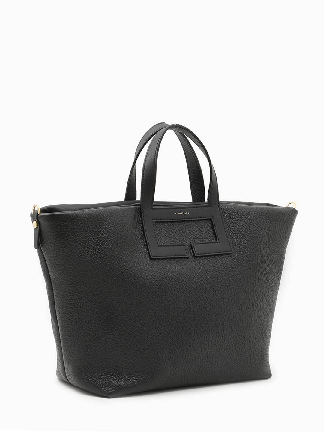 Сумка-тоут с золотистой поворотной фурнитурой от Loristella чёрного цвета