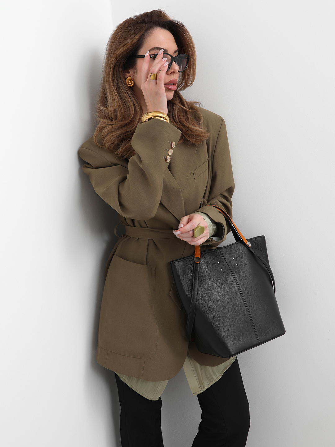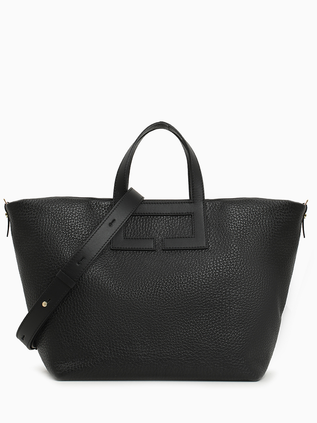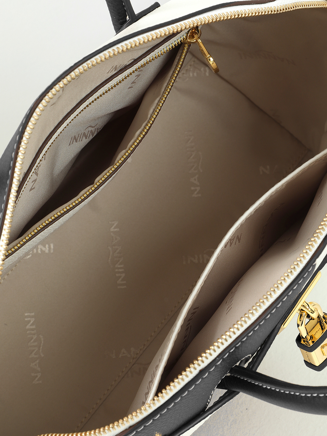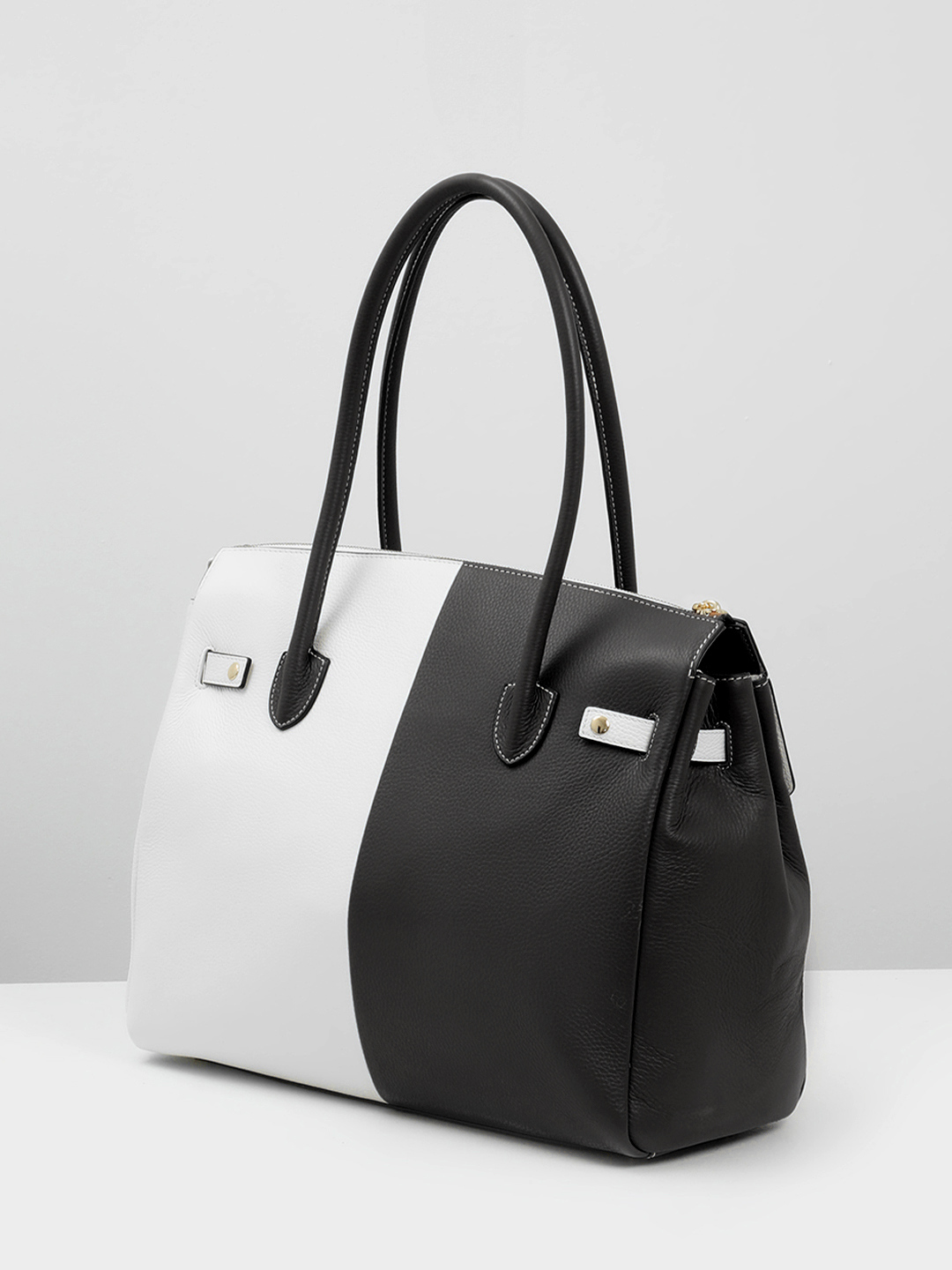 Сумка-тоут с золотистой поворотной фурнитурой от Loristella чёрного цвета