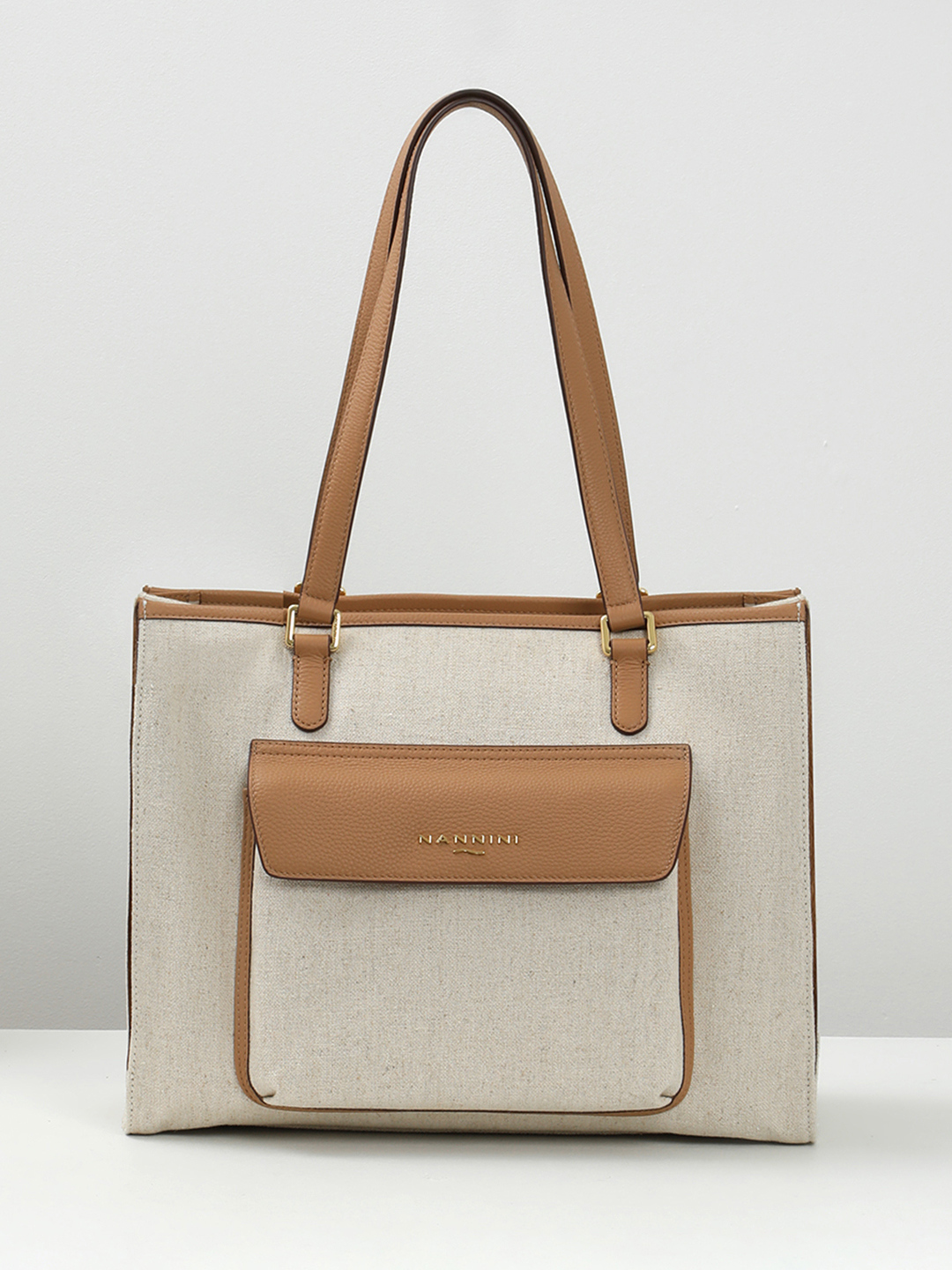 Сумка-тоут с небольшим тиснёным логотипом Loristella в оттенке латте