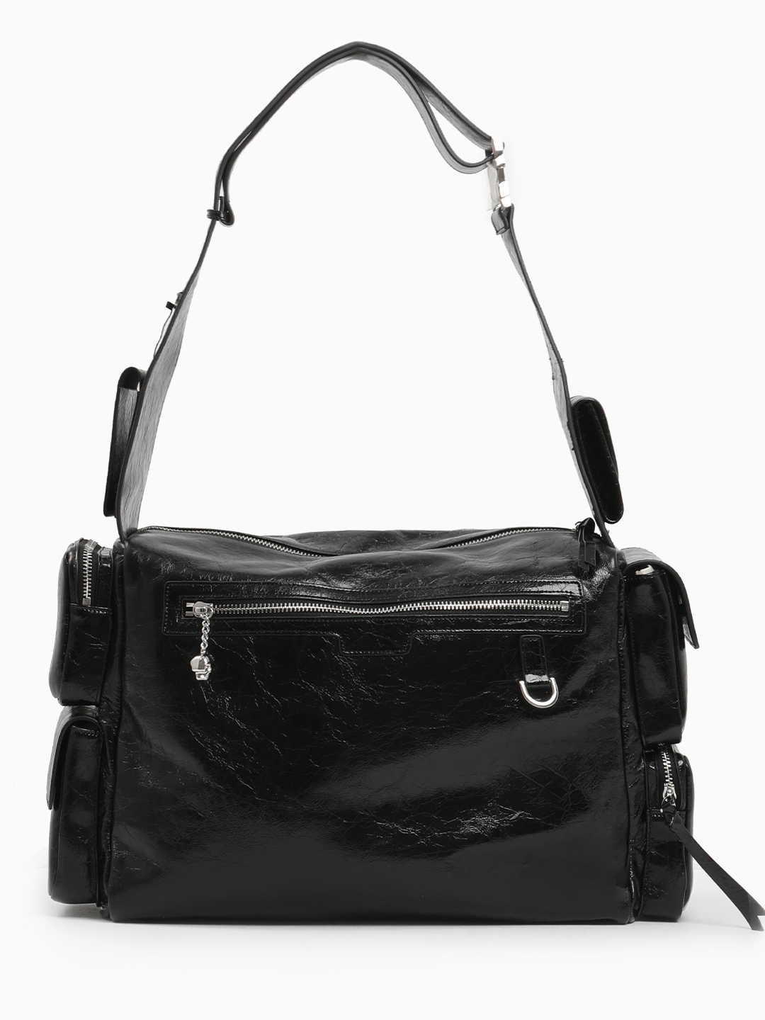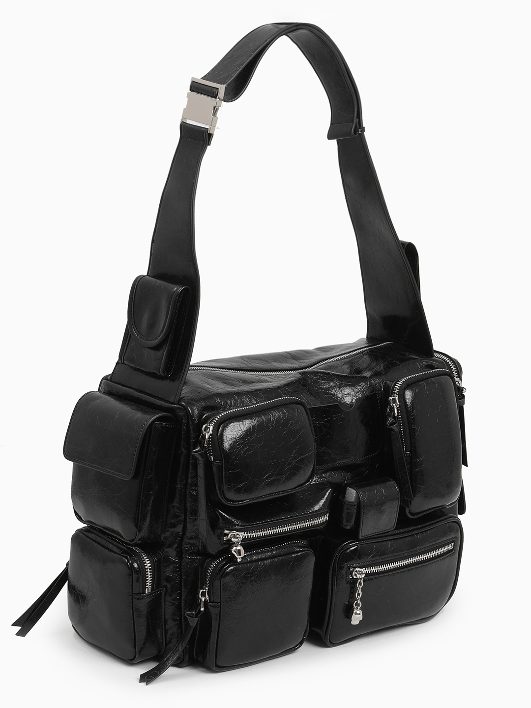 Чёрная сумка на плечо с дополнительными карманами от IVORY