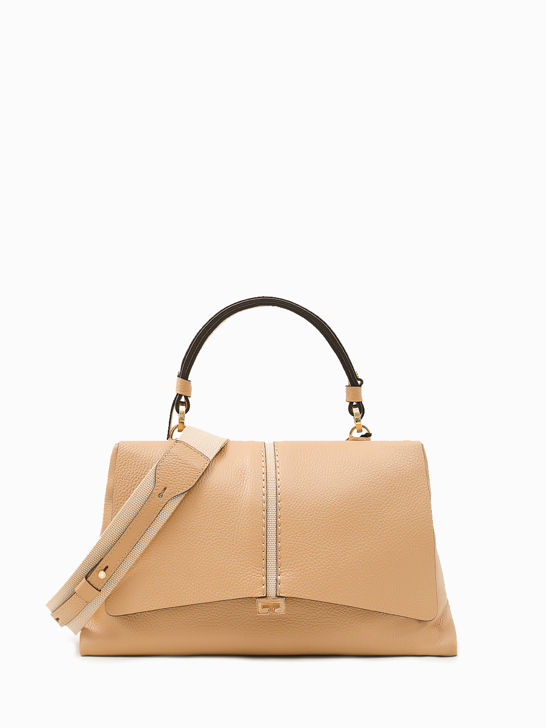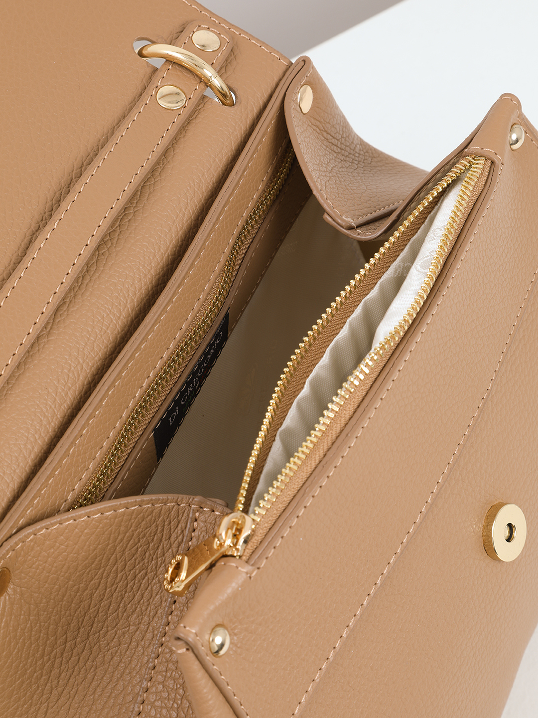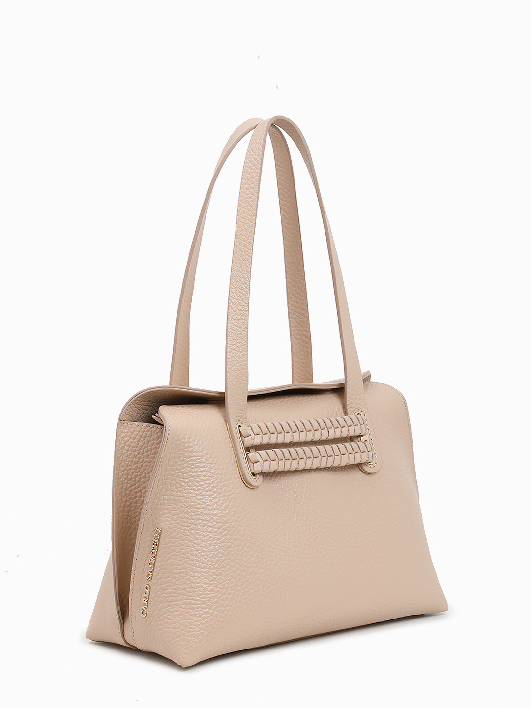 Классическая сумка с именным подкладом от Carlo Salvatelli песочного оттенка