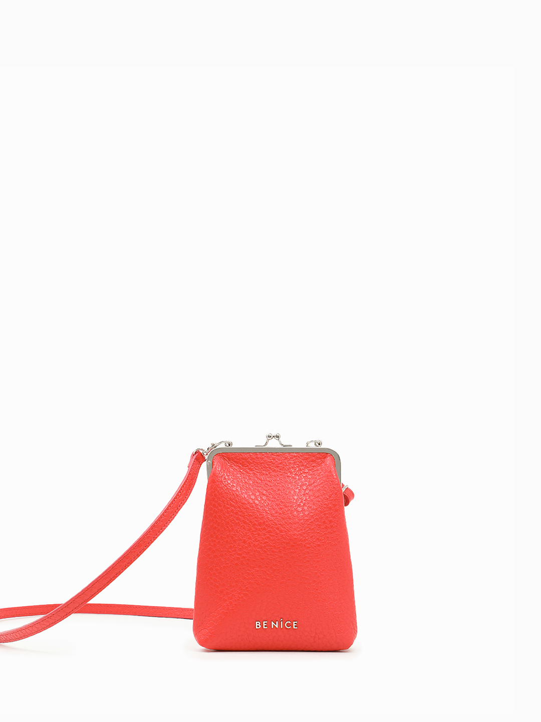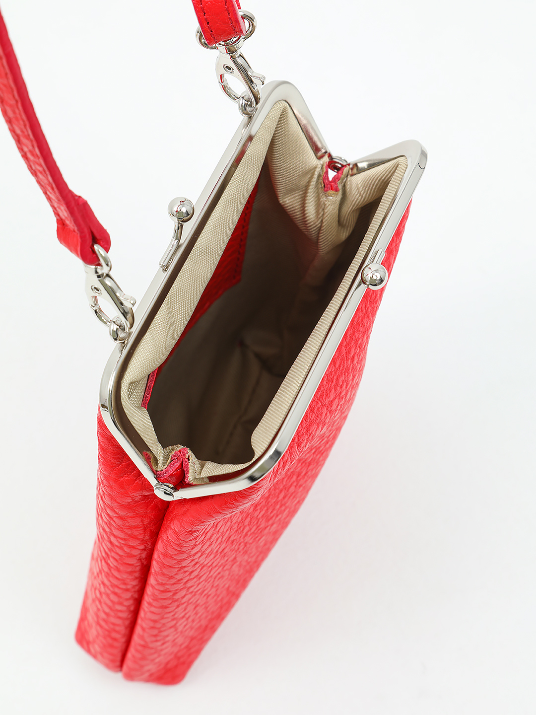 Мини-сумка "Clara" на шею/через плечо с застёжкой-фермуаром от BE NICE из крупнозернистой кожи красного цвета