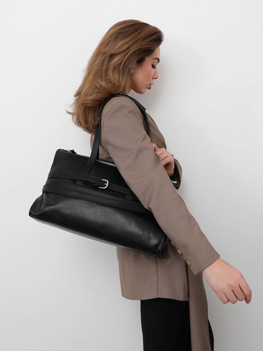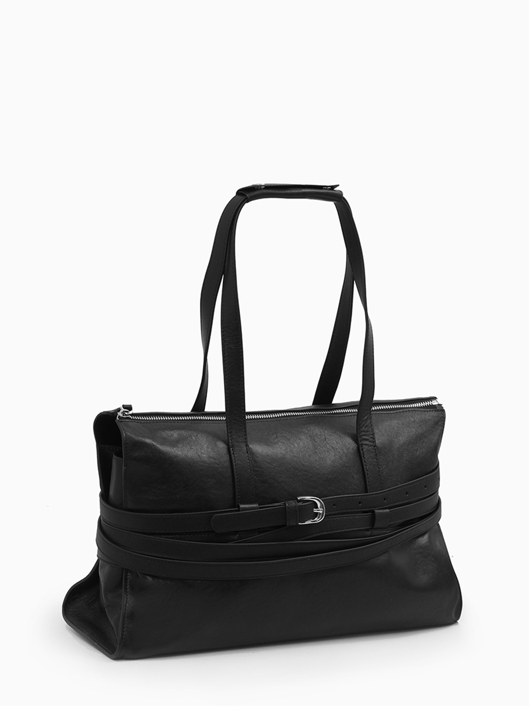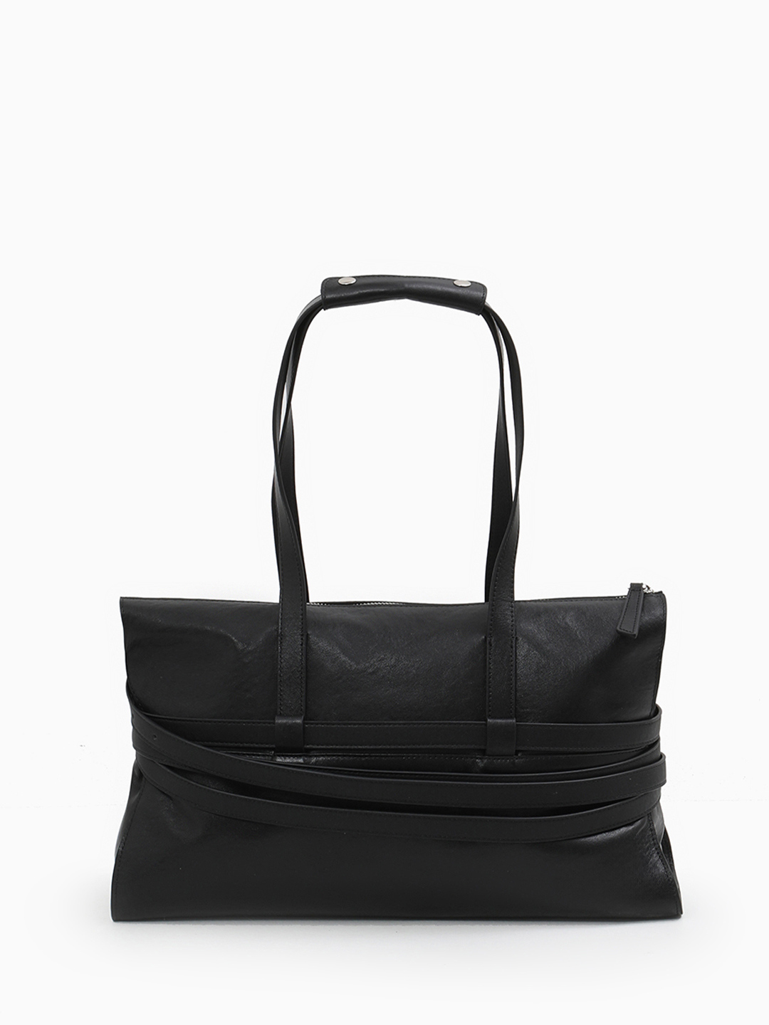 Чёрная сумка-тоут с обвязанными ремнями от IVORY