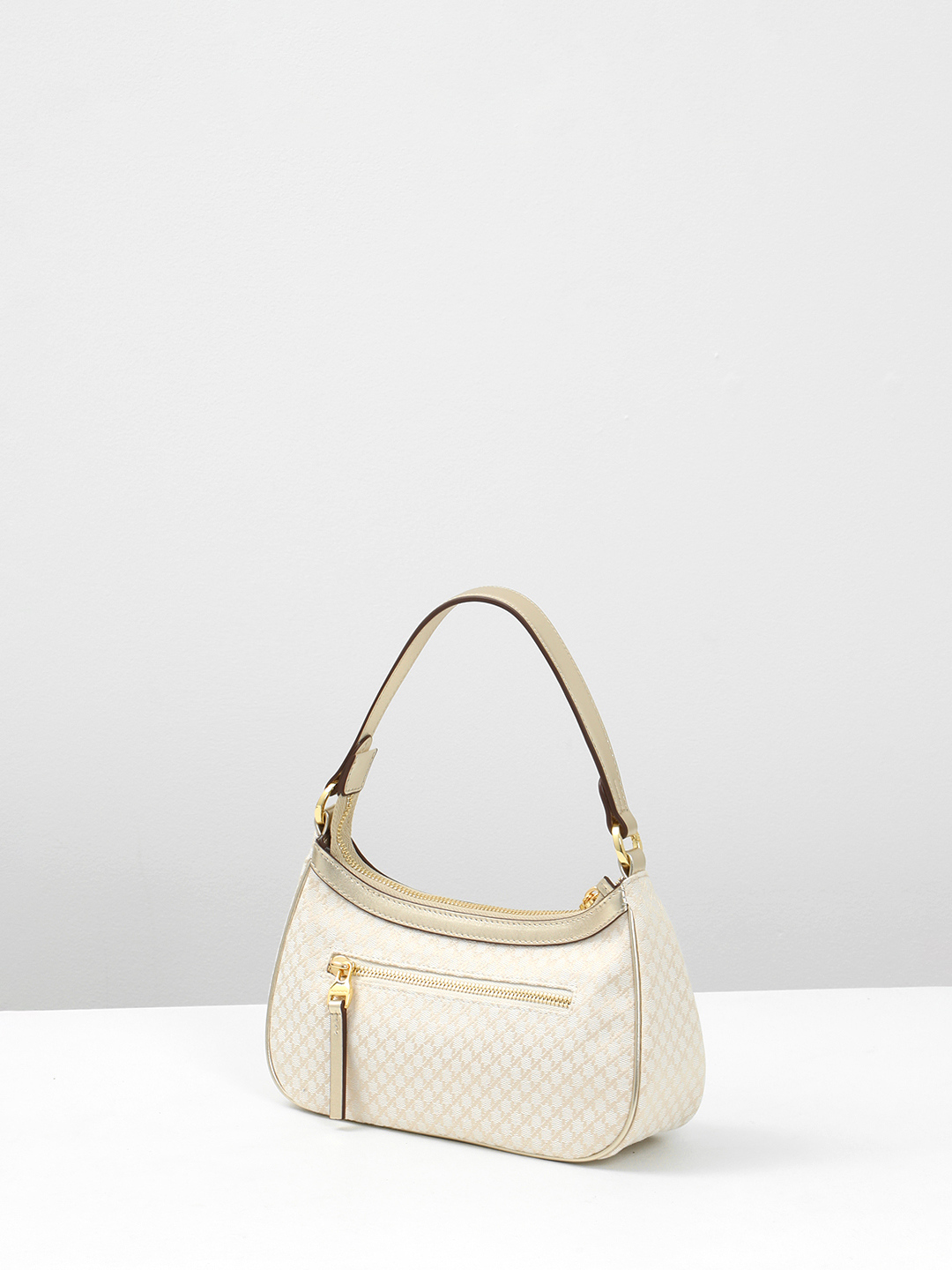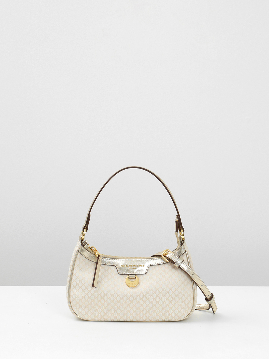 Полукруглая сумка с металлическим внутренним штампом Carlo Salvatelli в молочно-белом цвете