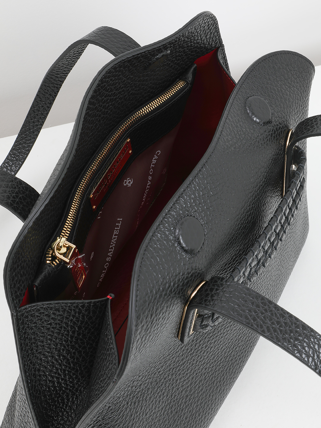 Классическая сумка с контрастным ярким подкладом от Carlo Salvatelli чёрного цвета