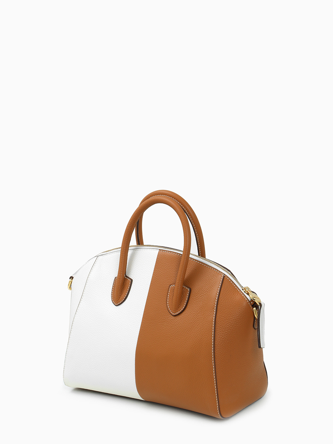 Сумка-сэтчел с текстильным ремнём с кожаными вставками от Loristella в ореховом оттенке