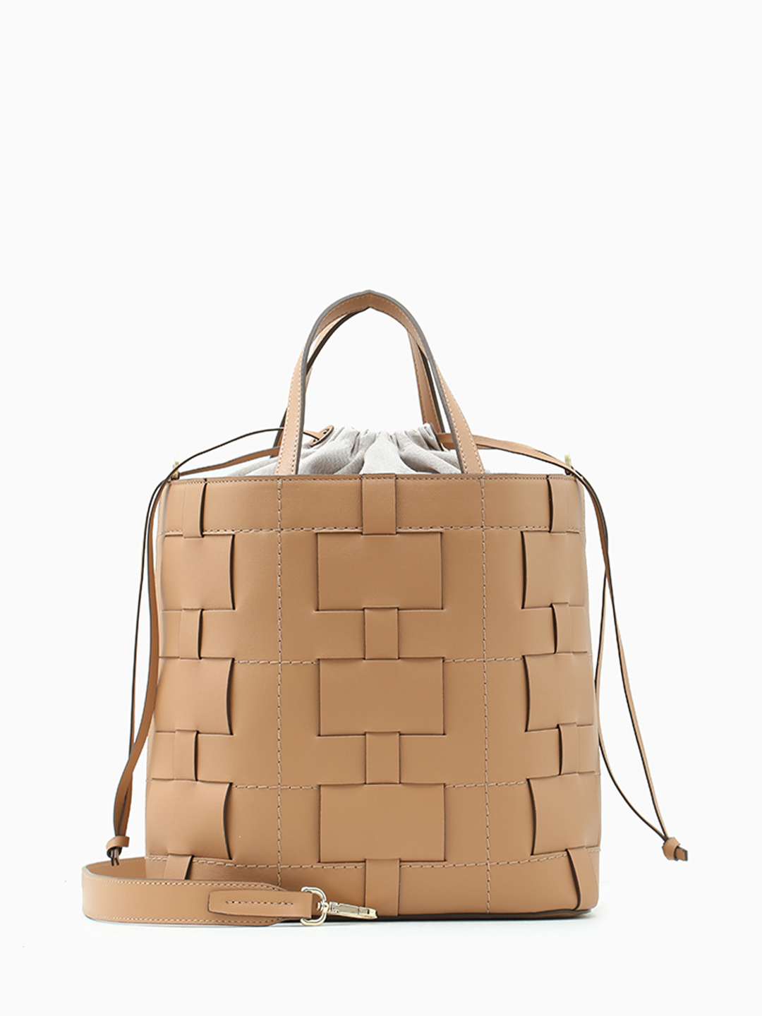 Плетёная сумка-корзинка с текстильным мешком от Loristella в ореховом оттенке