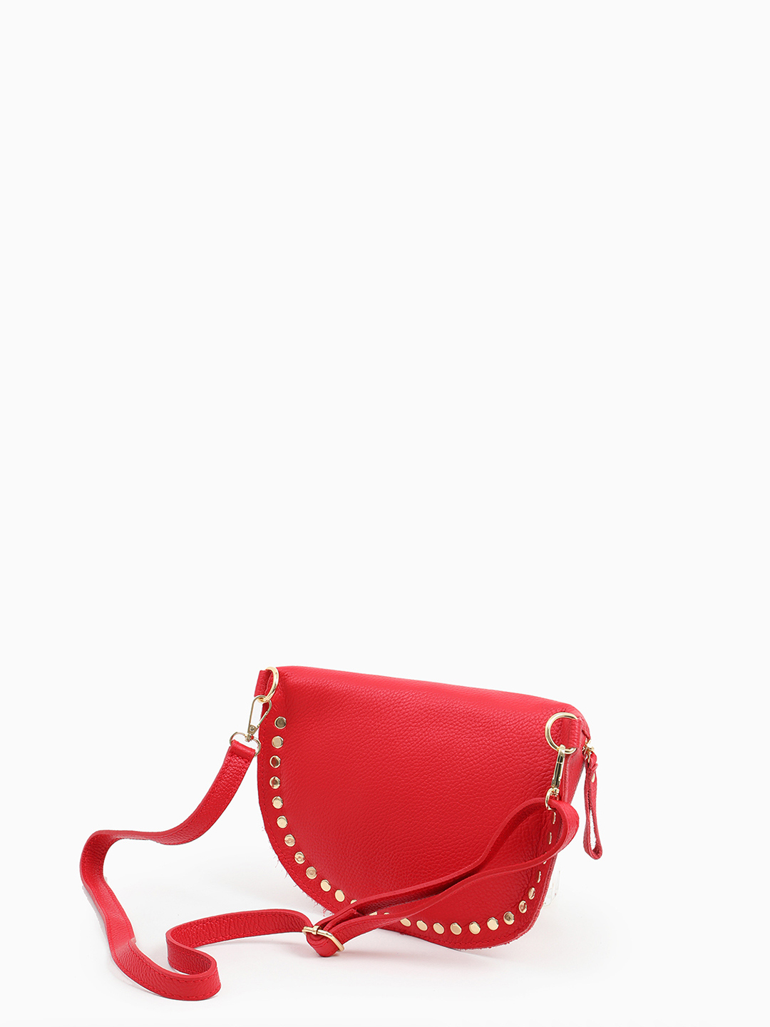 Полукруглая кросс-боди с золотистыми клёпками от FOLLE в красном оттенке