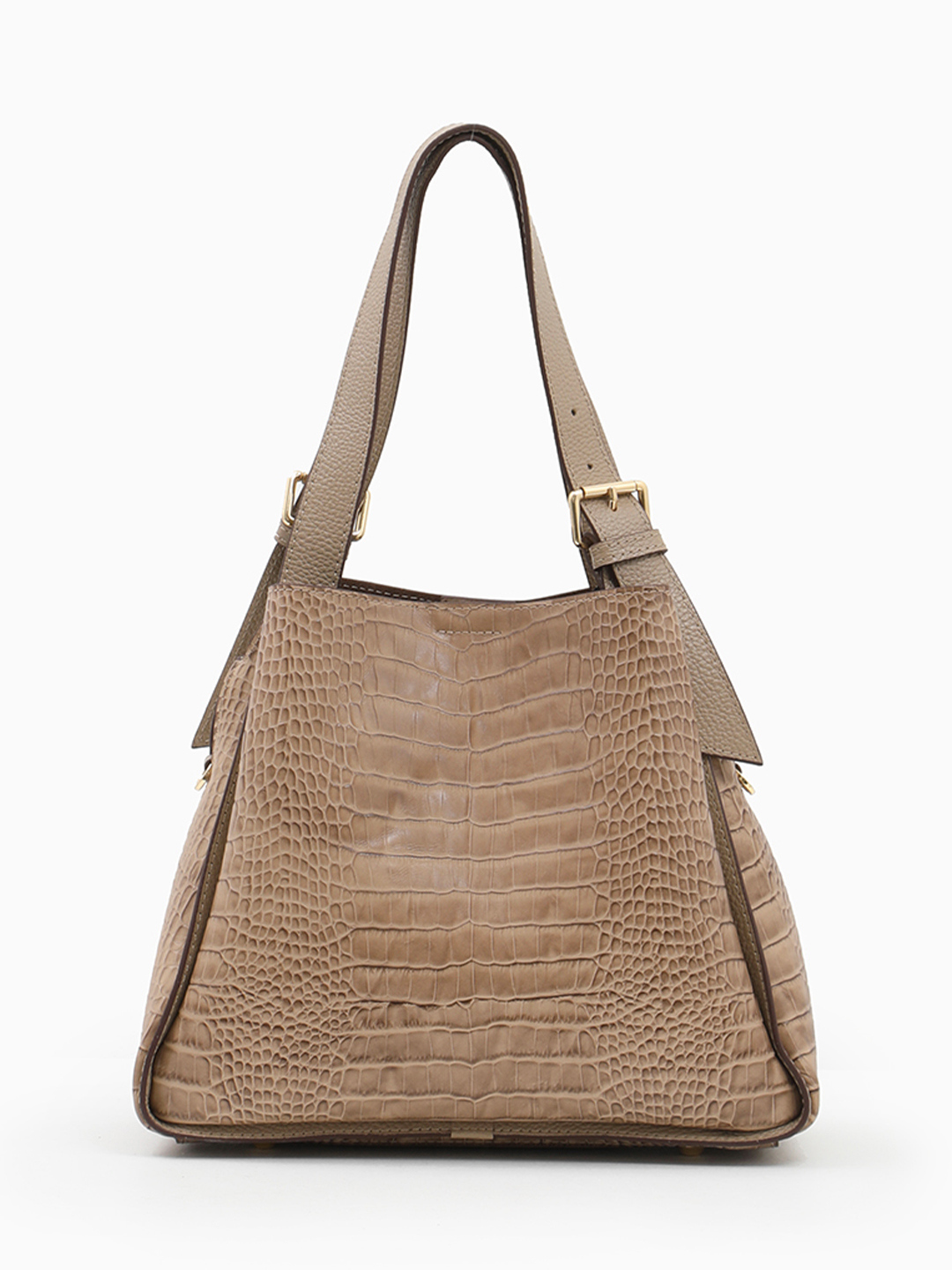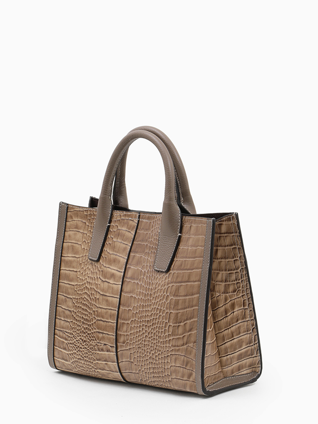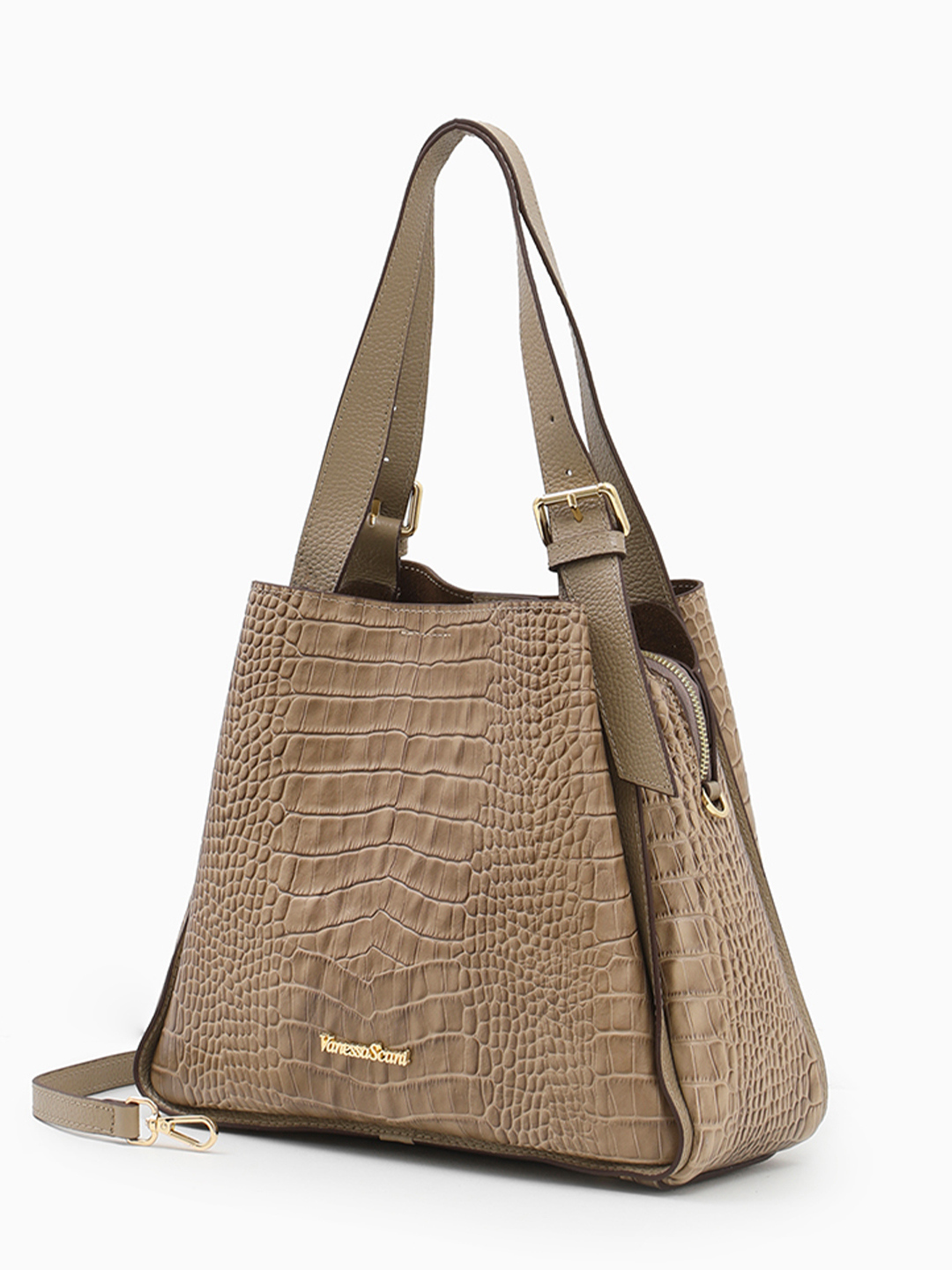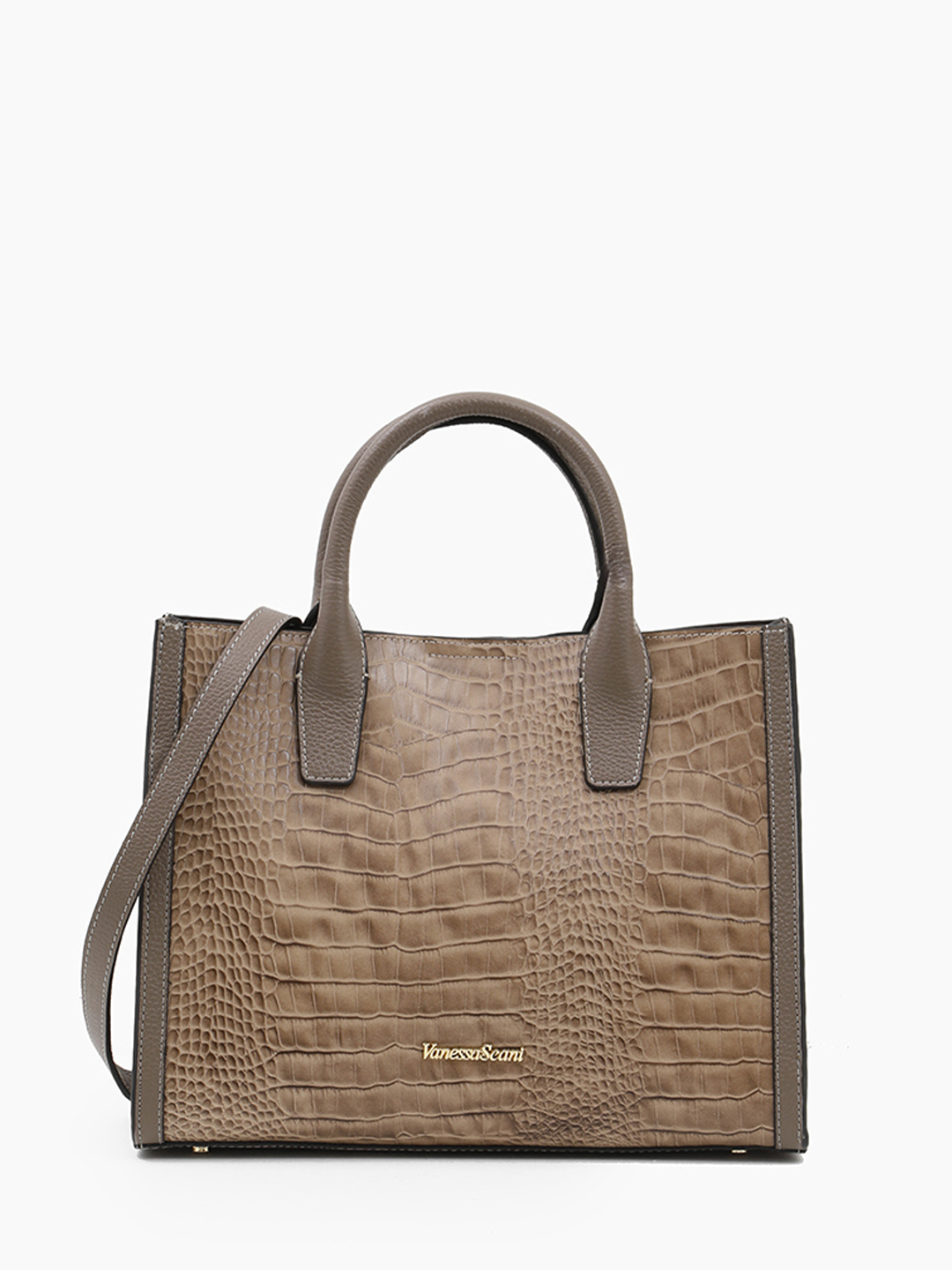 Сумка-тоут с двумя регулируемыми ручками от Vanessa Scani из кожи под крокодила оттенка тауп
