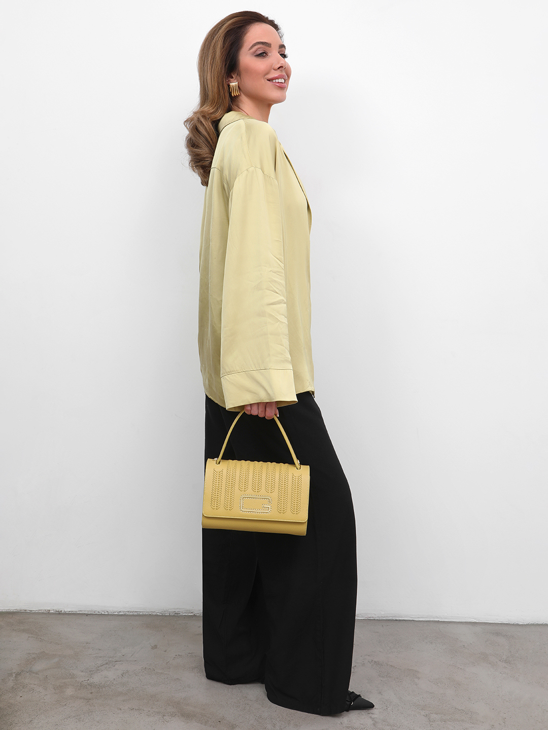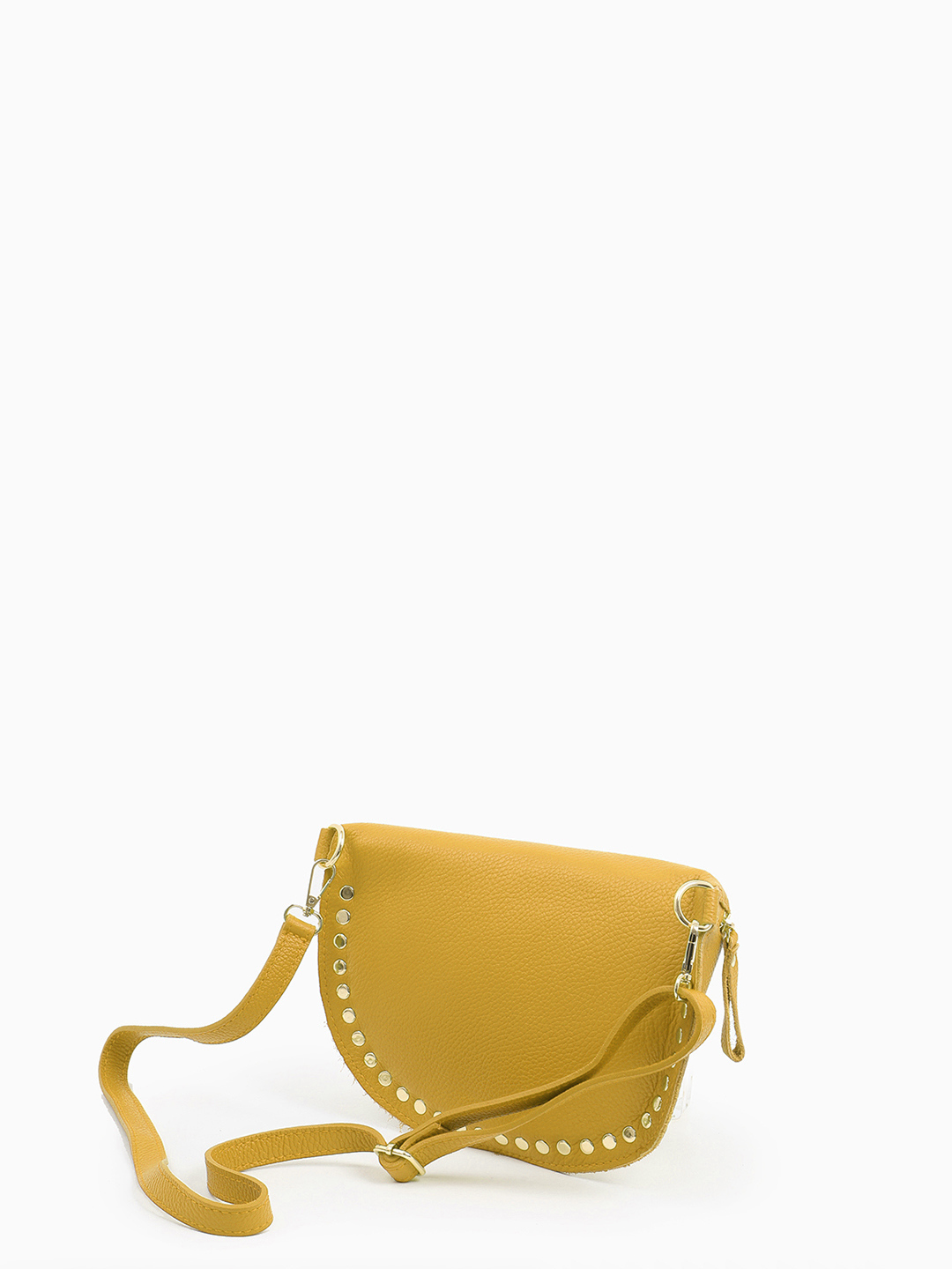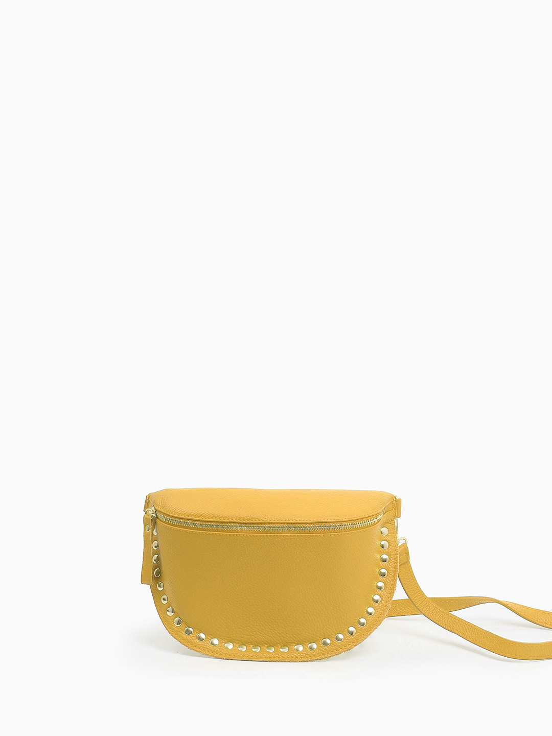 Полукруглая кросс-боди с золотистыми клёпками от FOLLE в жёлтом цвете