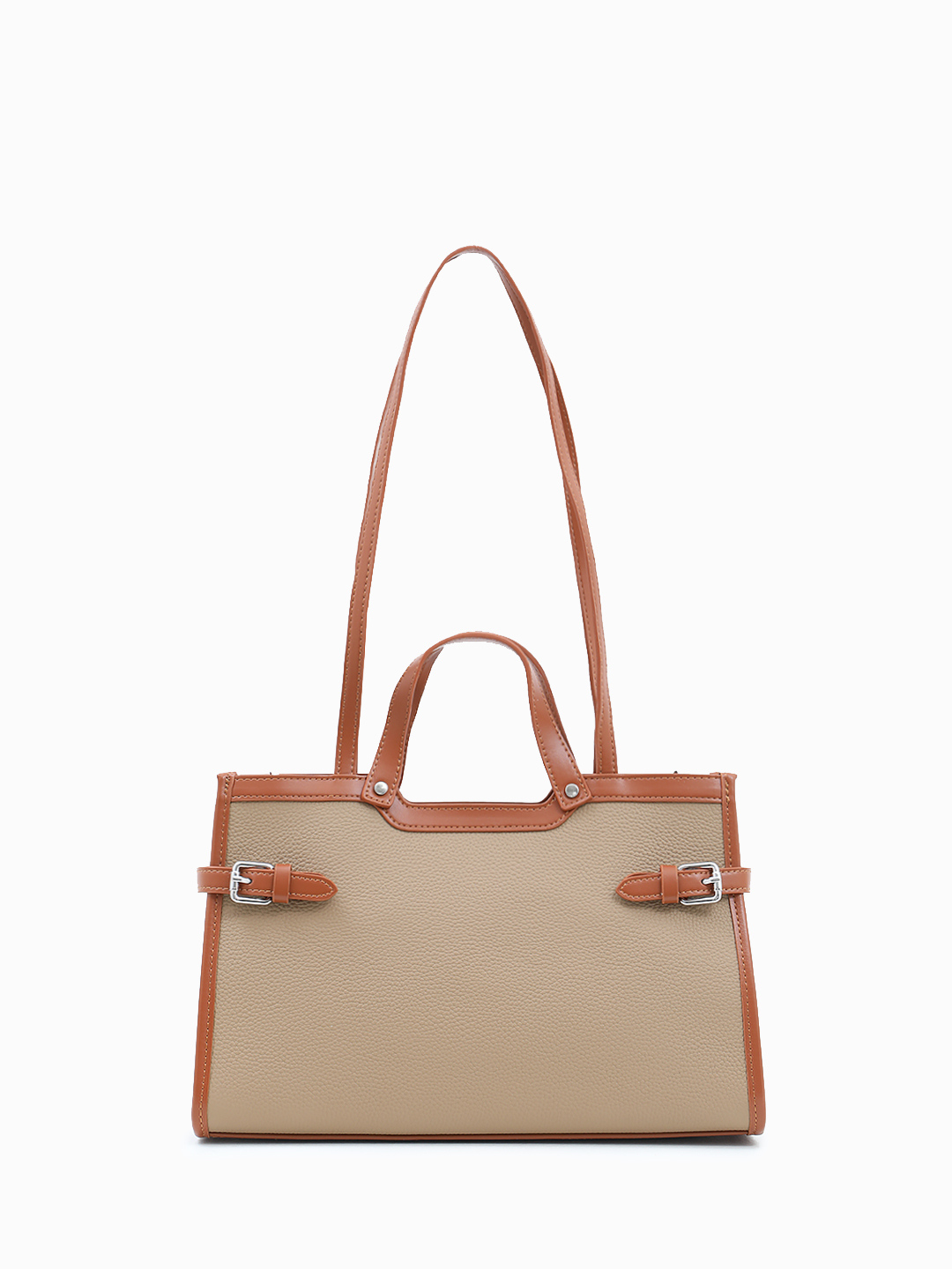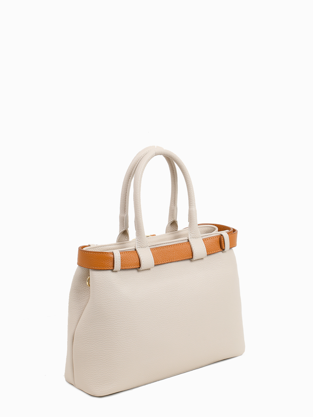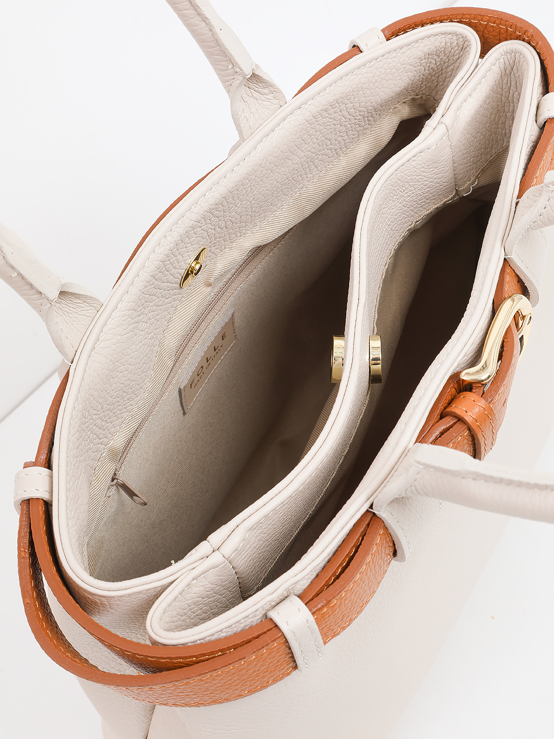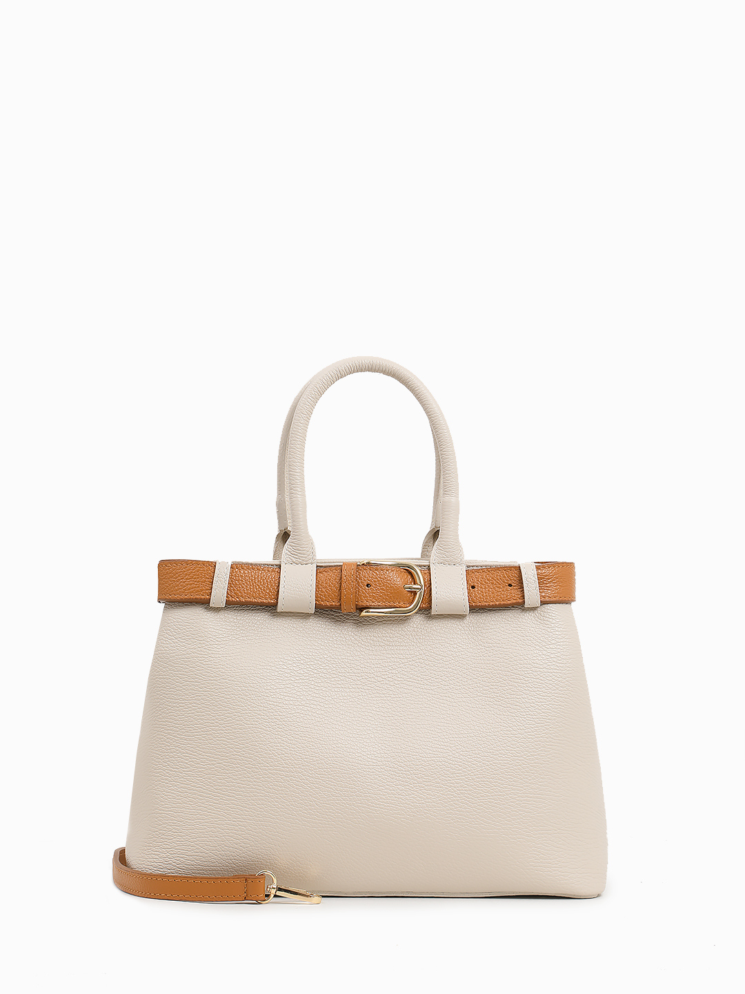 Бежевая сумка-тоут с декоративным рыжим ремнём от FOLLE