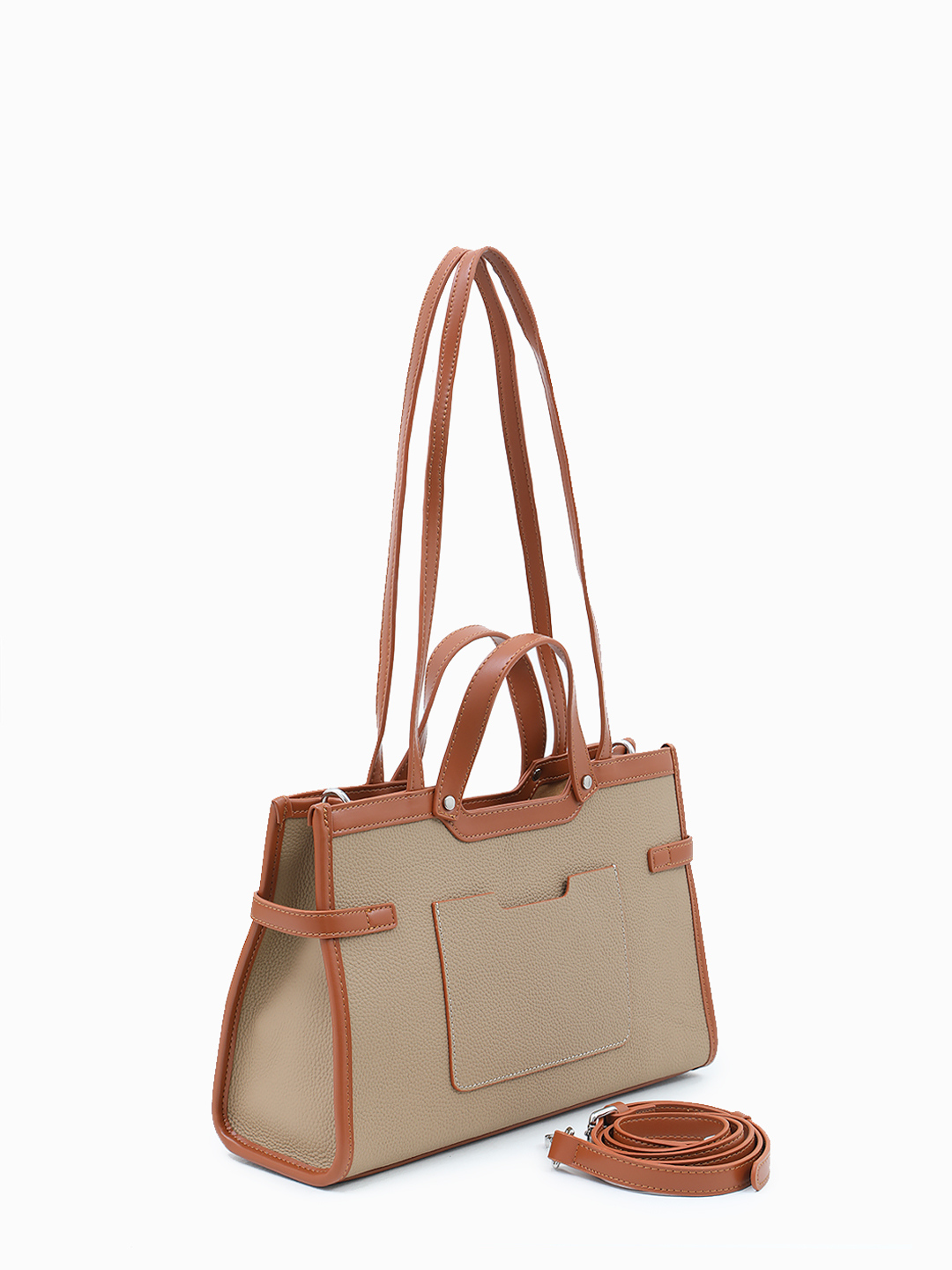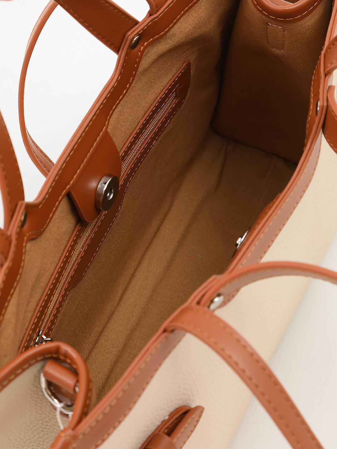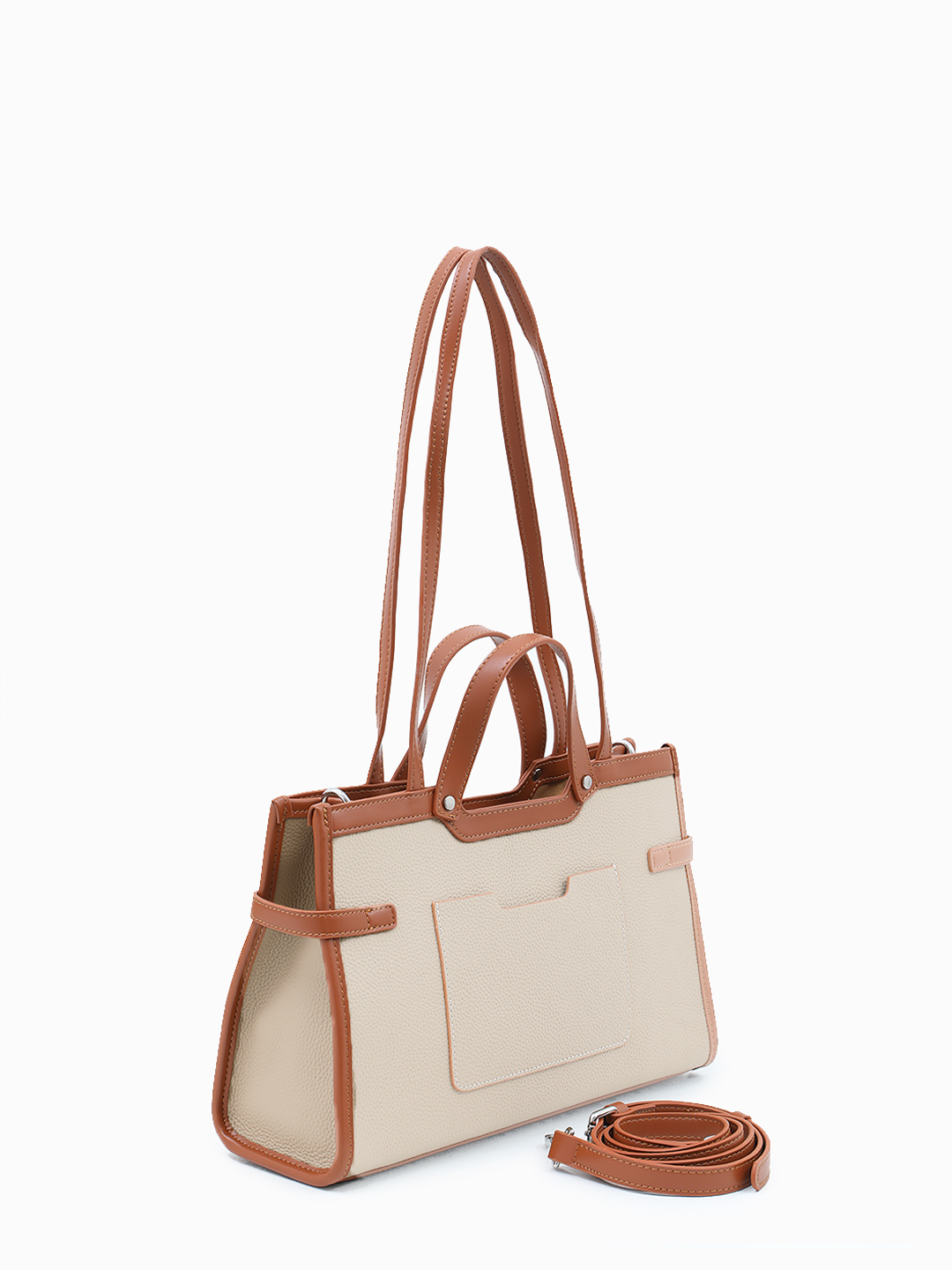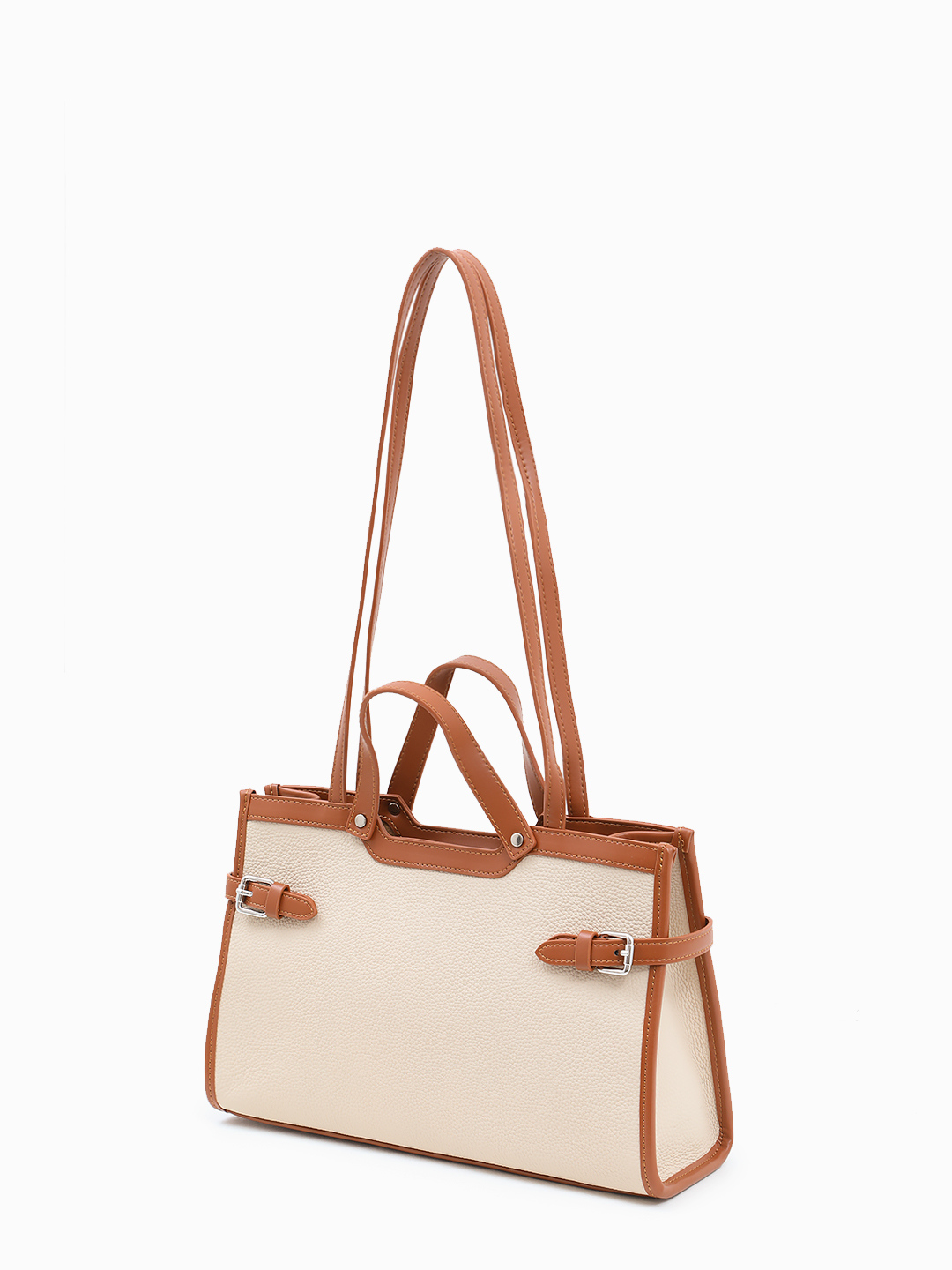 Бежевая сумка-тоут с декоративным рыжим ремнём от FOLLE