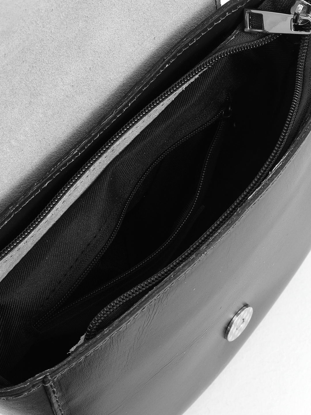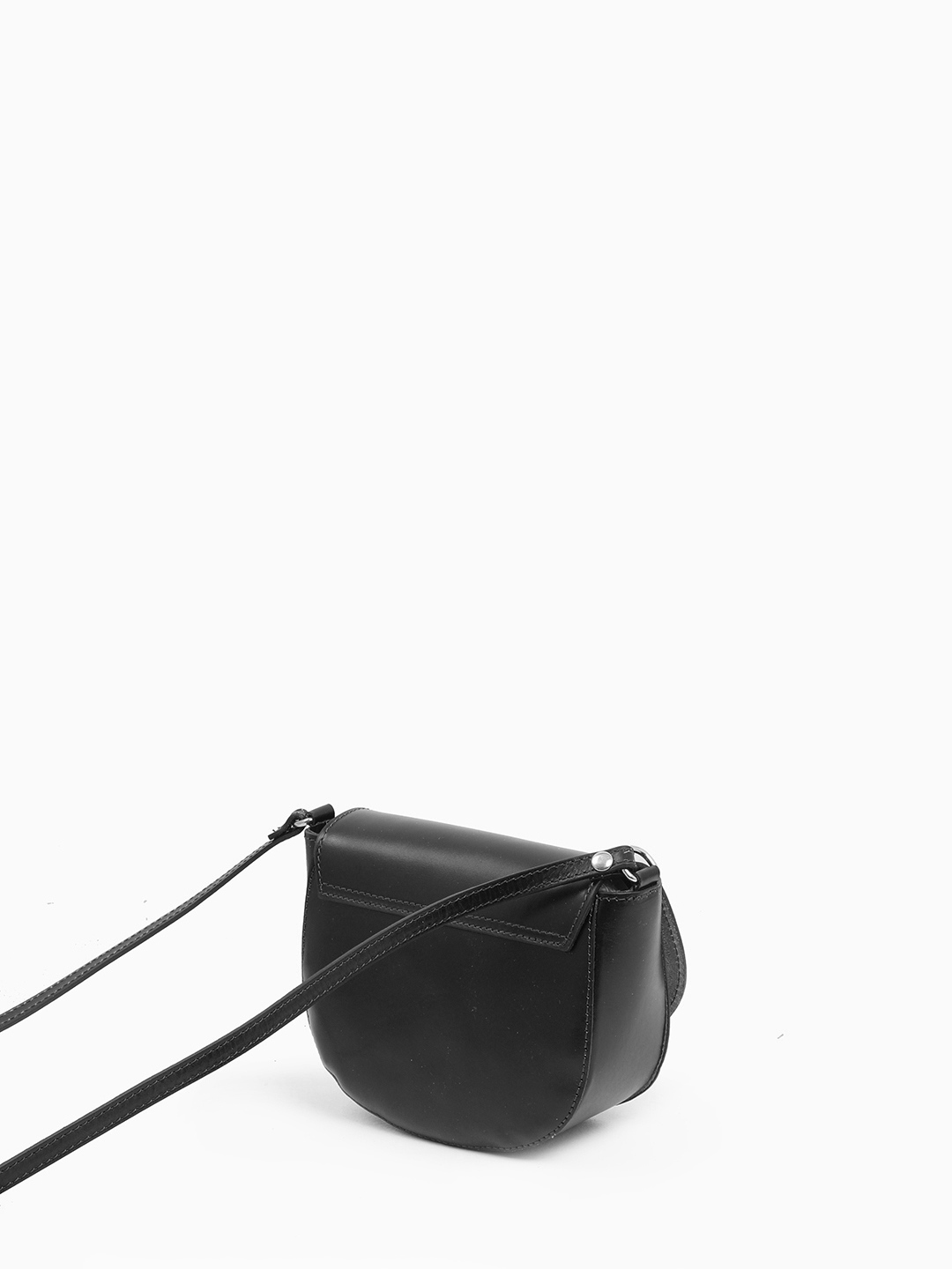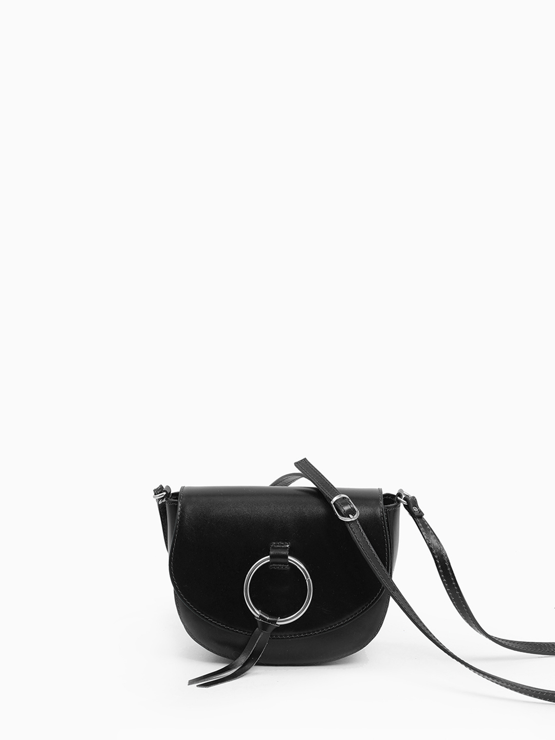 Сумка-сэдл с круглой пряжкой от FOLLE из натуральной кожи vacchetta чёрного цвета