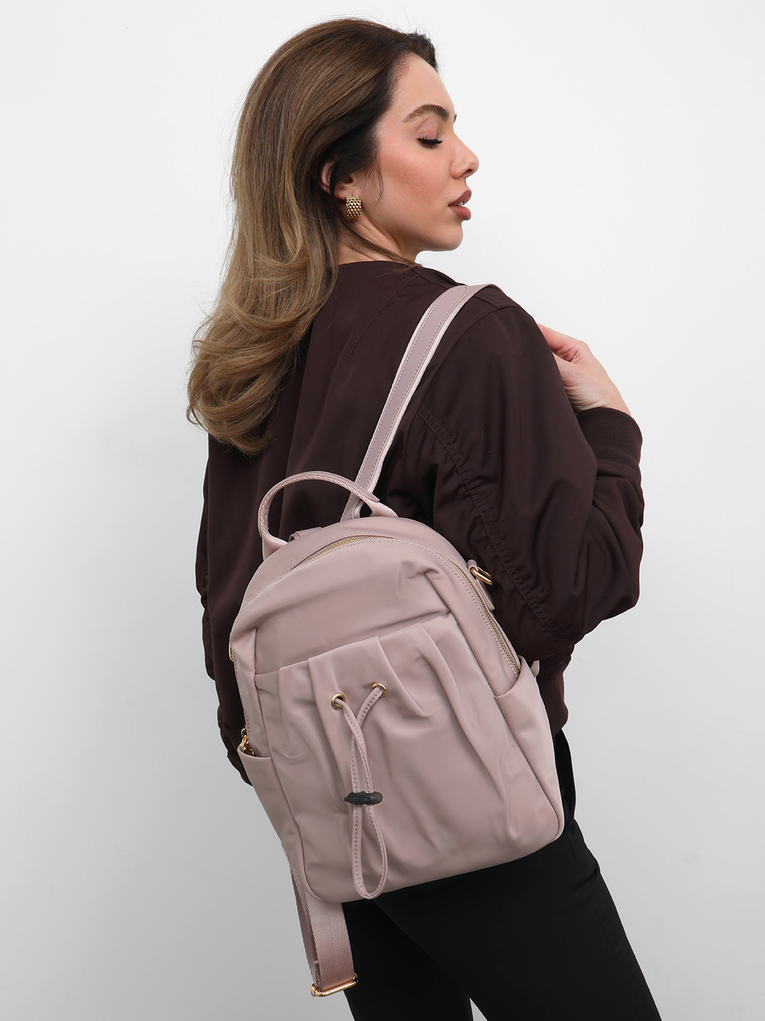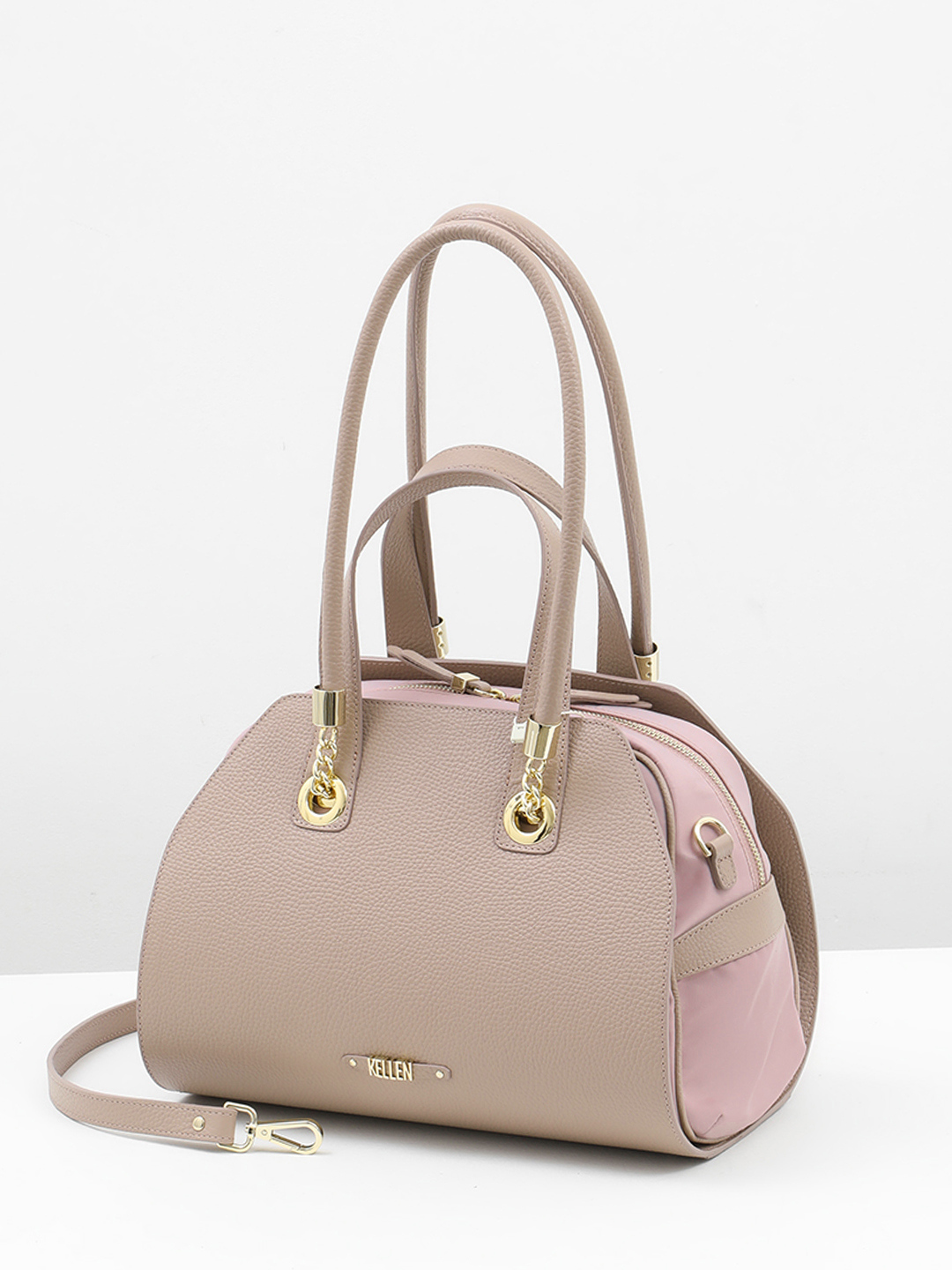 Сумка-трансформер с двойными ручками от KELLEN из нейлона и натуральной кожи оттенка античной розы