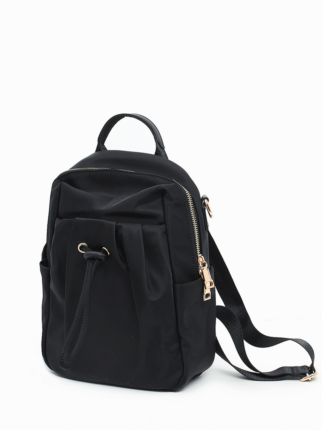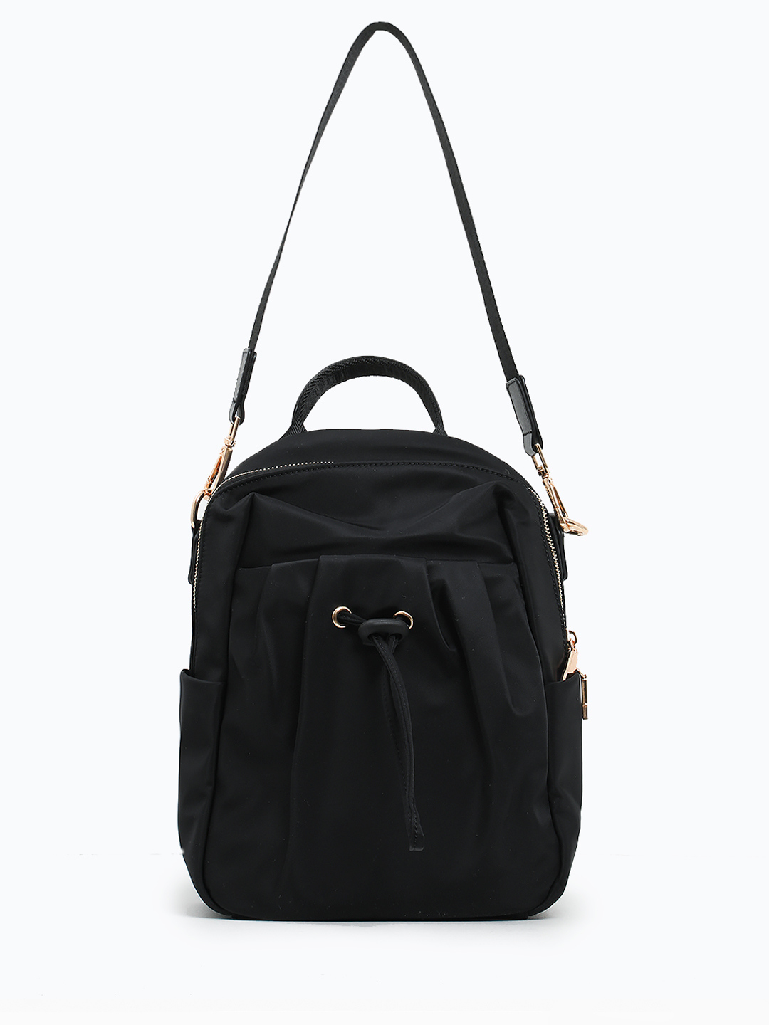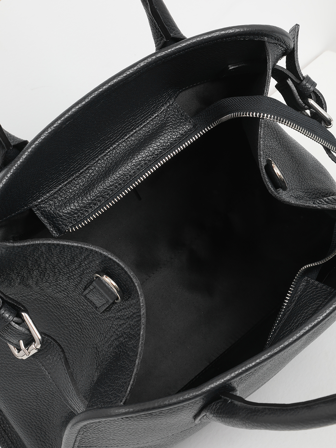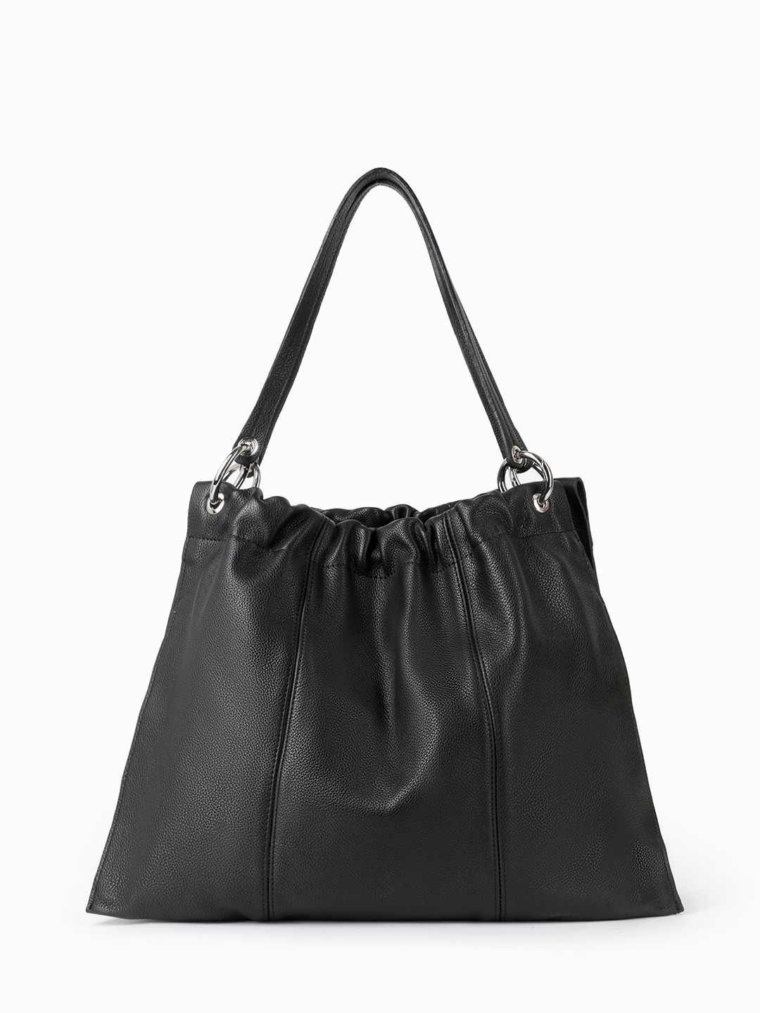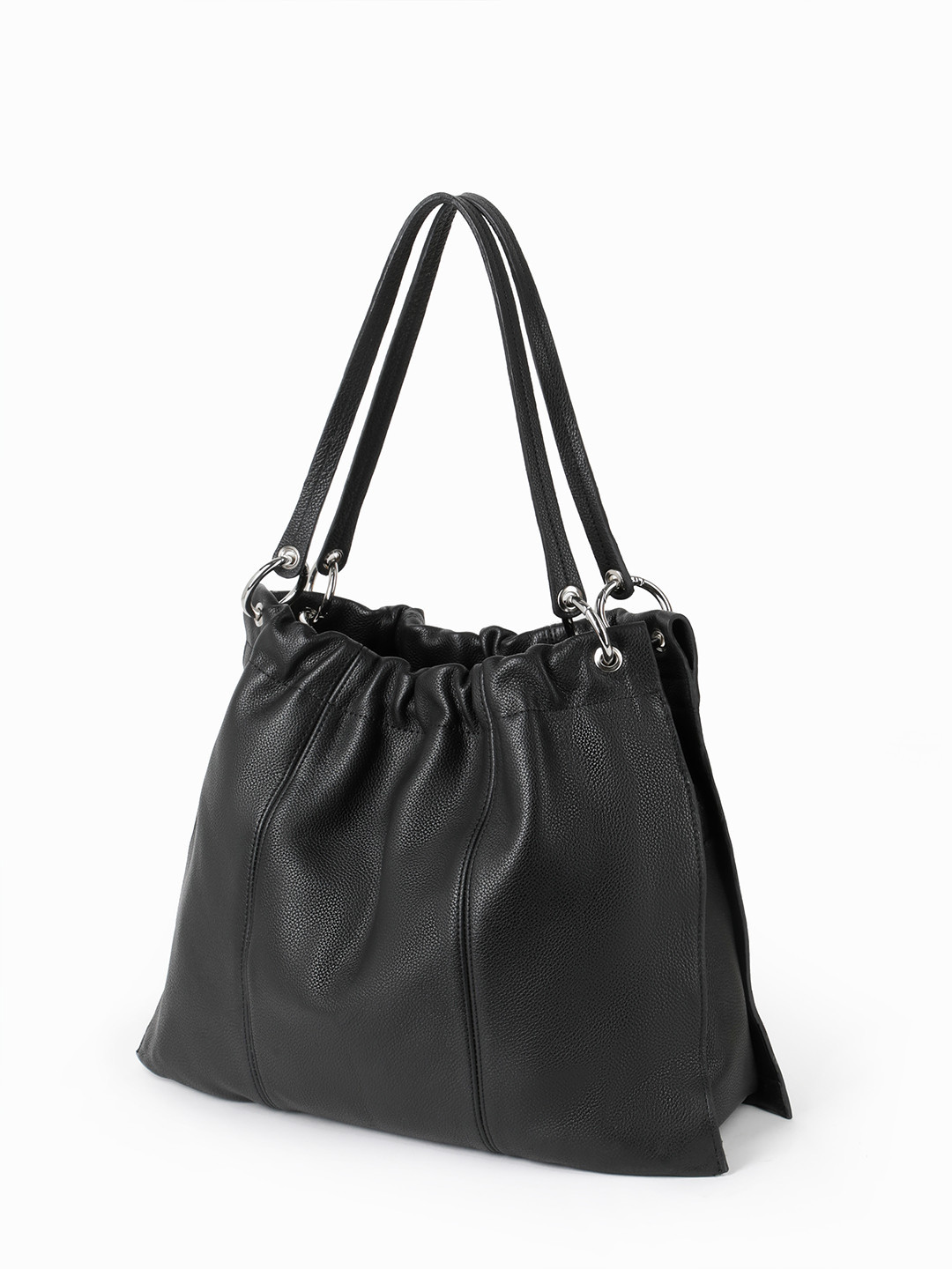 Сумка-мешок с ручками на кольцах и кожаными складками от FOLLE в чёрном цвете