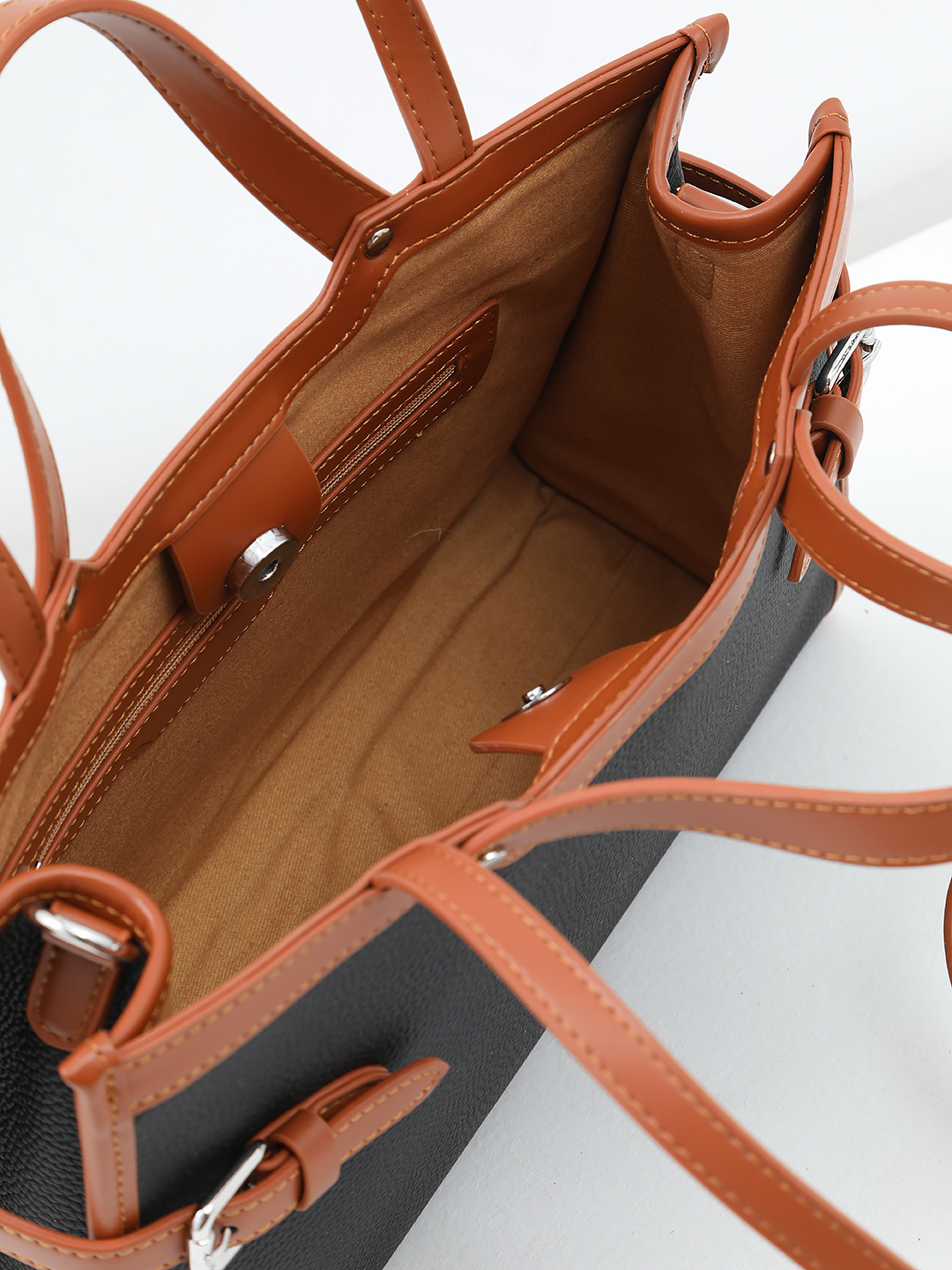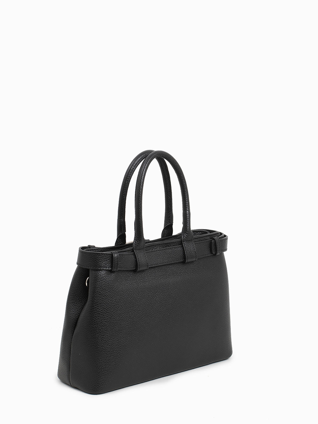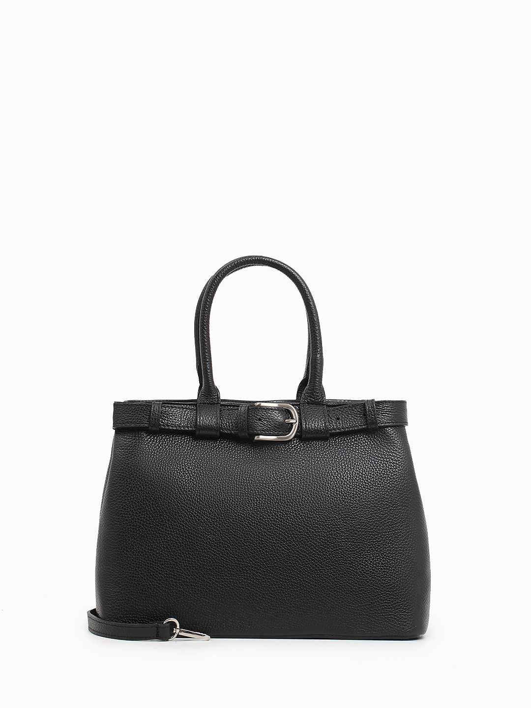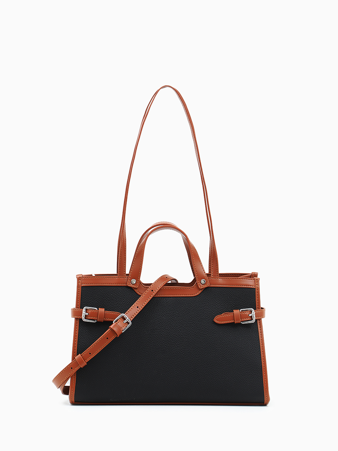 Чёрная сумка-тоут с декоративным чёрным ремнём от FOLLE
