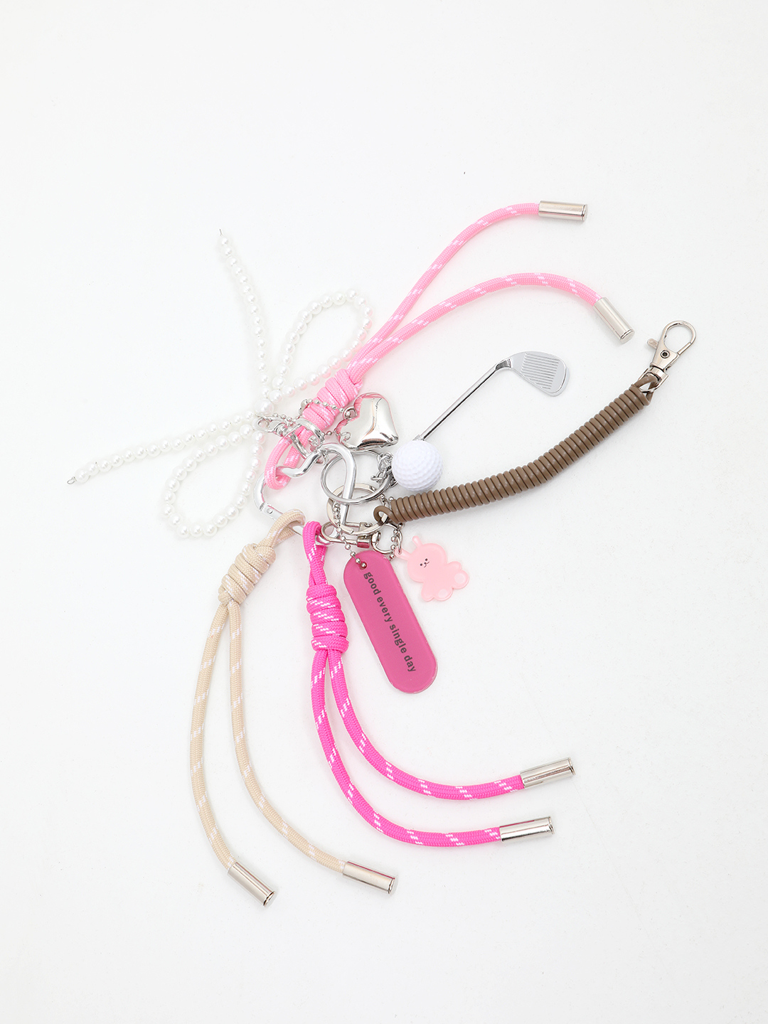 Брелок на сумку с серебристыми и розовыми жемчужинами