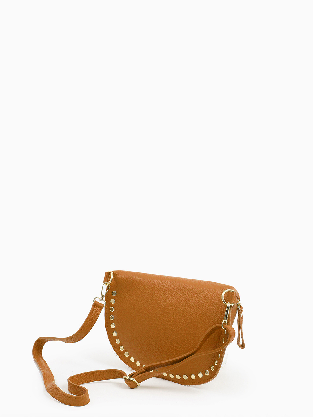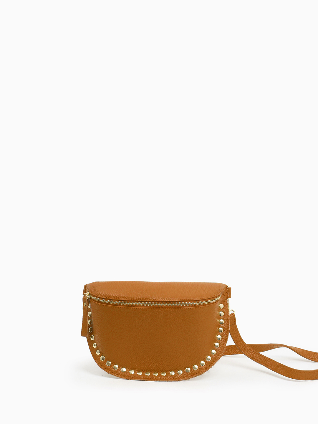 Полукруглая кросс-боди с золотистыми клёпками от FOLLE в рыжем оттенке