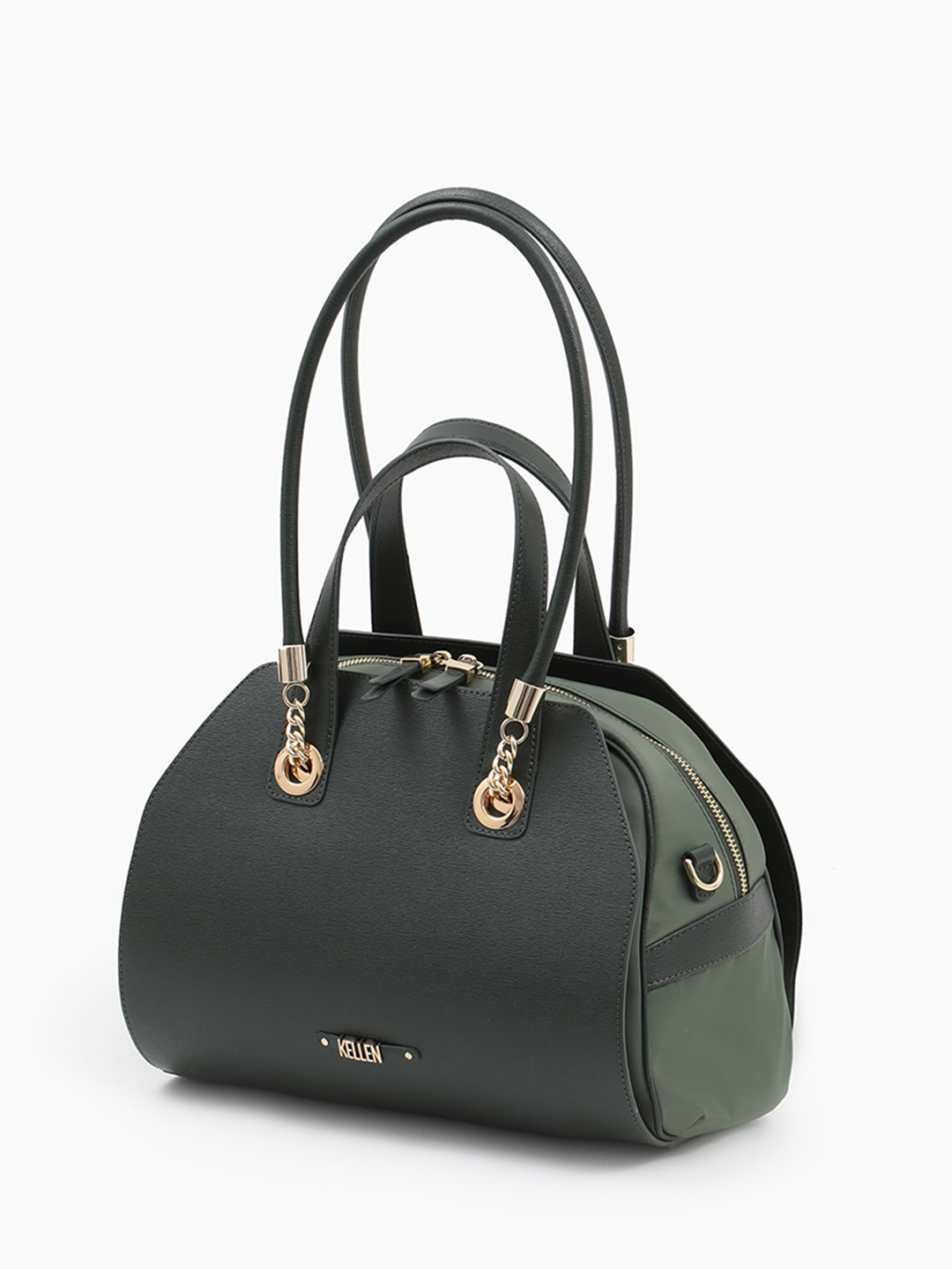 Сумка-трансформер с двойными ручками от KELLEN из нейлона и натуральной кожи зелёного цвета