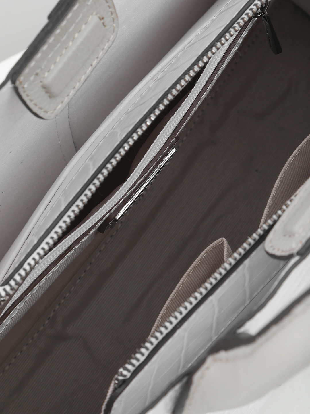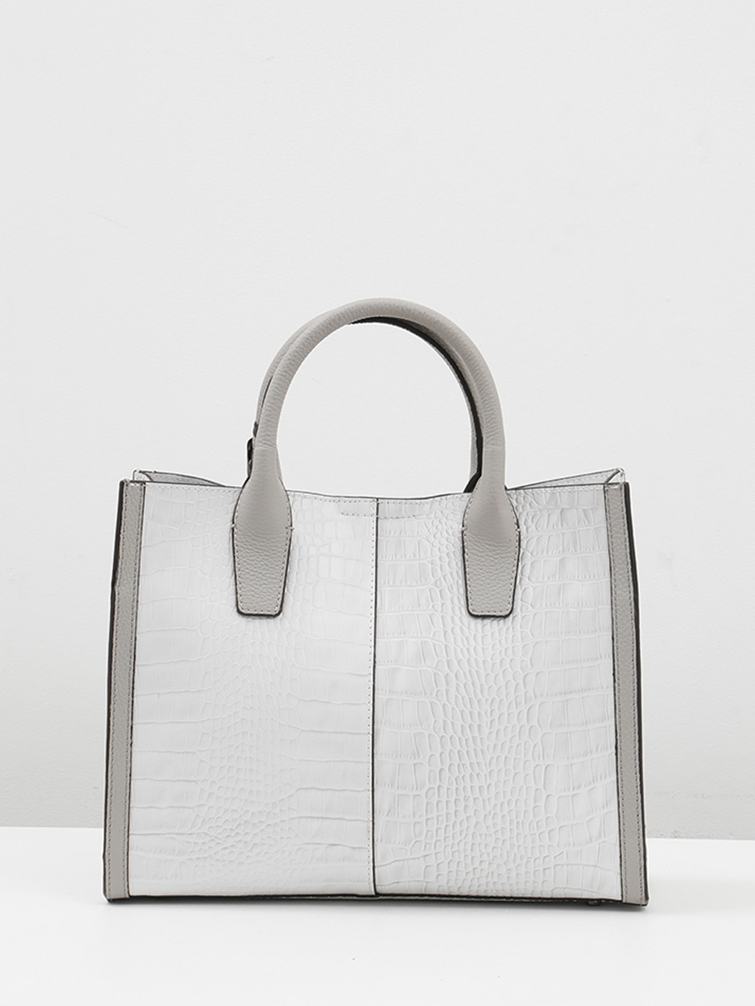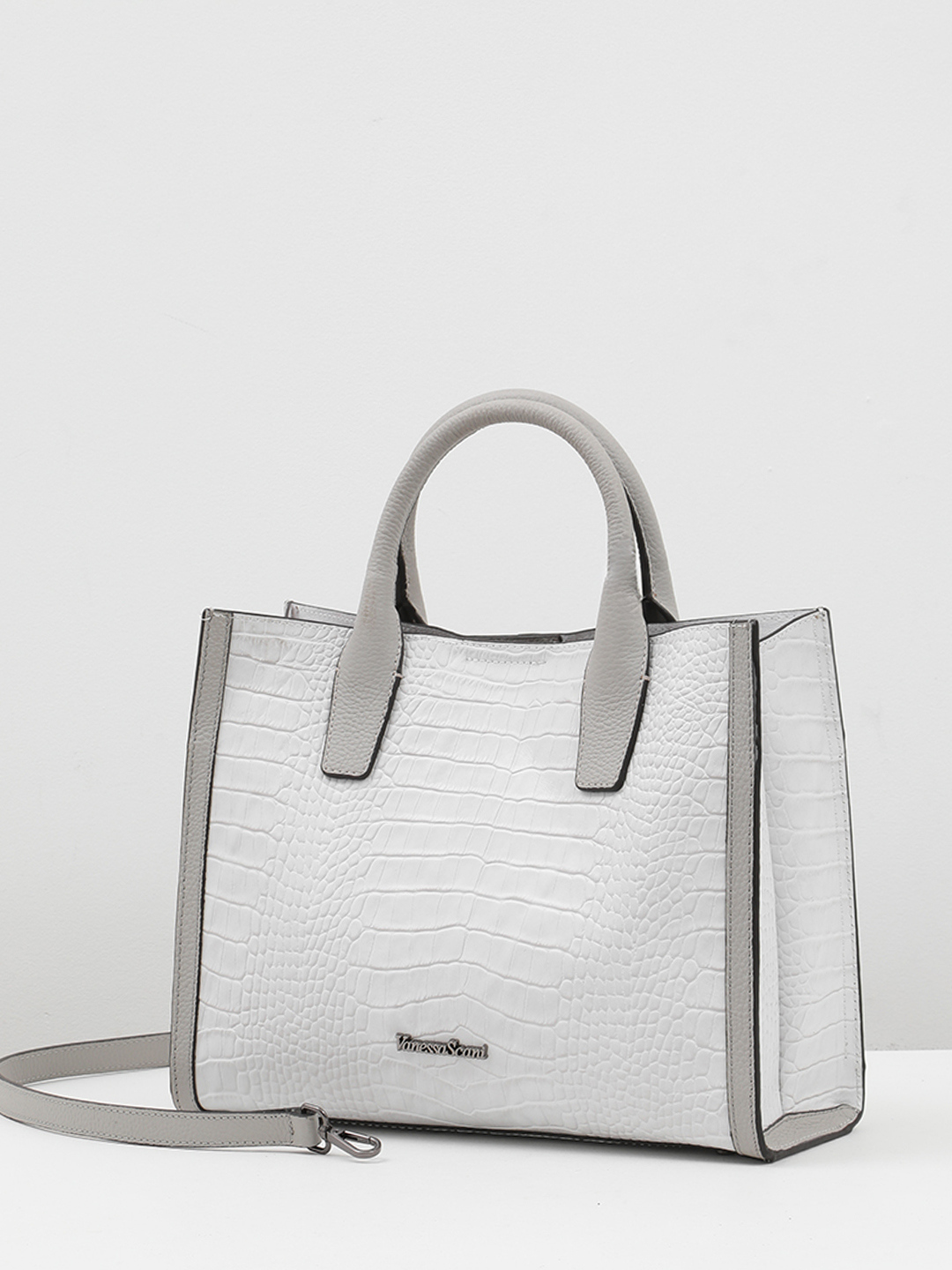 Сумка-тоут с именной гравировкой Vanessa Scani из кожи под крокодила светло-серого цвета