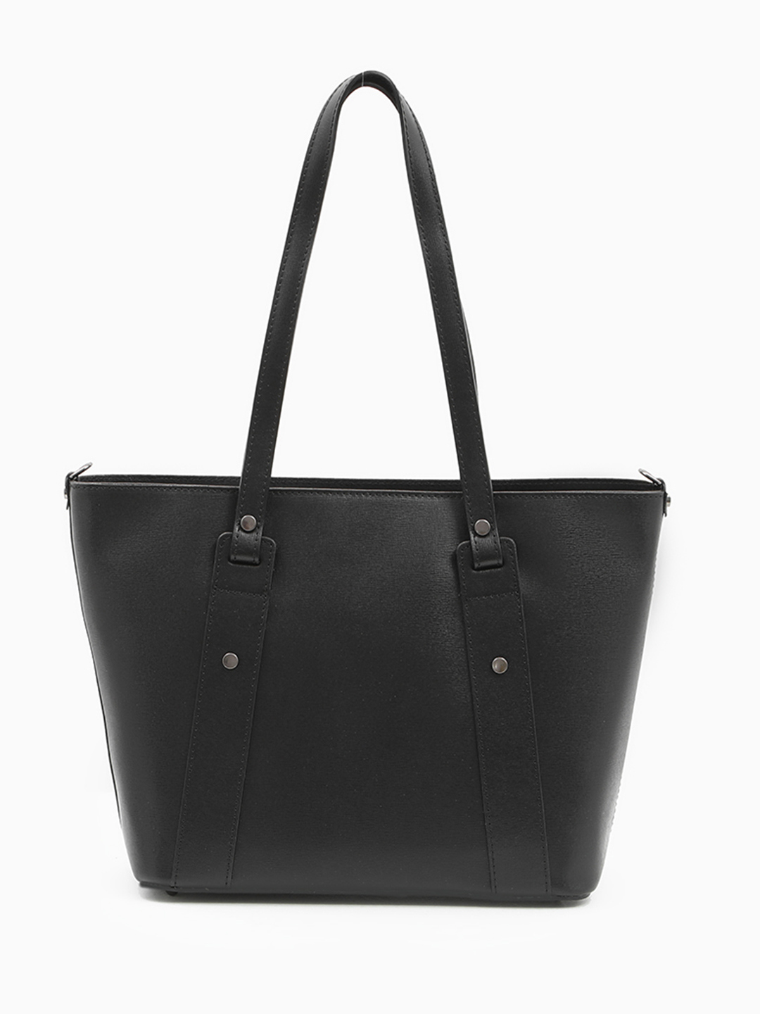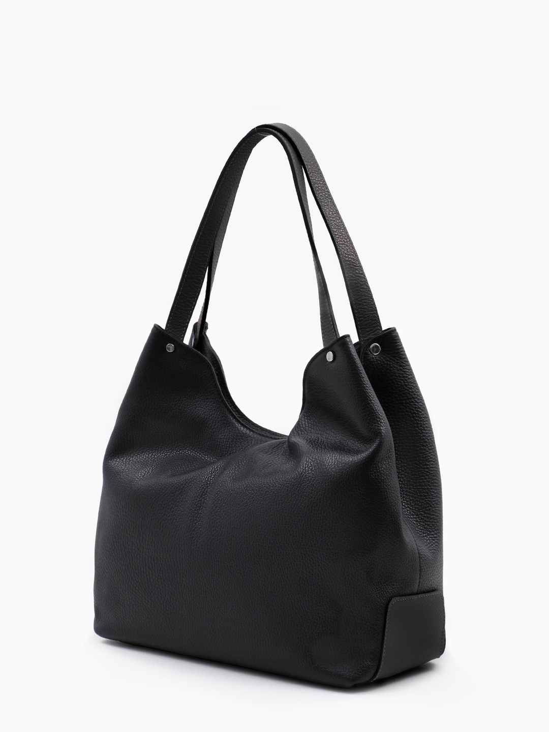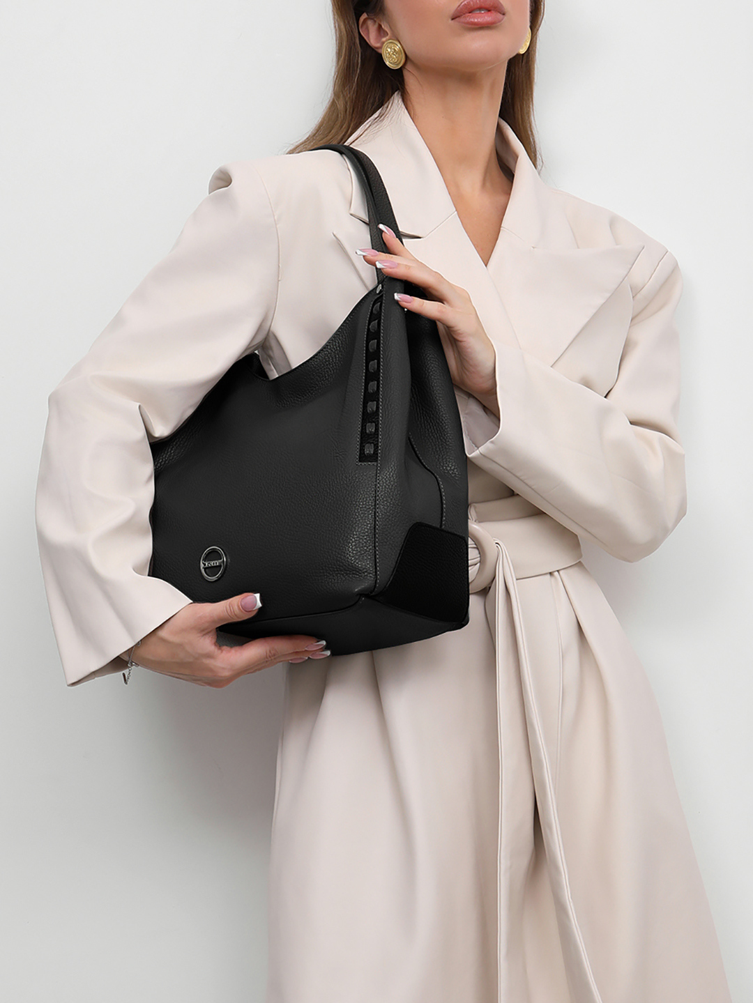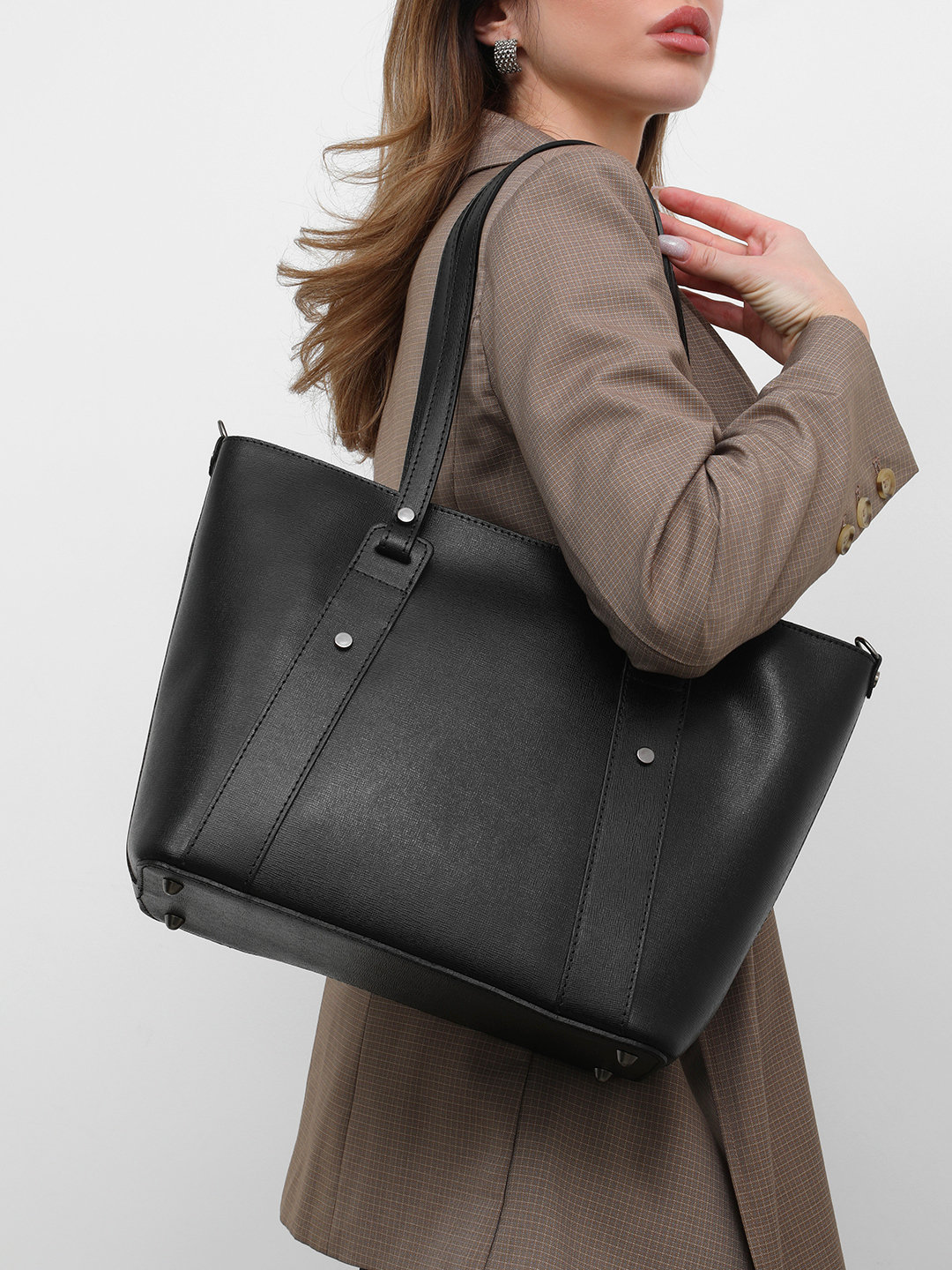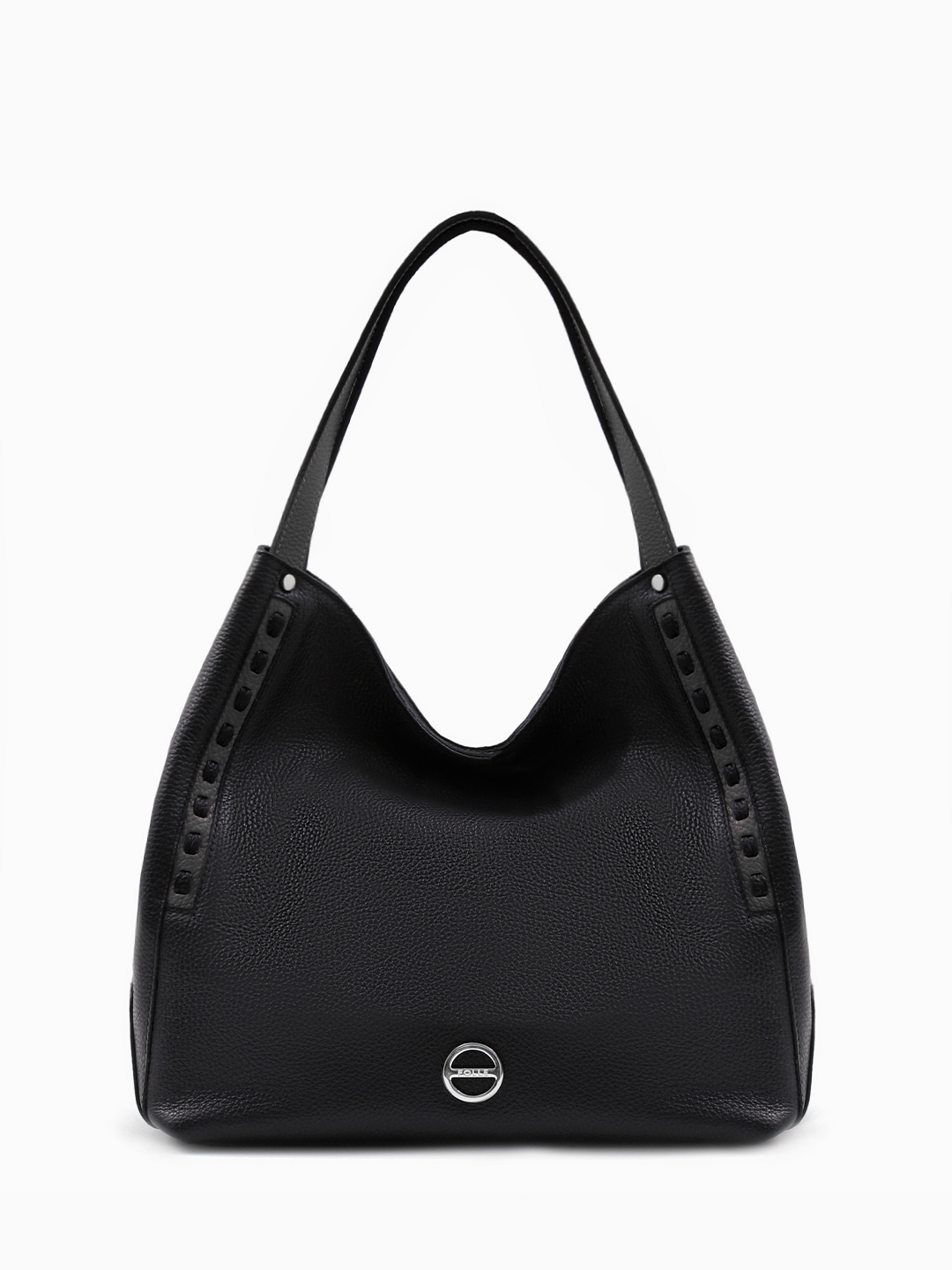Сумка-шоппер чёрного цвета с круглой фирменной фурнитурой от FOLLE