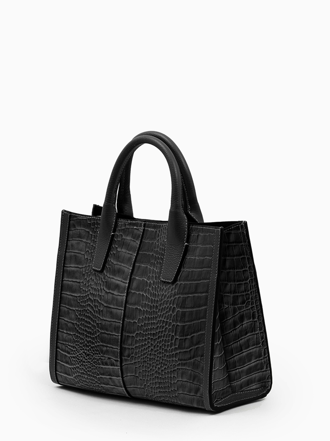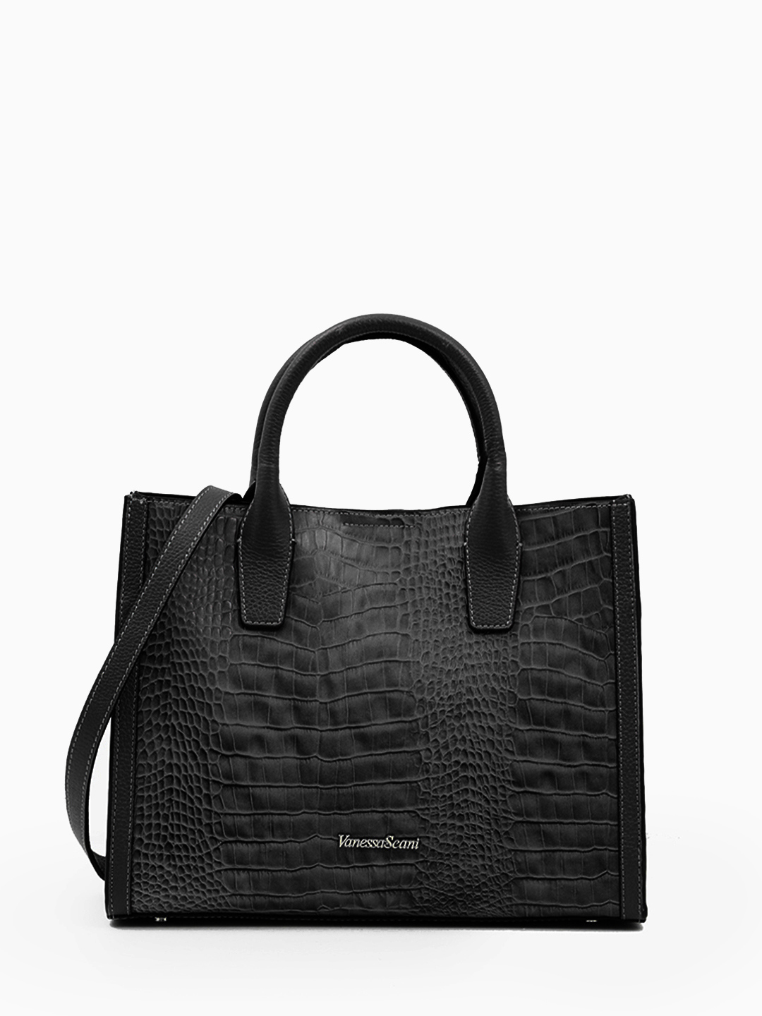 Сумка-тоут с именной гравировкой Vanessa Scani из кожи под крокодила чёрного цвета