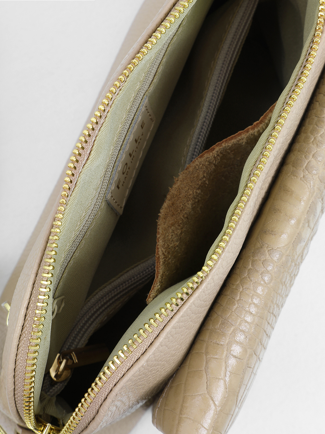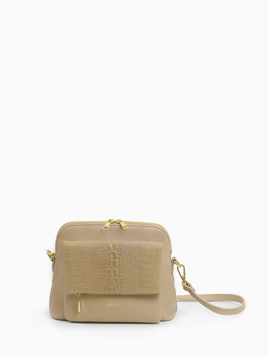 Кросс-боди с тиснением под крокодила на внешнем кармане от FOLLE оттенка капучино