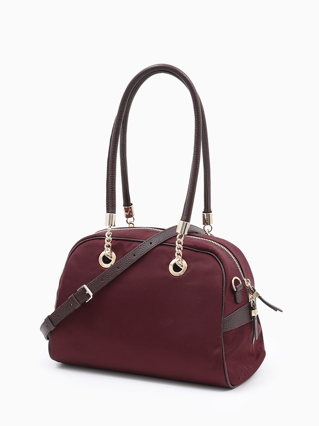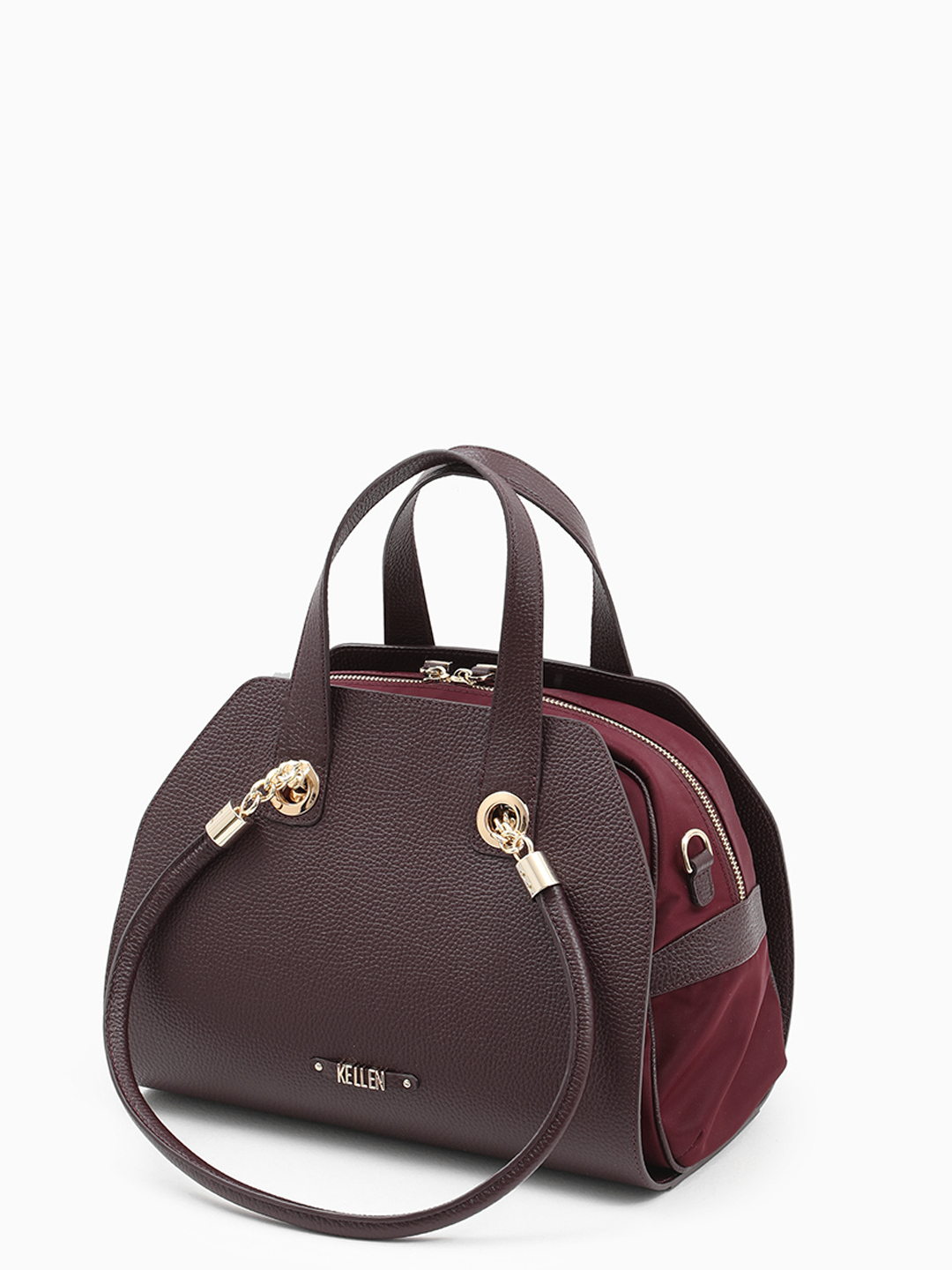 Сумка-трансформер с двойными ручками от KELLEN из нейлона и натуральной кожи бордового оттенка