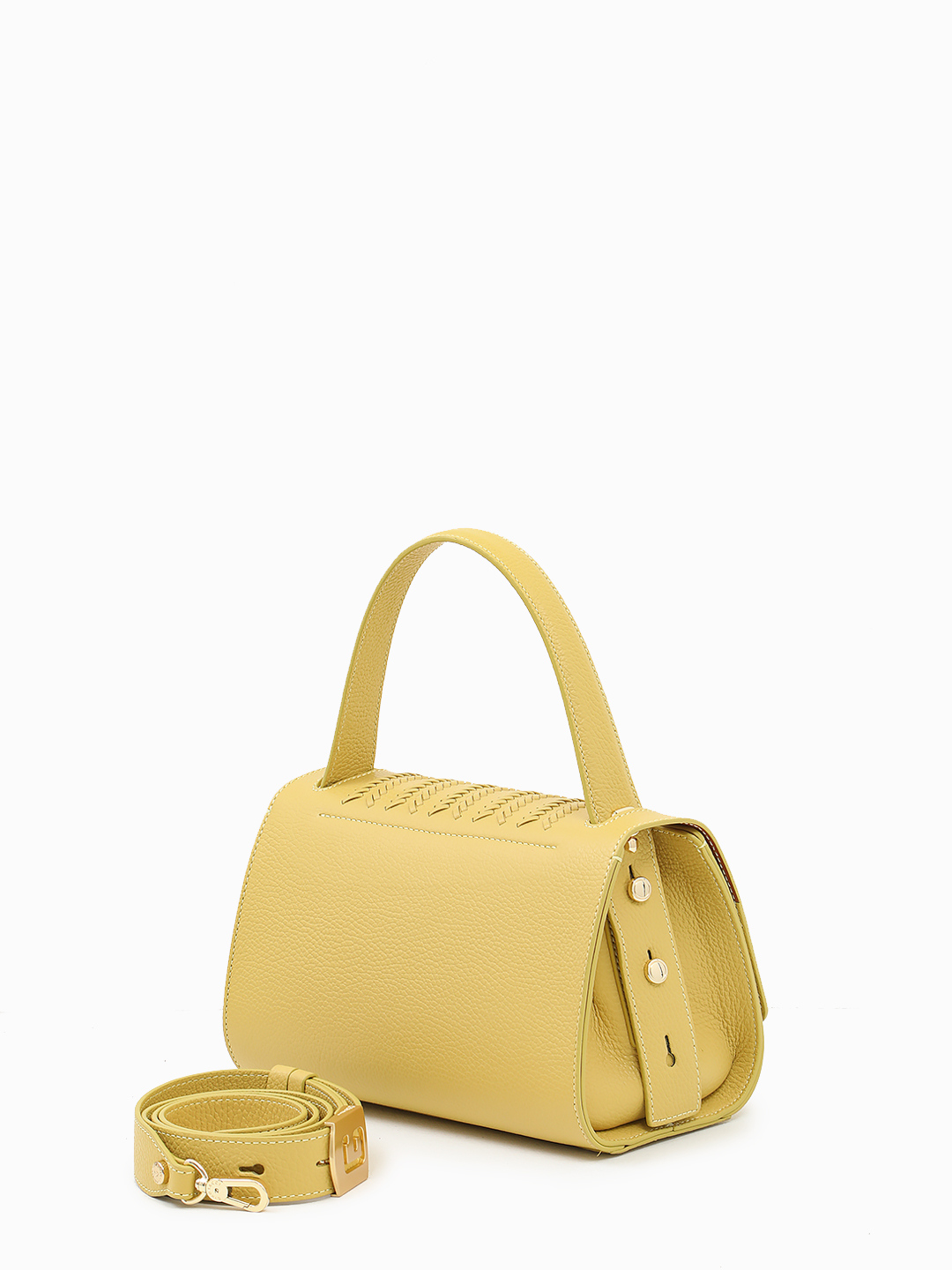 Однорукий сэтчел с рельефной строчкой от Gironacci из премиальной кожи жёлтого оттенка mimosa