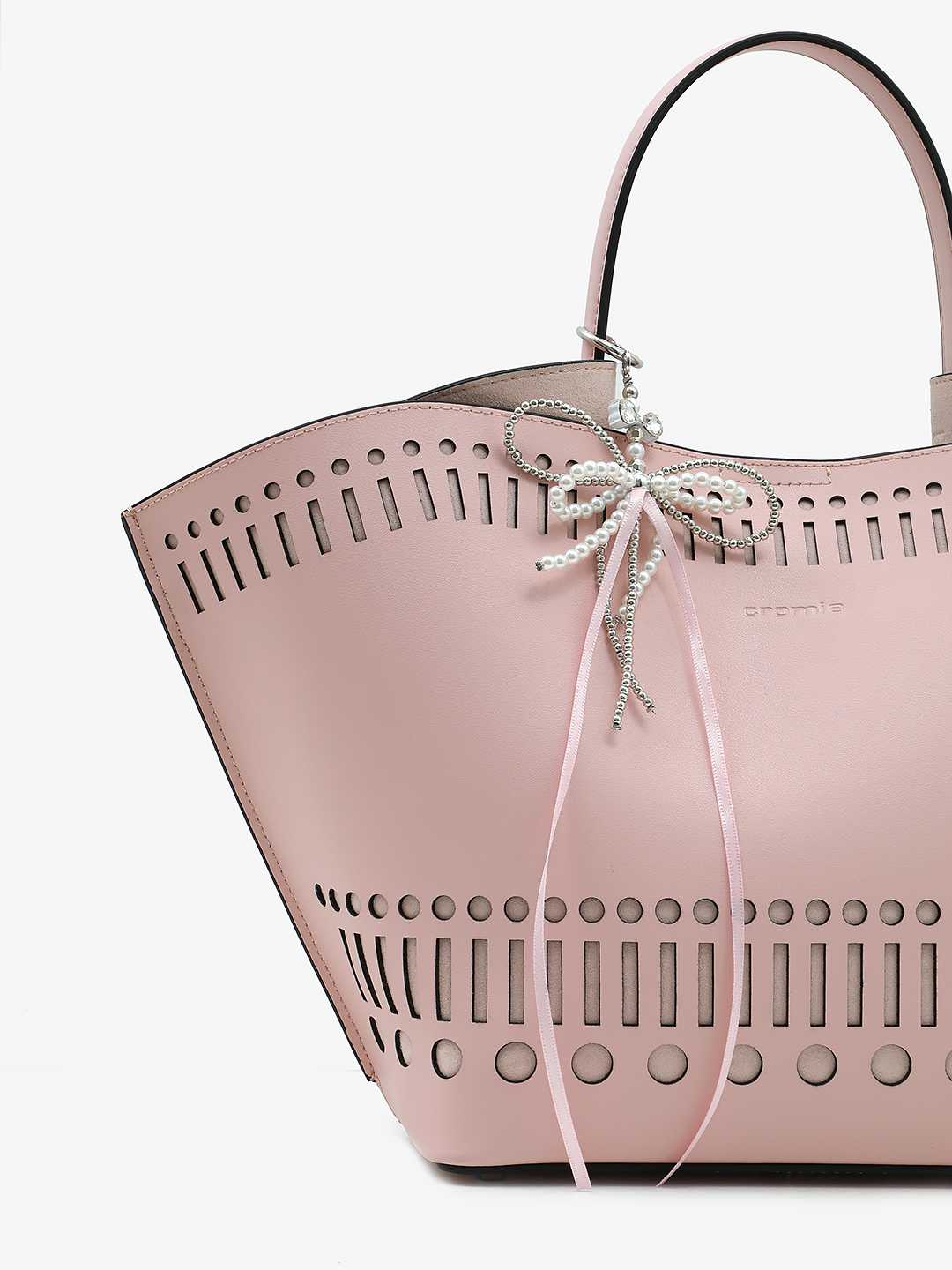 Жемчужный брелок на сумку с розовыми лентами