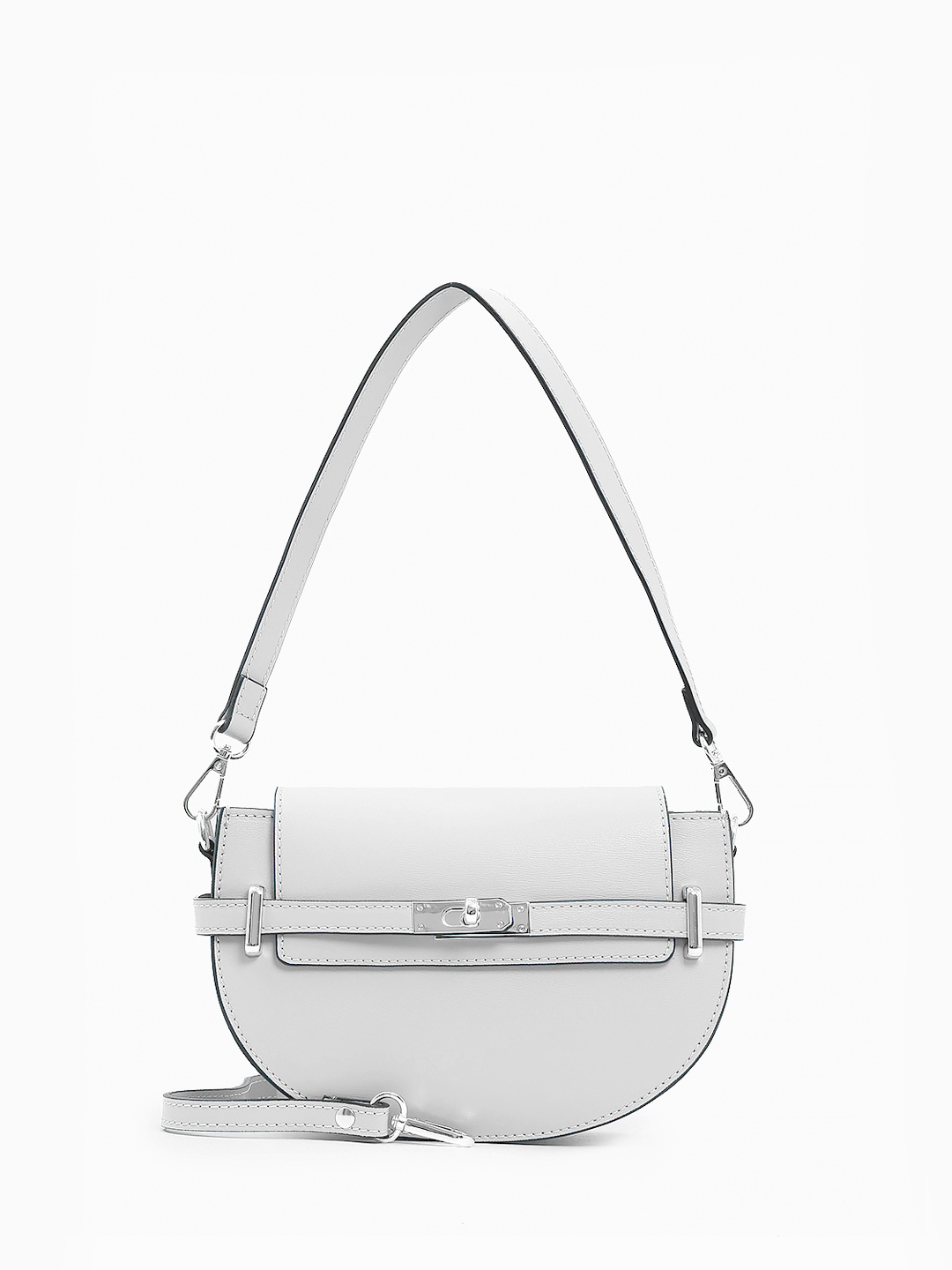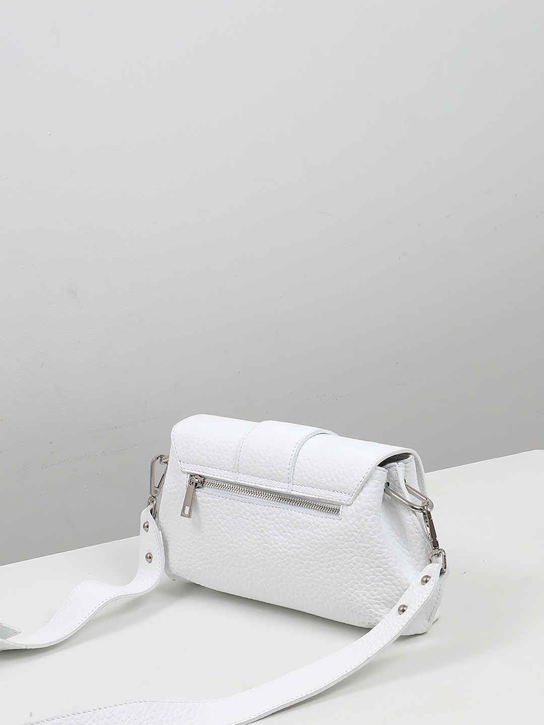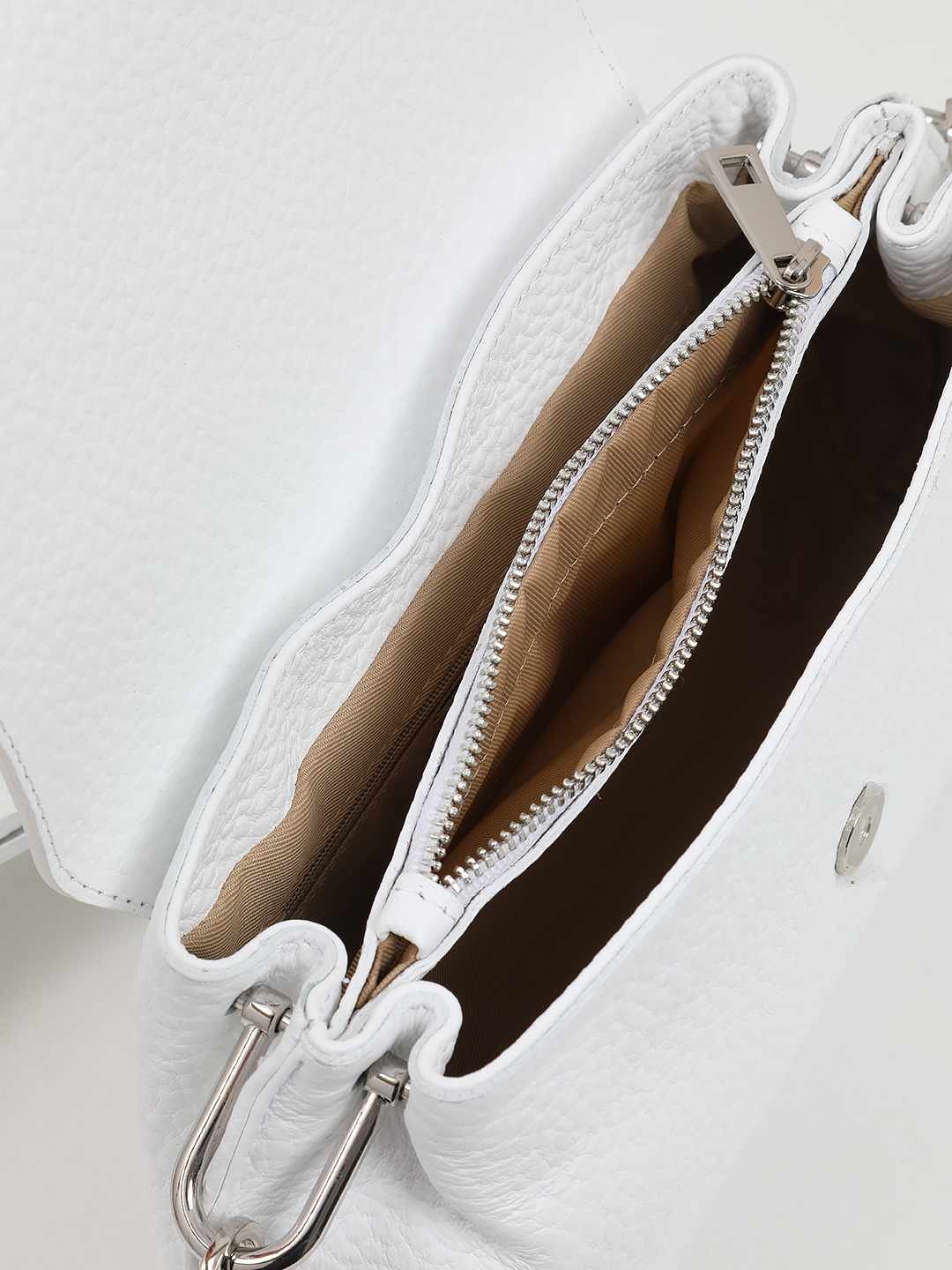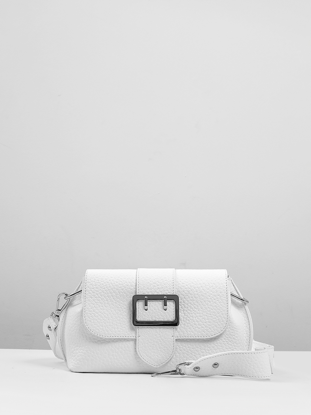 Кросс-боди на плечо с клапаном в виде ремня от FOLLE из натуральной кожи белого цвета