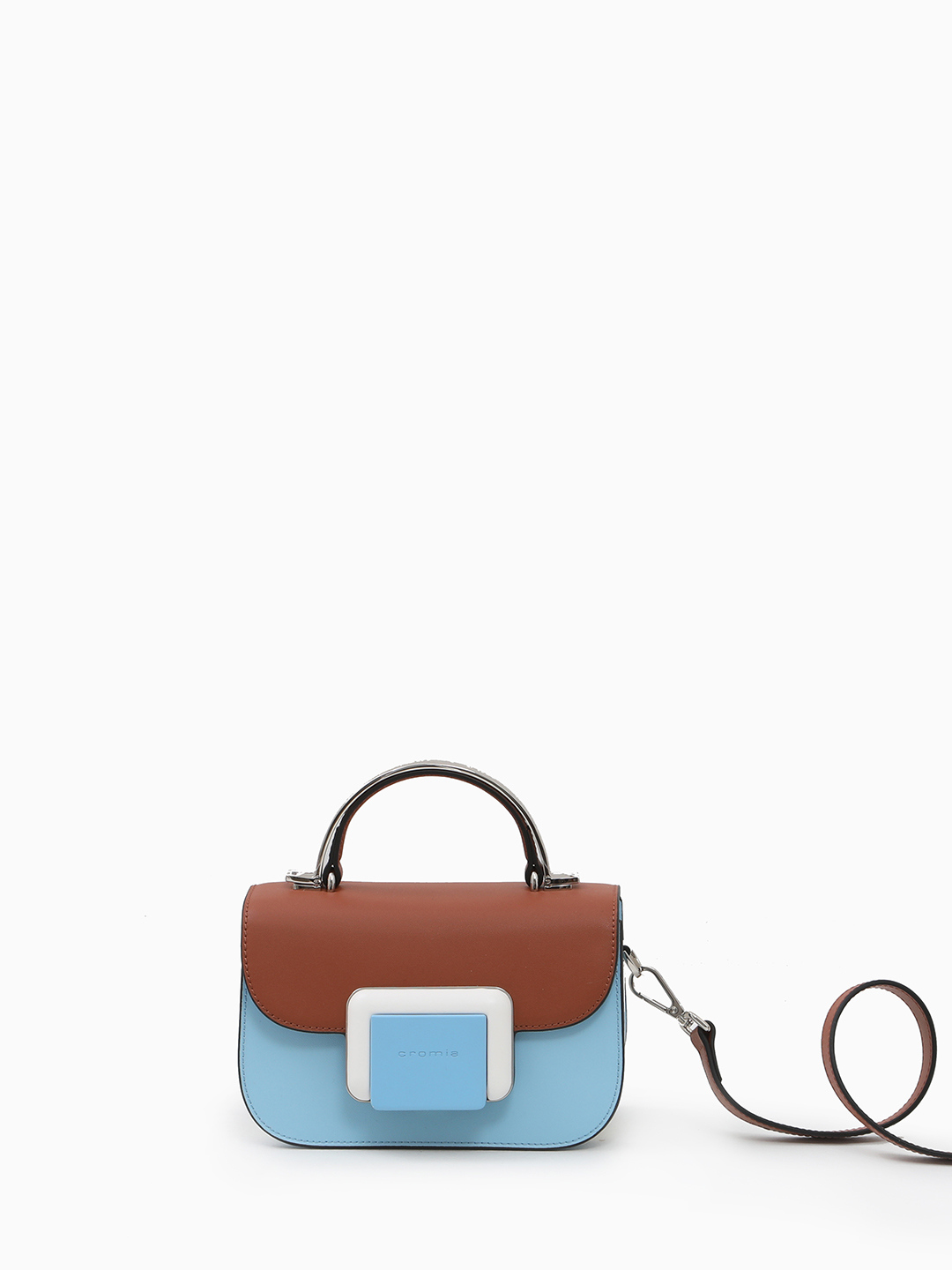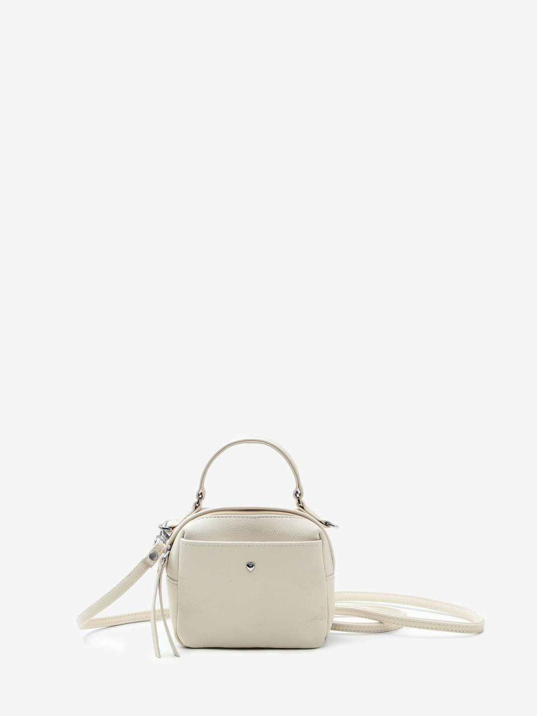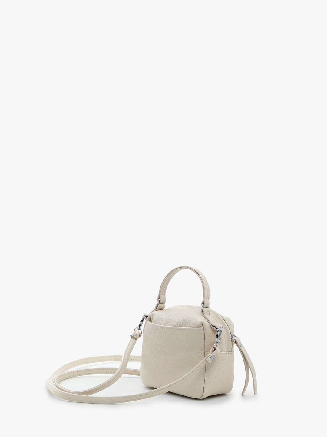 Мини сумка с круглой ручкой и ремнём на карабинах от FOLLE в бежевом оттенке