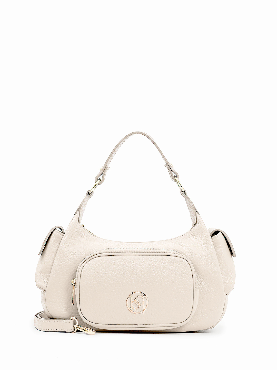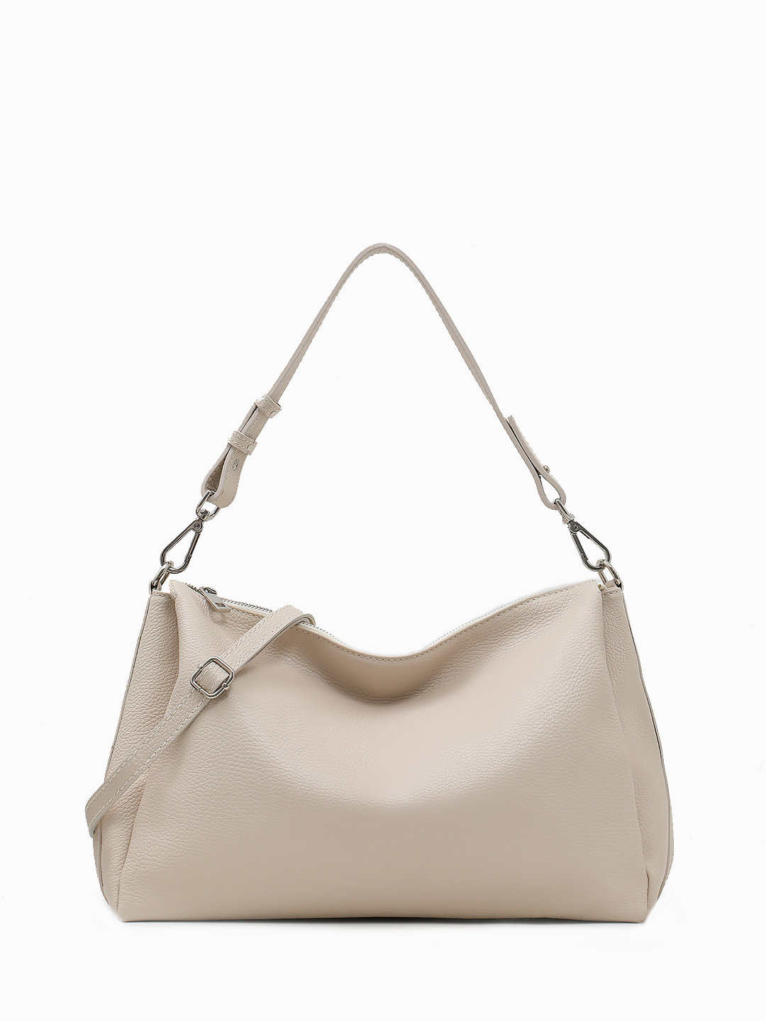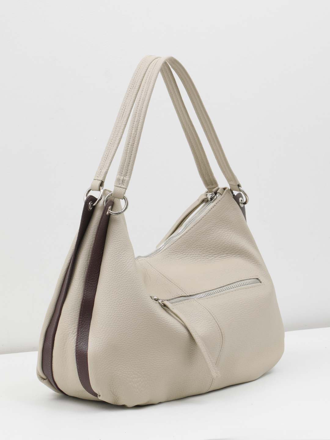 Сумка-хобо "VALITA" с дополнительными карманами от BE NICE из крупнозернистой кожи бежевого оттенка