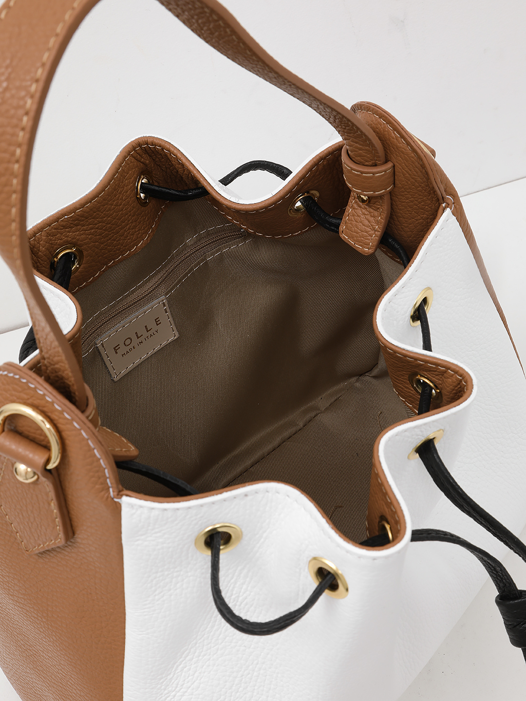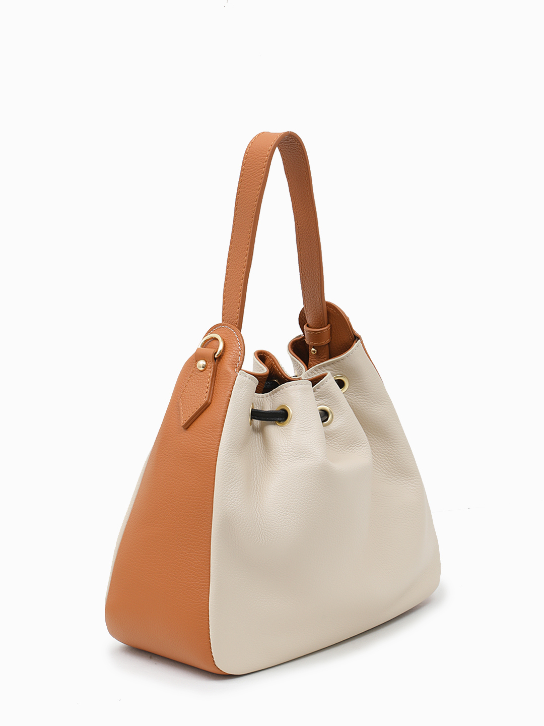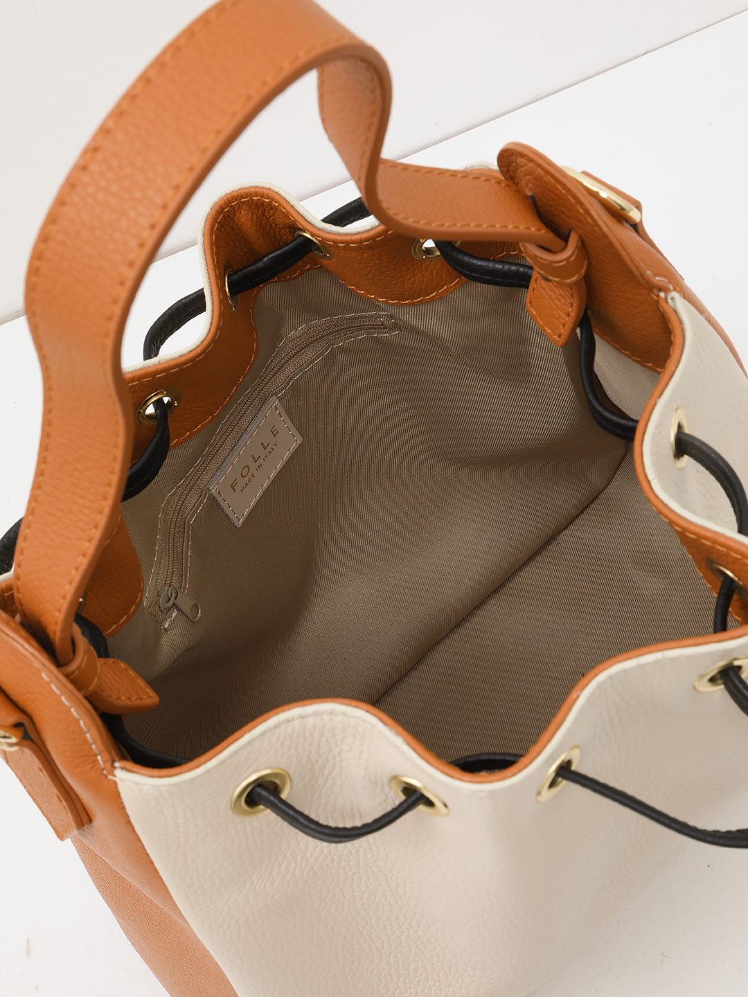 Сумка-кисет с металлическими люверсами от FOLLE в сочетании бежевого оттенка и оттенка мёда miele