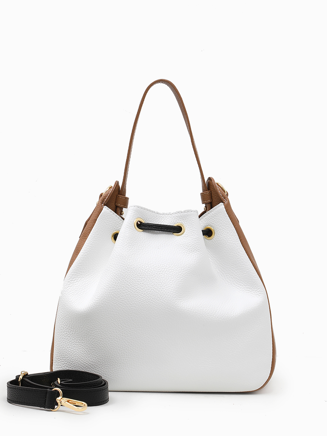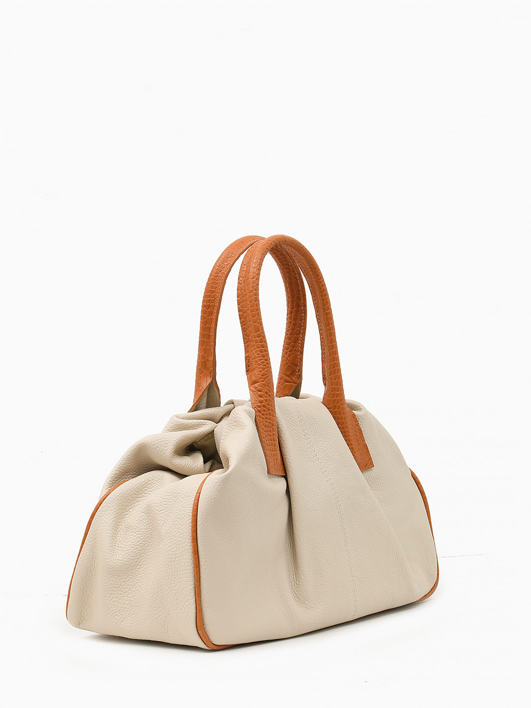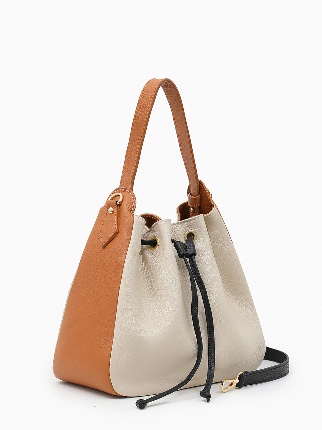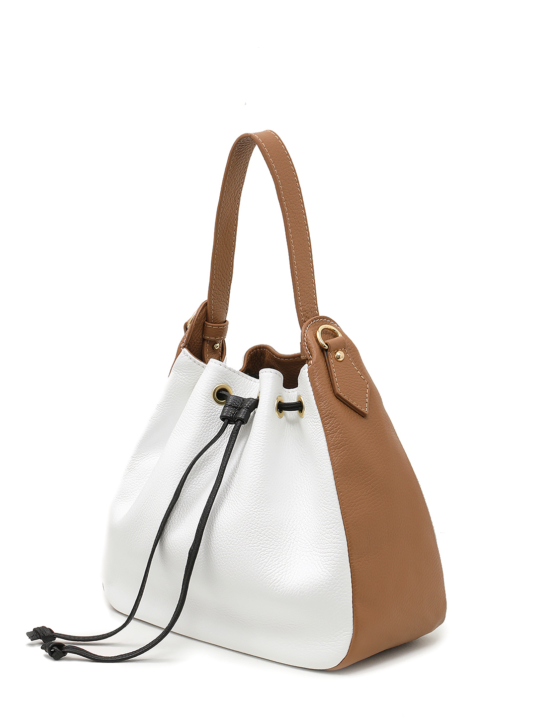 Сумка-кисет с металлическими люверсами от FOLLE в сочетании бежевого оттенка и оттенка мёда miele