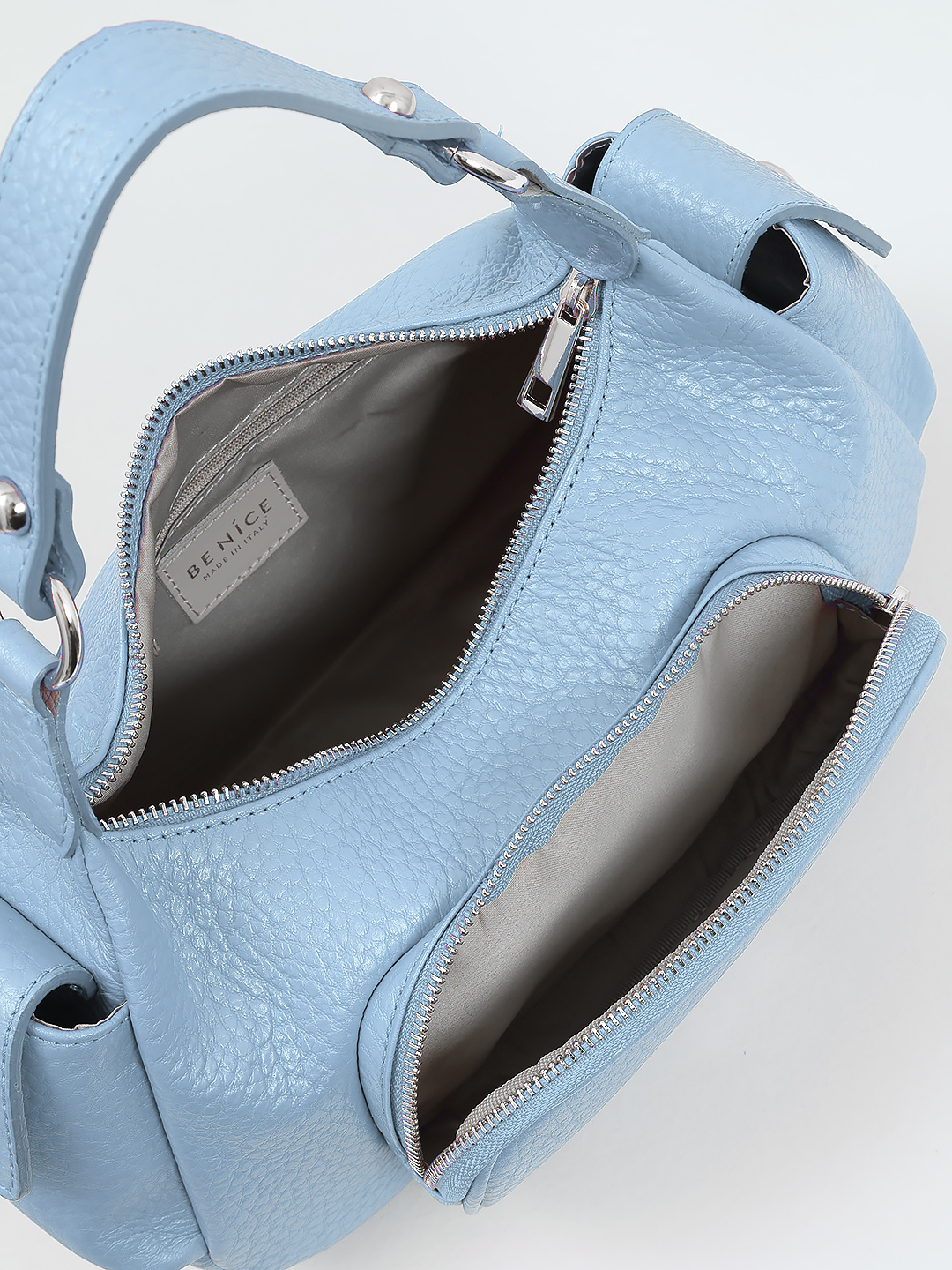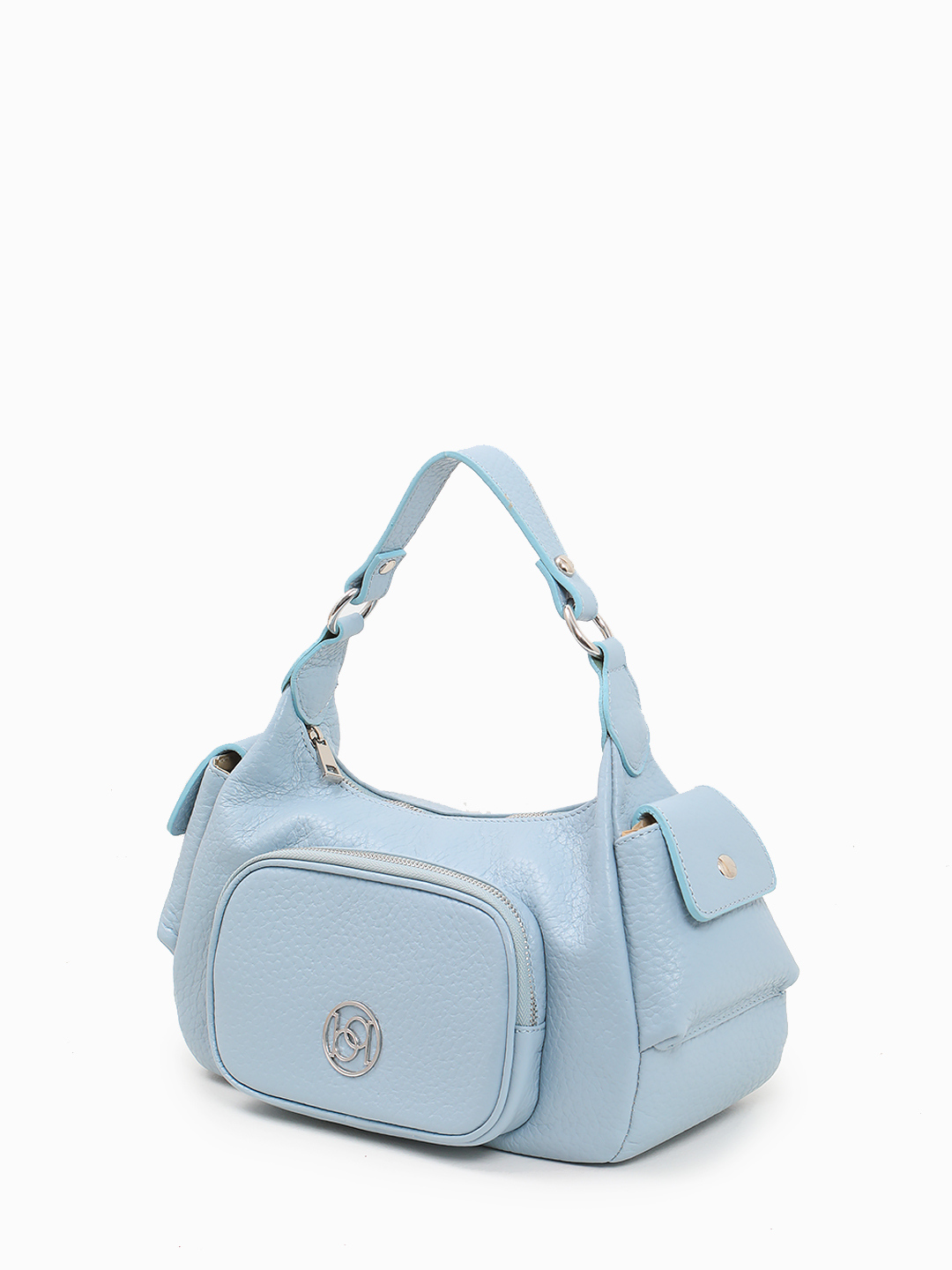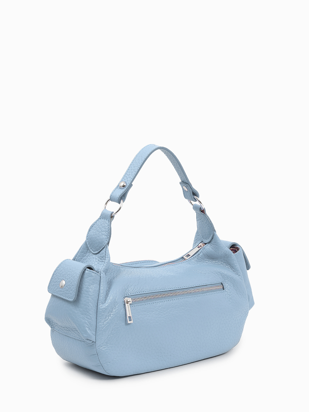 Сумка-хобо "VALITA" с дополнительными карманами от BE NICE из крупнозернистой кожи небесного оттенка