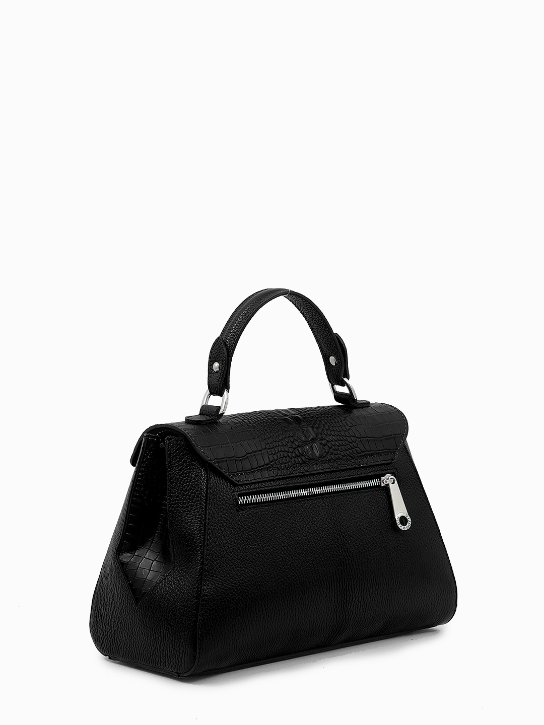Сумка-сэтчел с изогнутым клапаном под крокодила от FOLLE в чёрном цвете