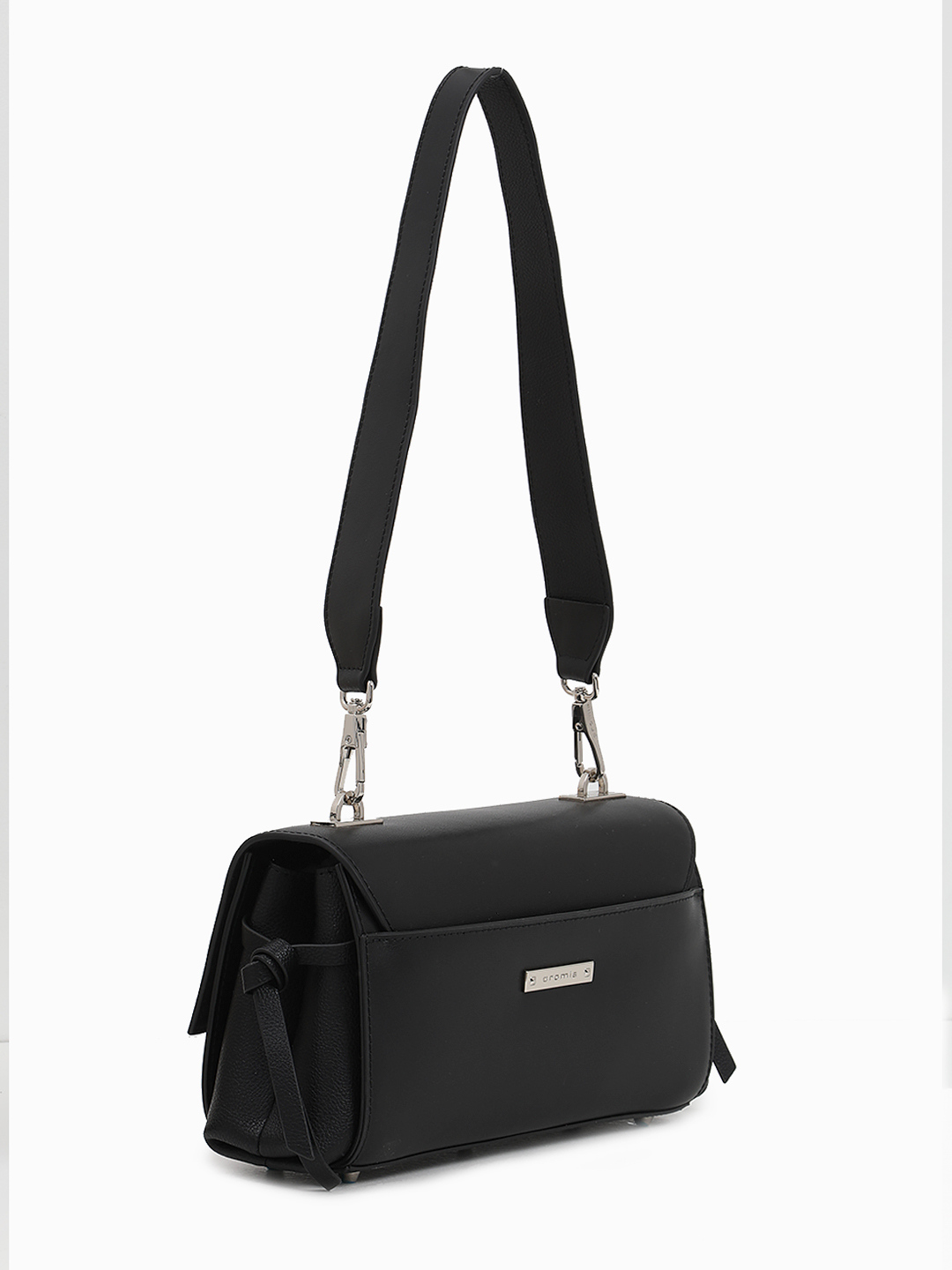 Сумка-багет с металлической плашкой с логотипом CROMIA в чёрном цвете