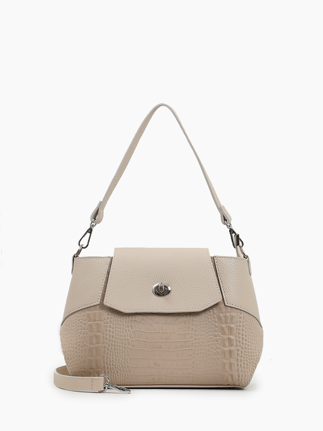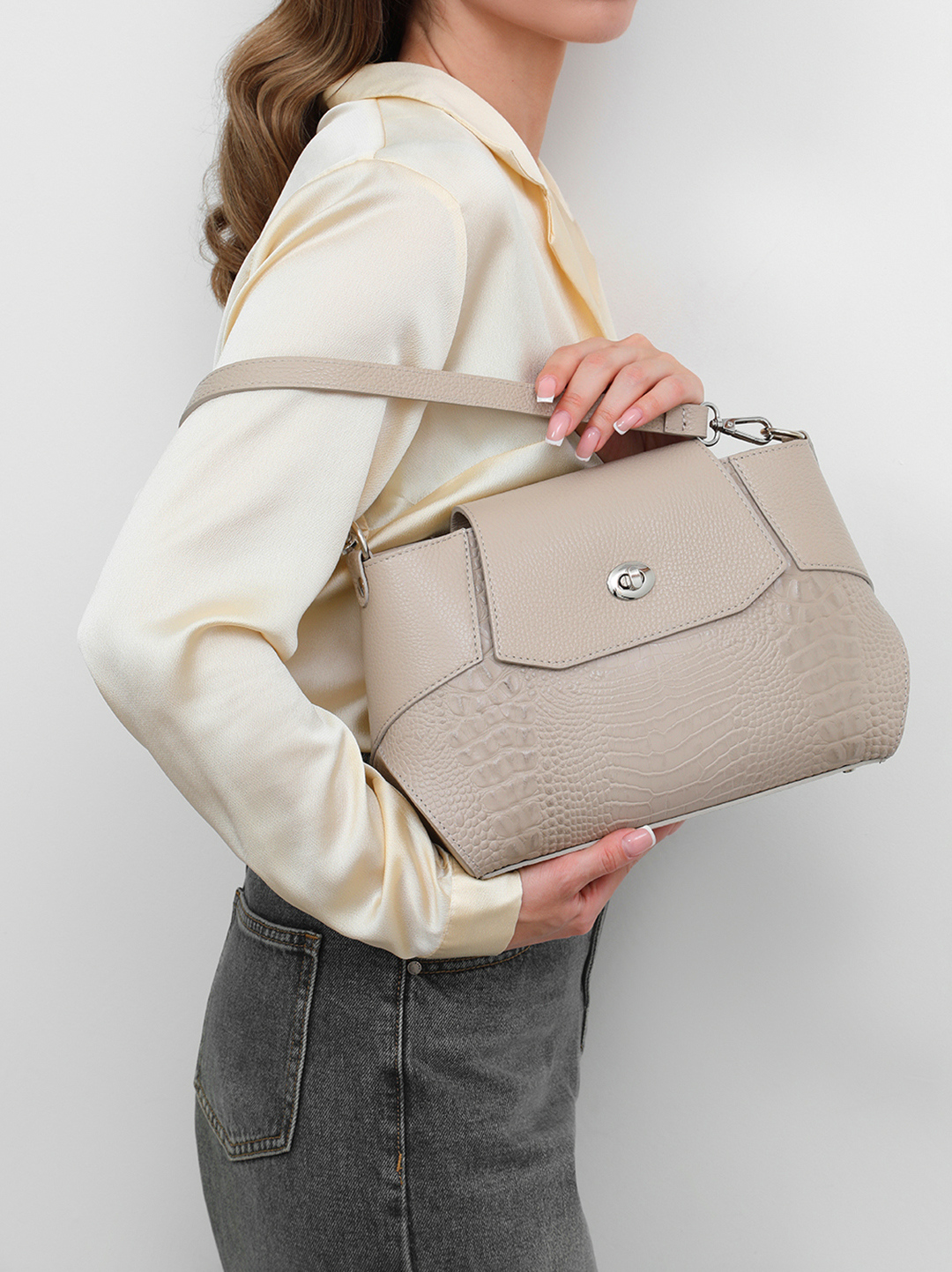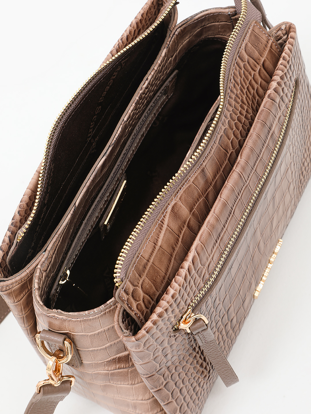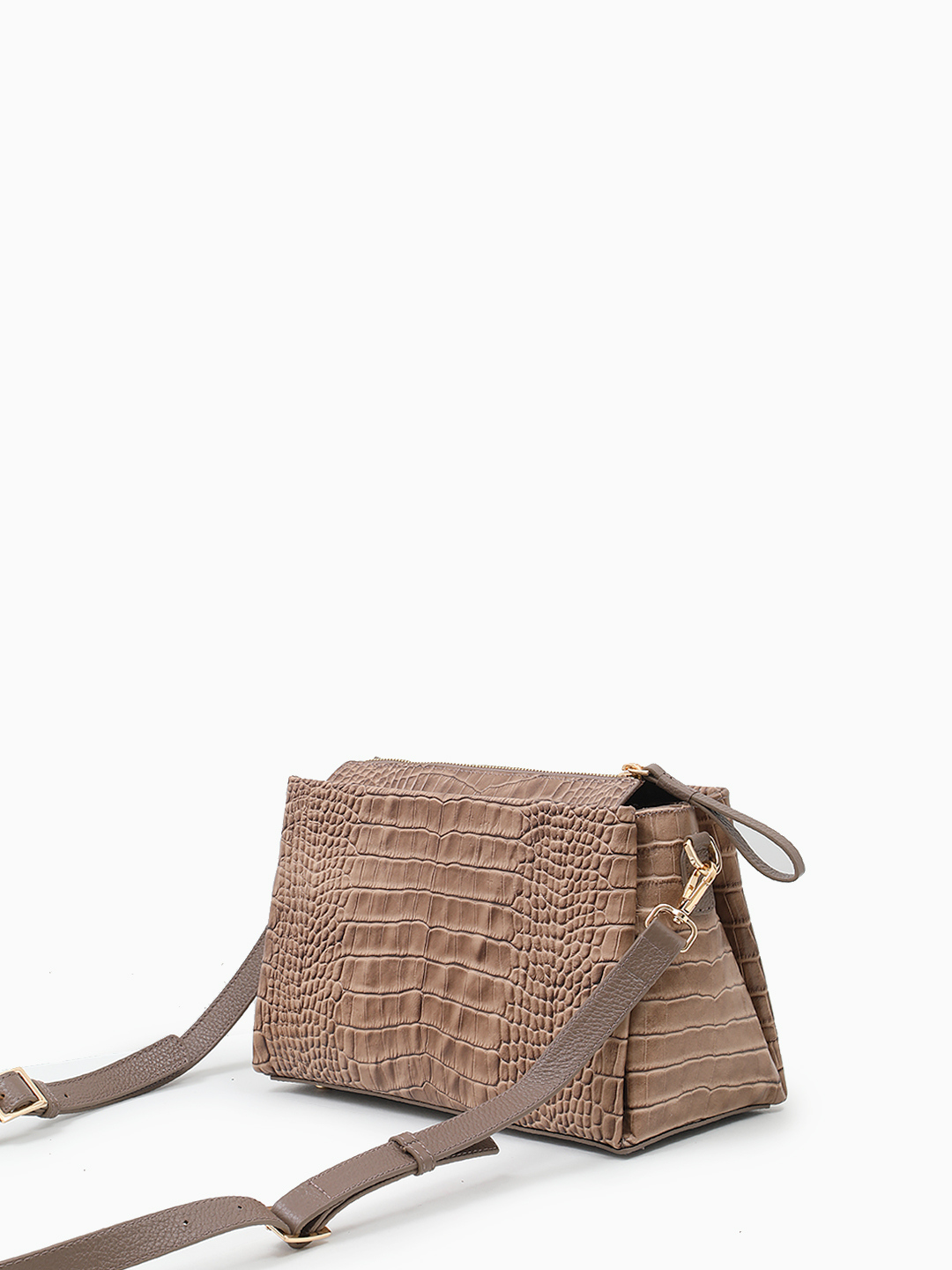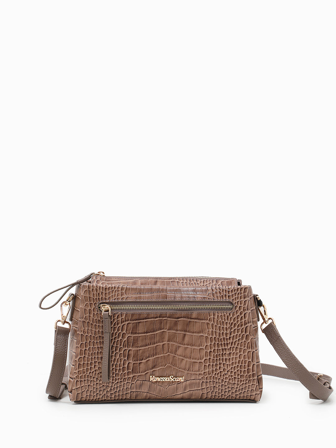 Прямоугольная кросс-боди с тремя отделениями от Vanessa Scani из кожи под крокодила оттенка тауп