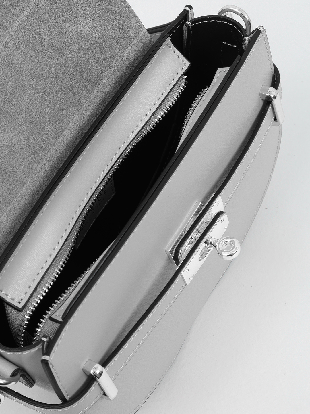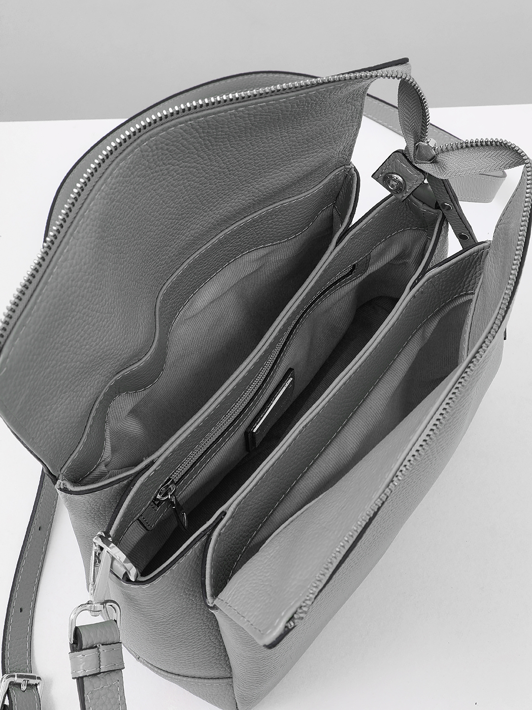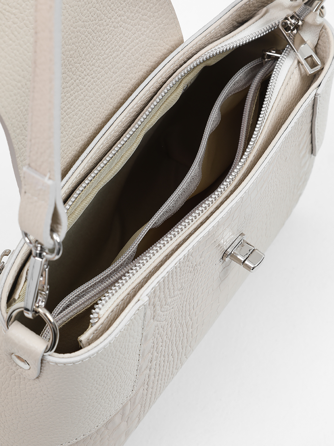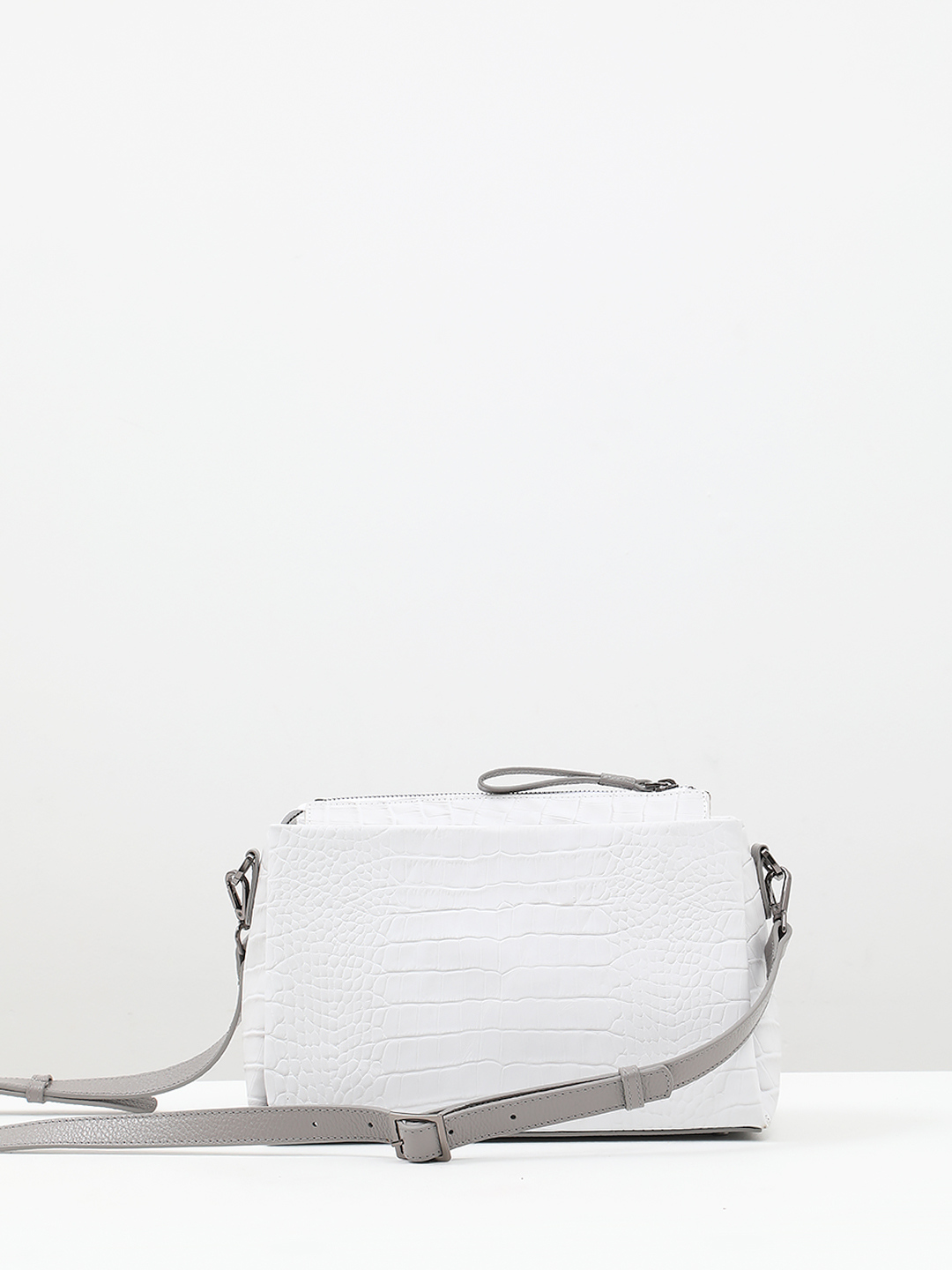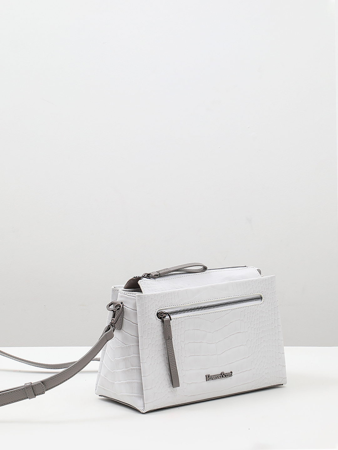 Прямоугольная кросс-боди с тремя отделениями от Vanessa Scani из кожи под крокодила светло-серого цвета