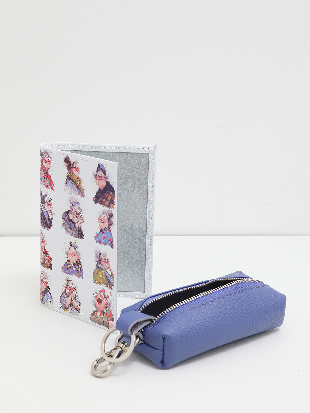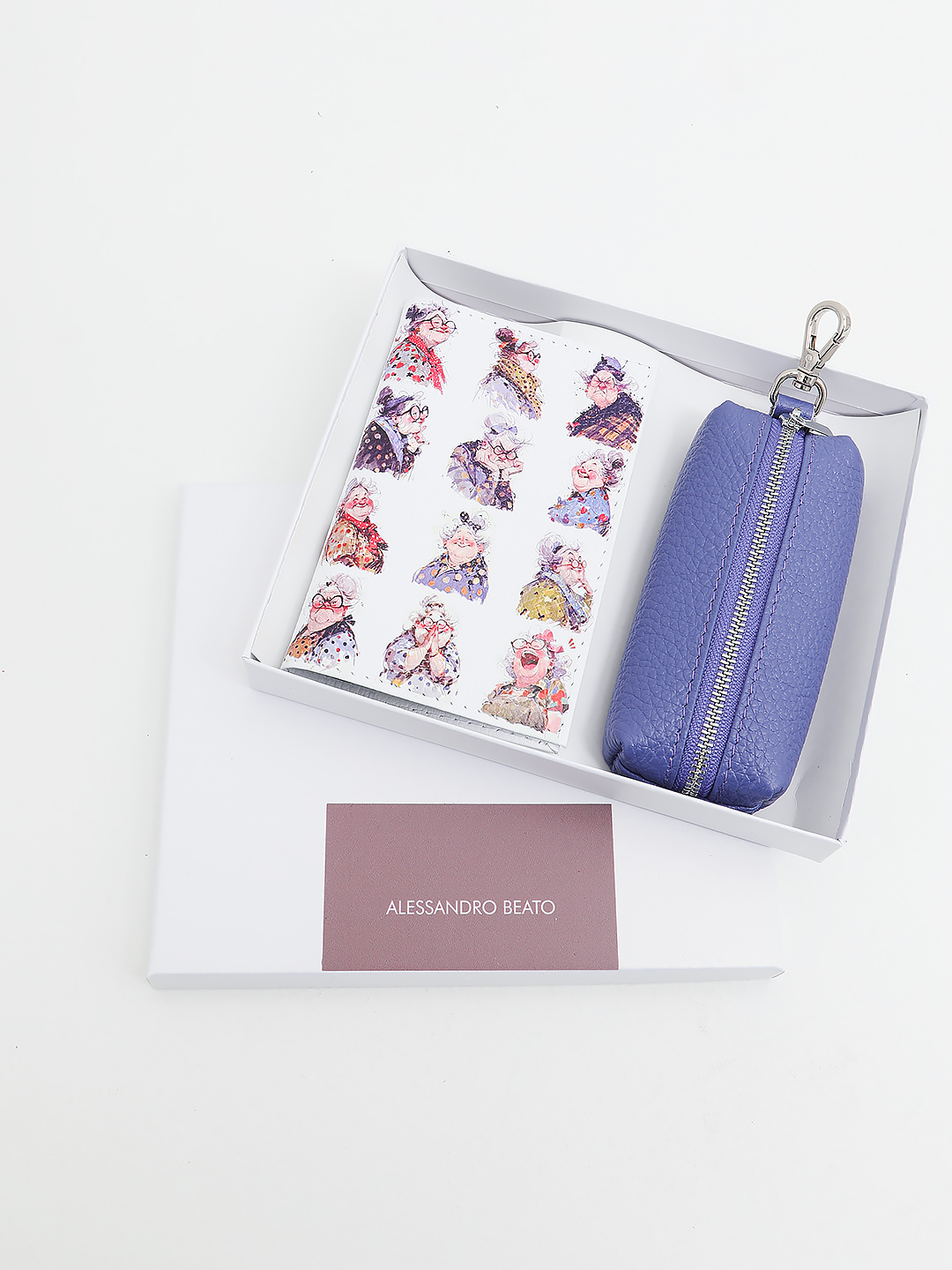 Набор от Alessandro Beato из ключницы синего цвета и обложки для документов с ярким принтом