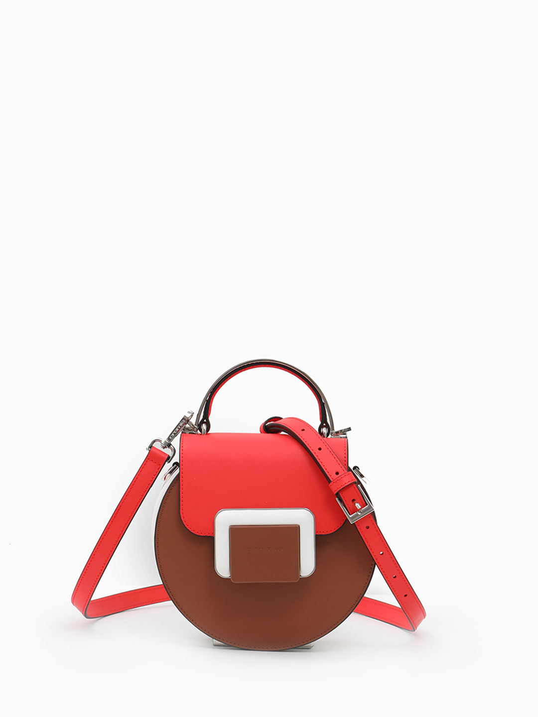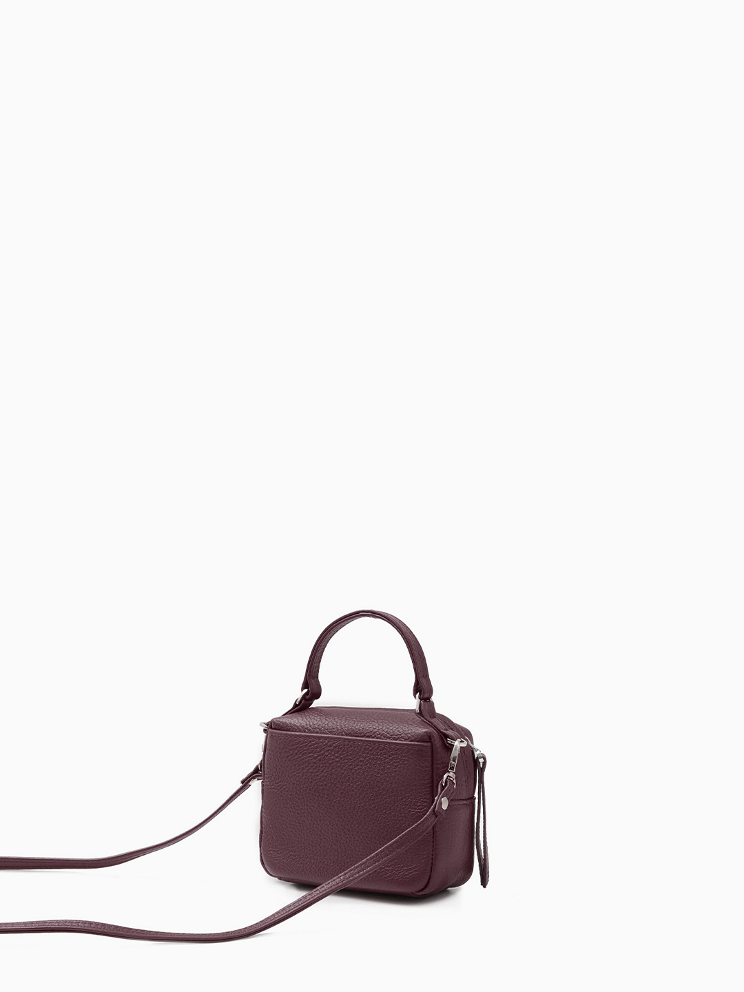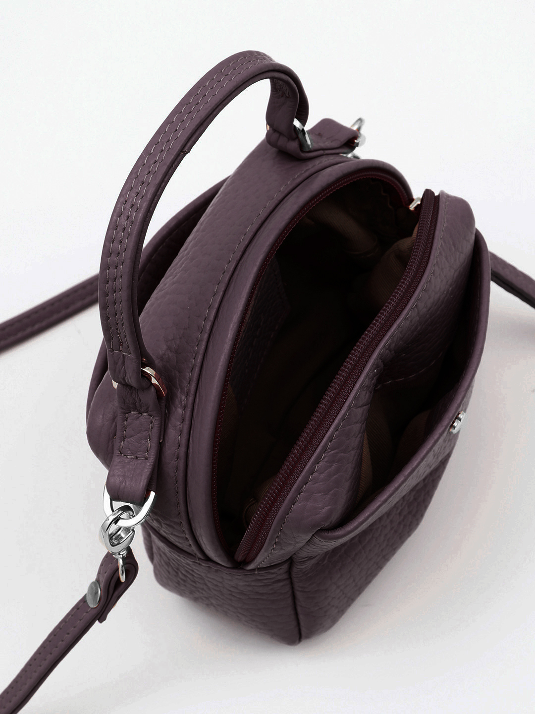 Мини сумка с круглой ручкой и ремнём на карабинах от FOLLE в бордовом оттенке