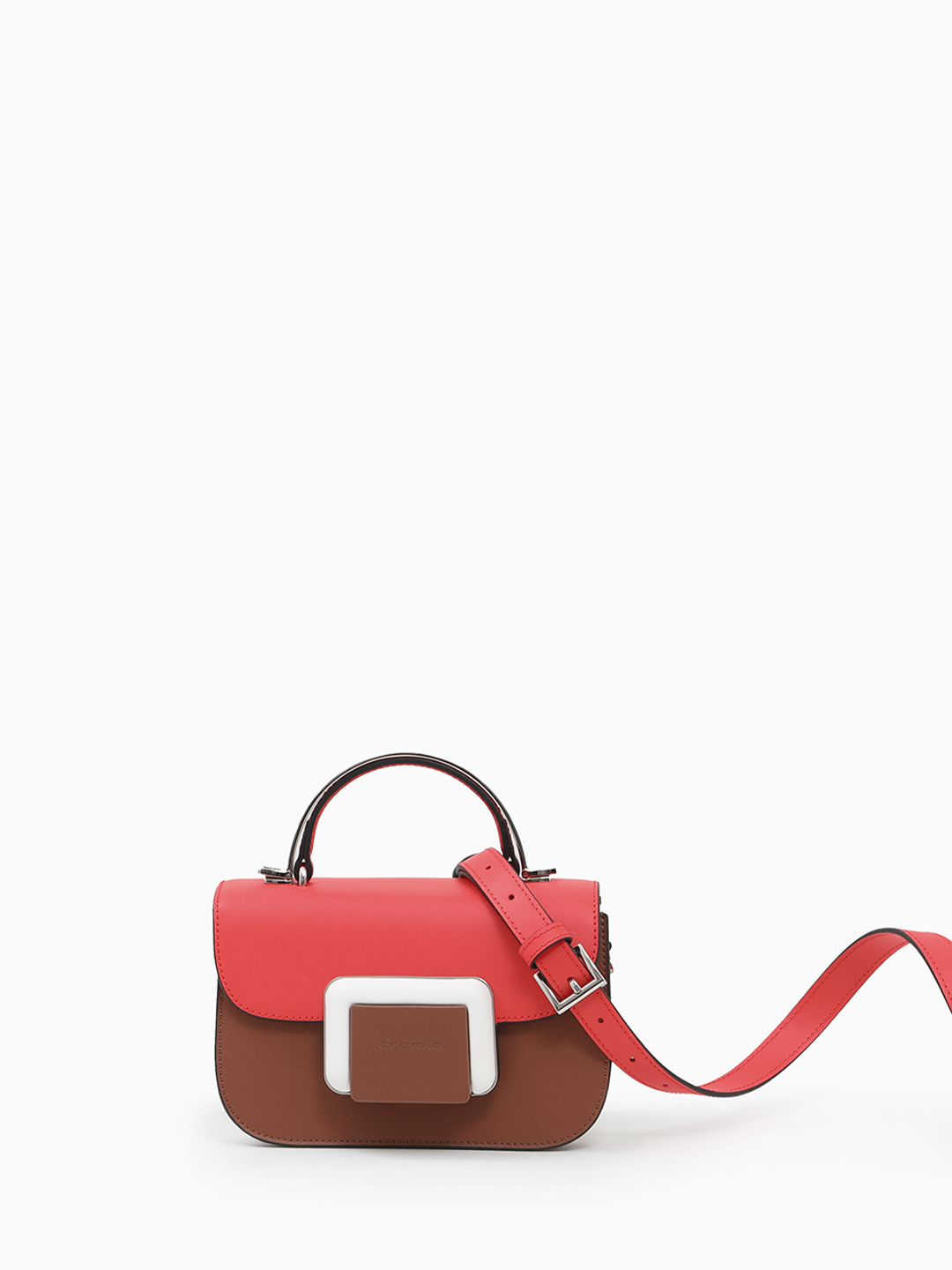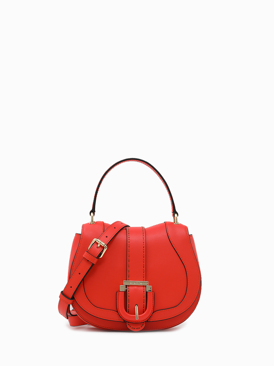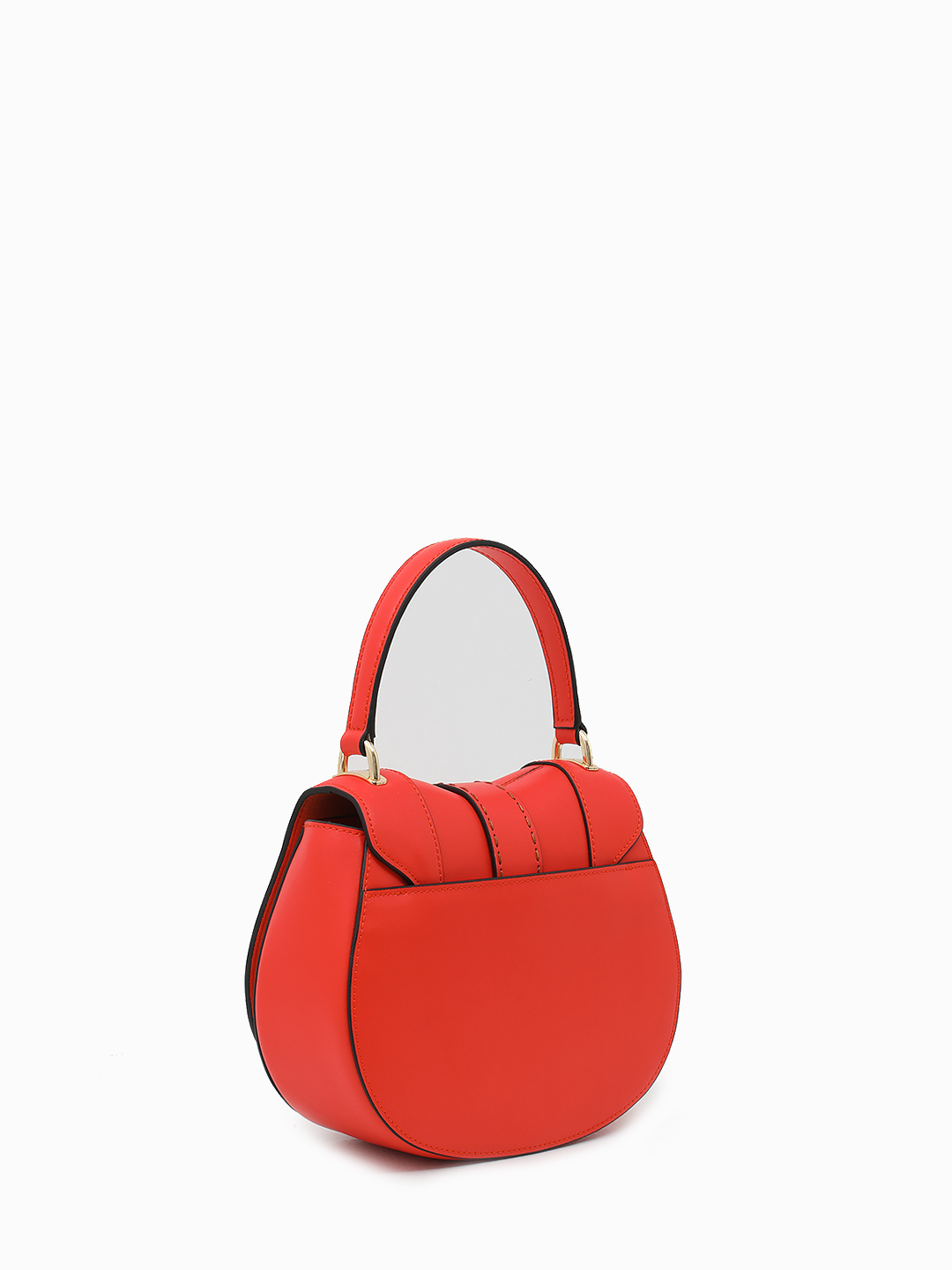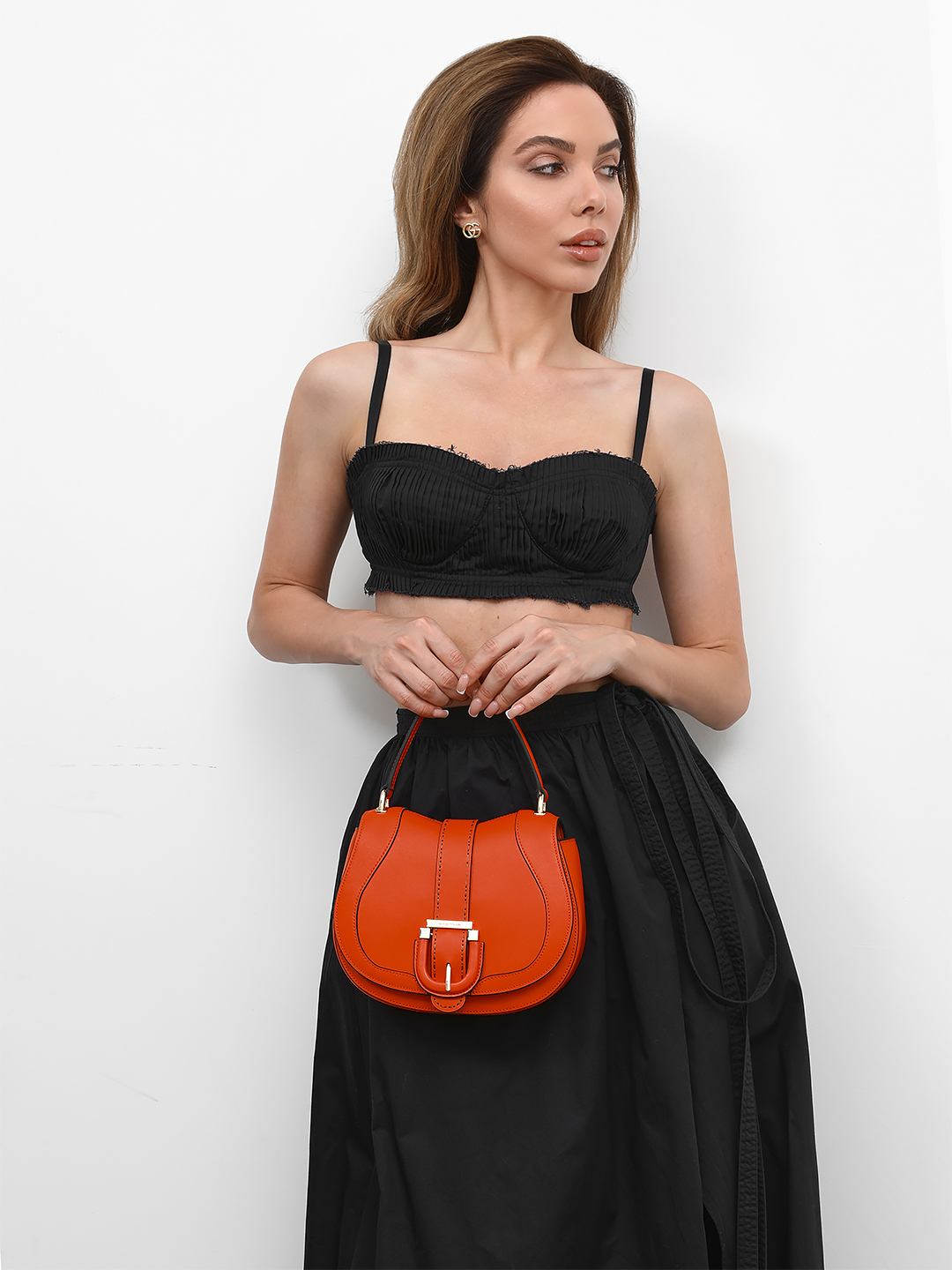Мини сумка с круглой ручкой и ремнём на карабинах от FOLLE в бордовом оттенке