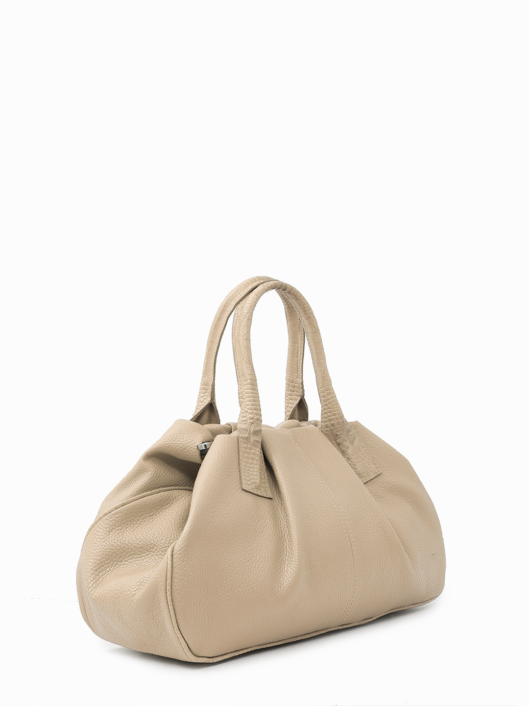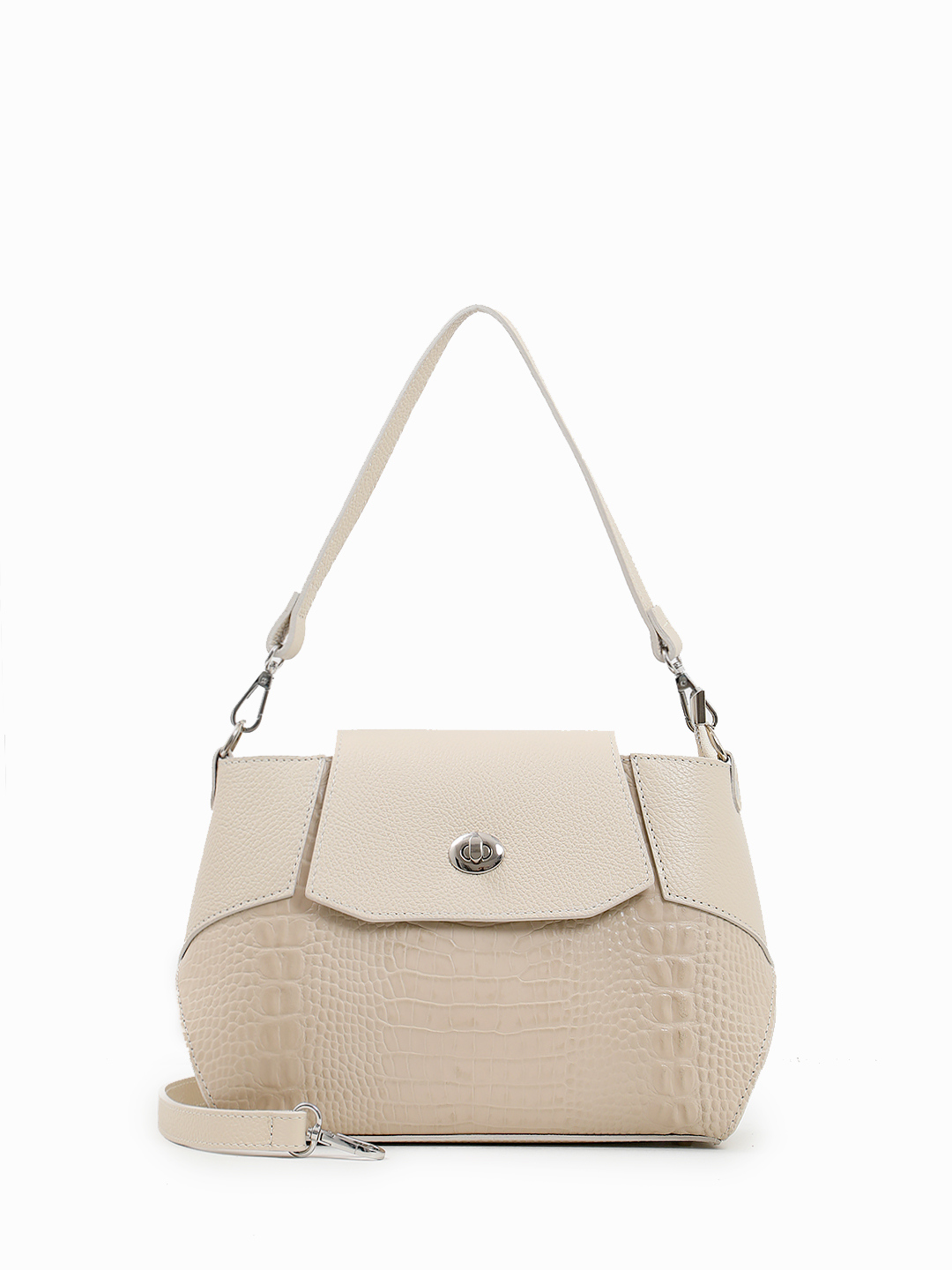 Сумка на плечо с поворотной фурнитурой от FOLLE в бежевом оттенке
