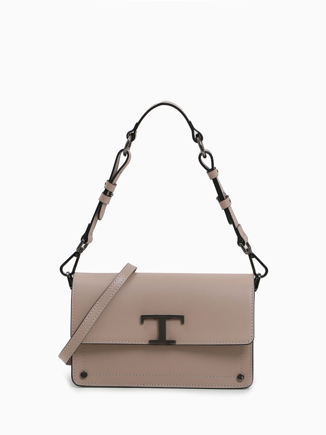 Прямоугольная кросс-боди "TIAMO" с металлической буквой "T" от BE NICE в оттенке капучино
